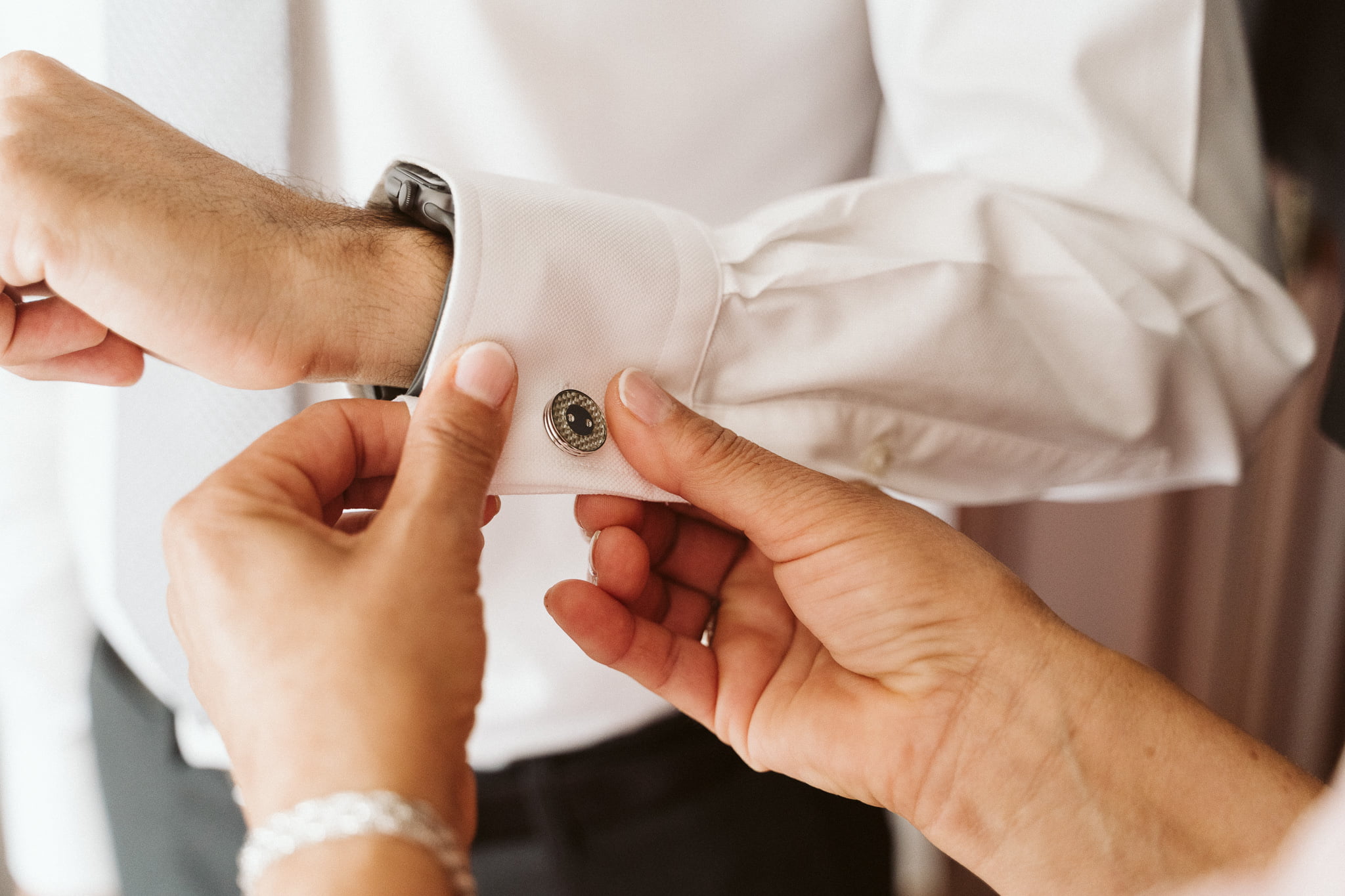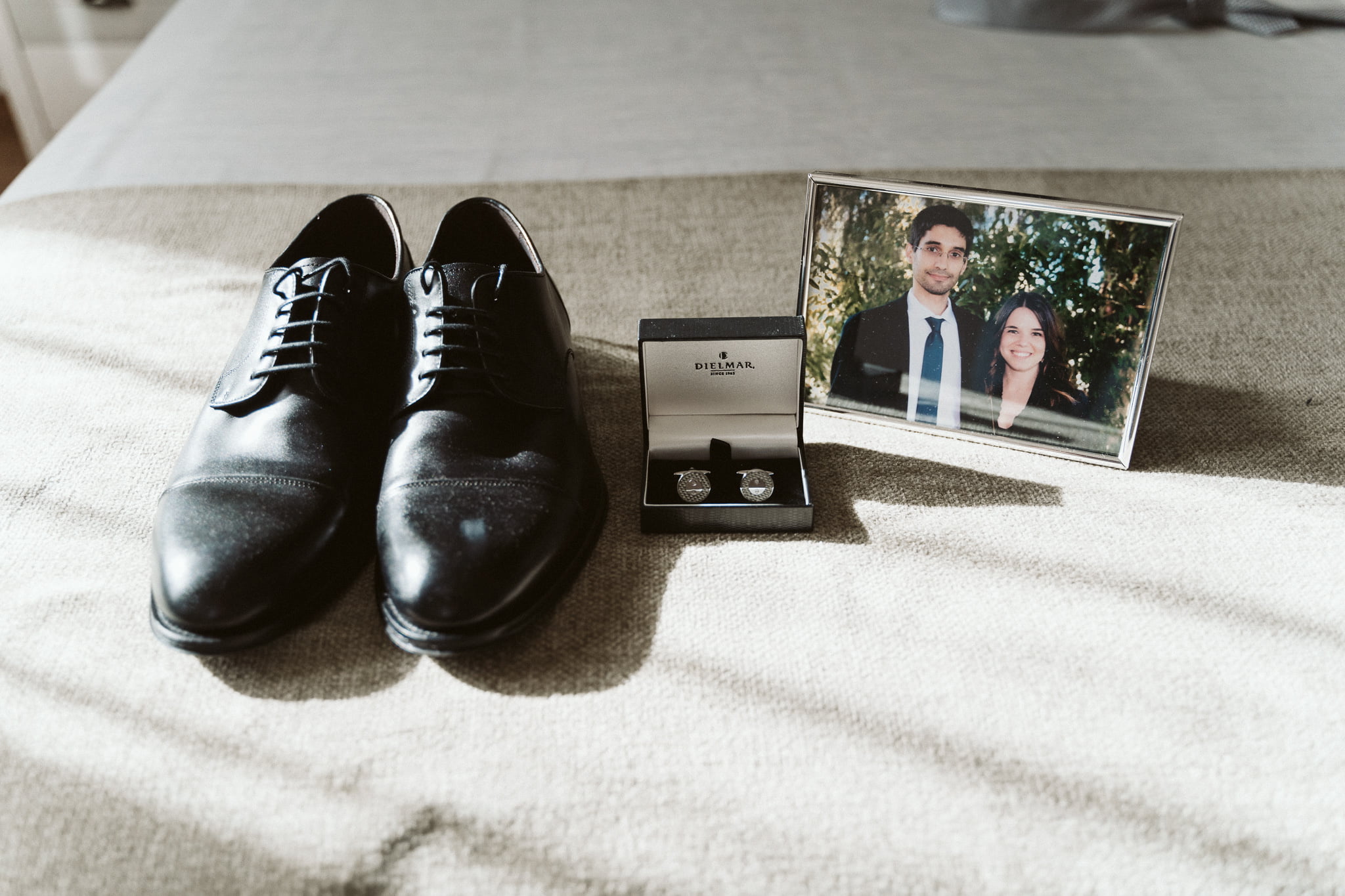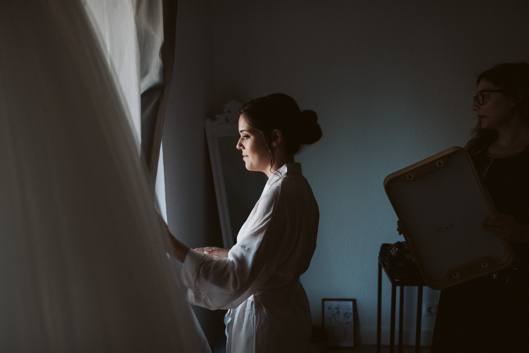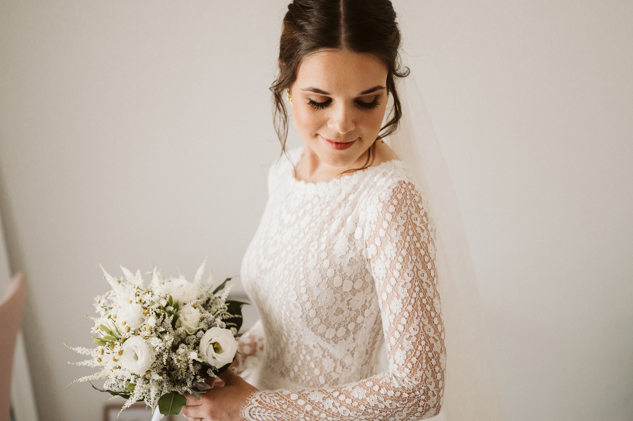 The morning begins with the quiet details—the delicate lace of the gown against the rustic textures of Sintra and the nervous, joyful energy of getting ready in a place that feels like home.