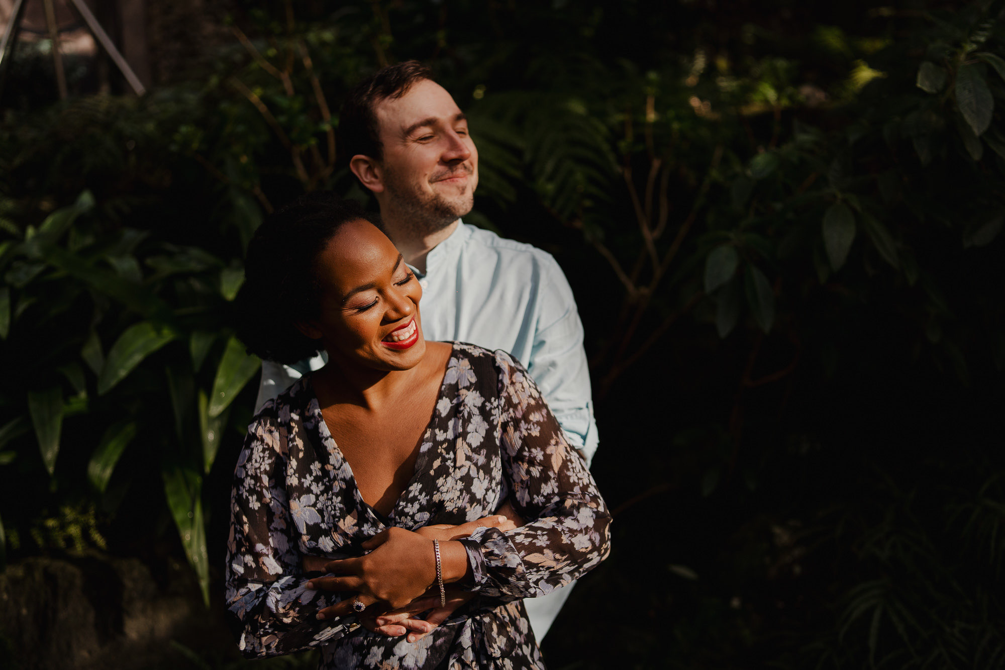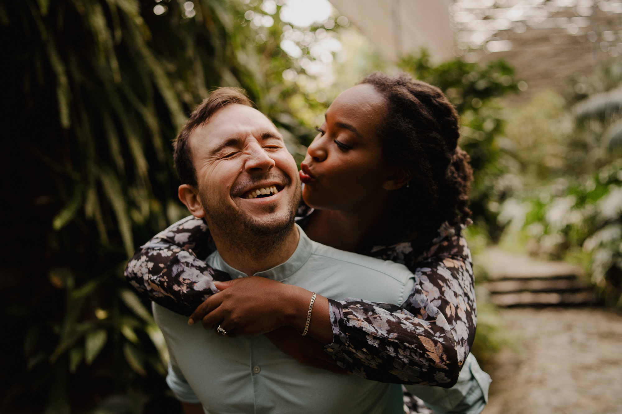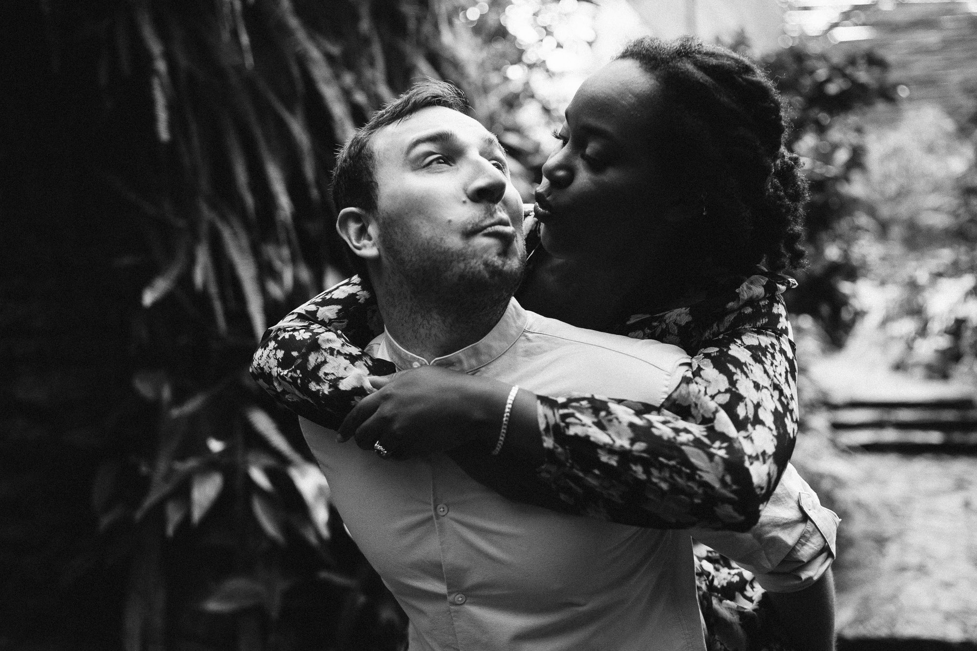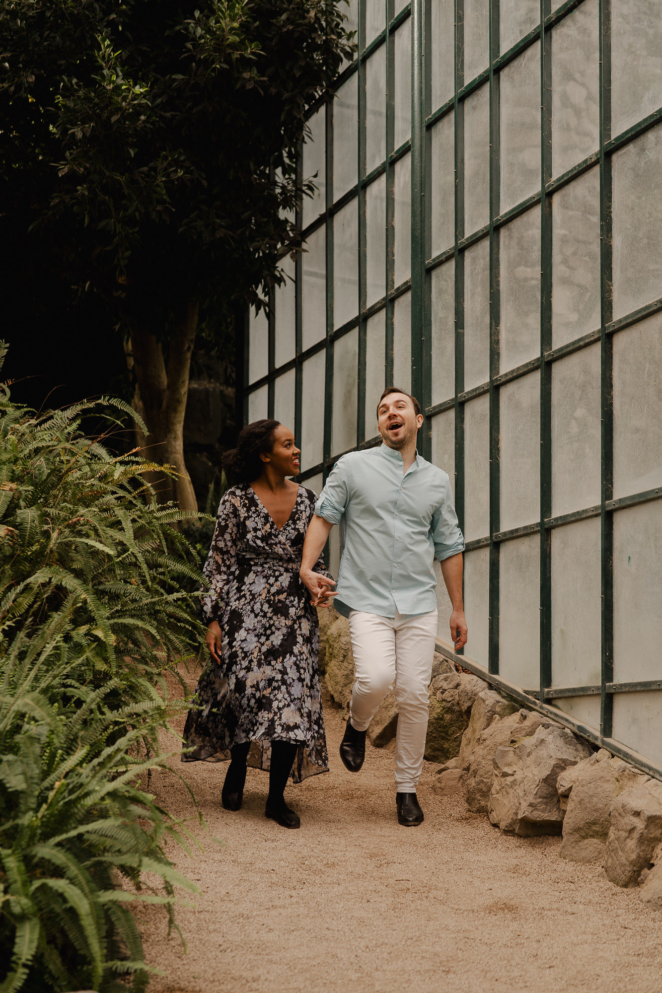 Andrea and Fred were staying just around the corner, and despite the “small showers” forecast, we leaned into the vibe. I’ve shot here many times, but this day pushed me out of my comfort zone. I found myself playing with reflections in the glass and the bathroom windows—crazy, right? Shooting from inside and outside, I used those layers to find a perspective I’d never seen before. Oh, and that shot of Fred channeling his inner “Singing in the Rain” with his umbrella? Pure magic.