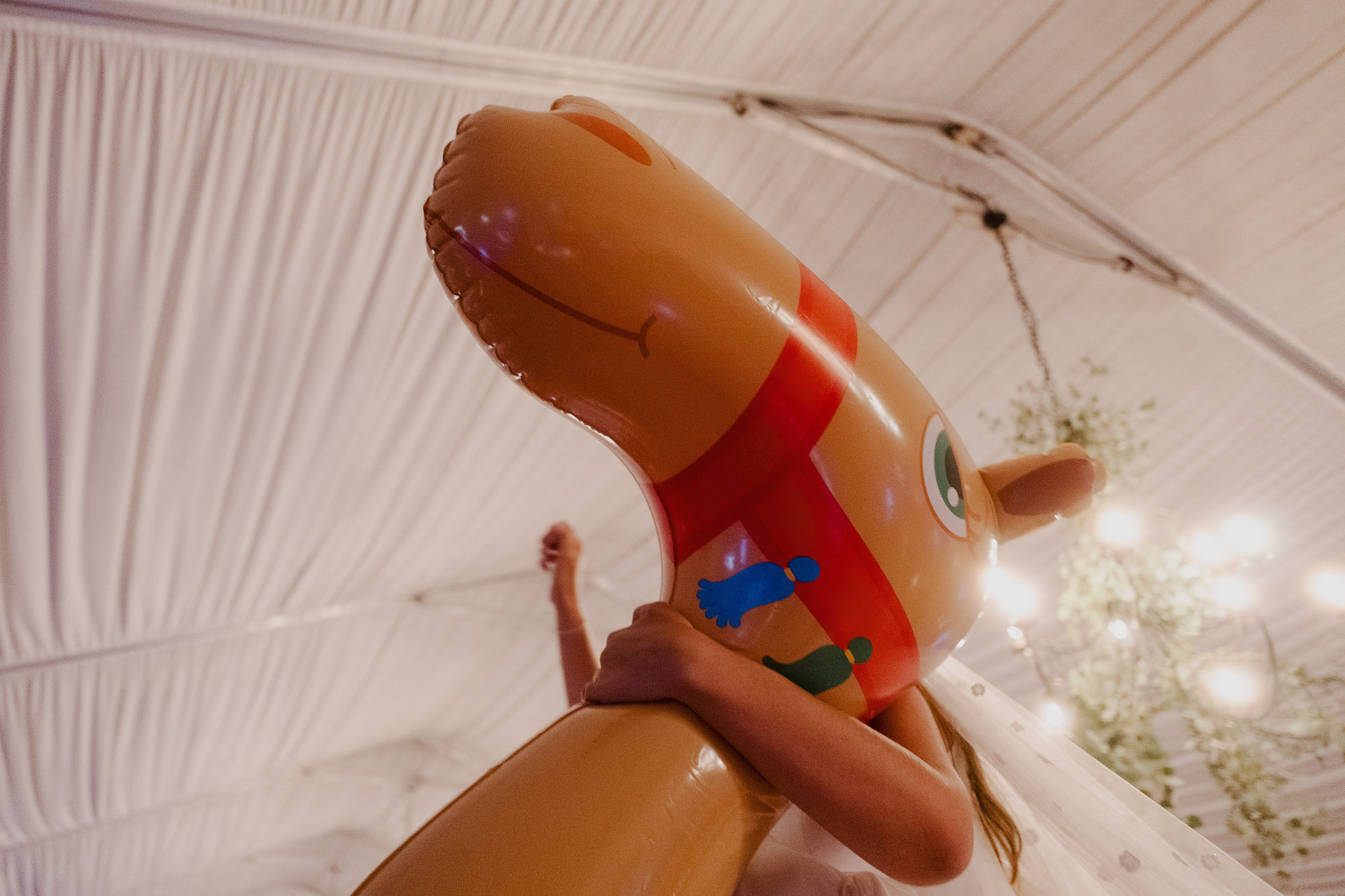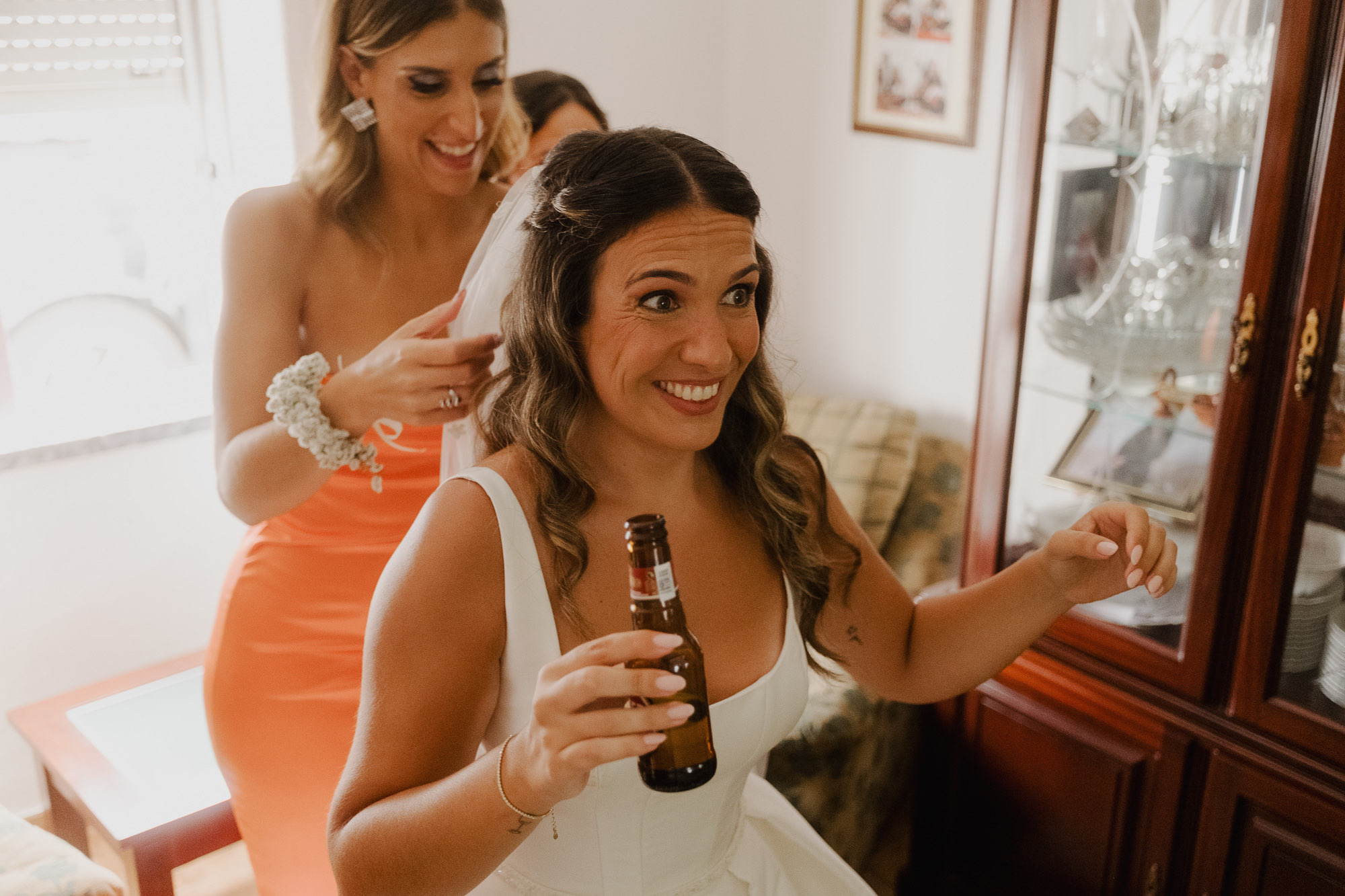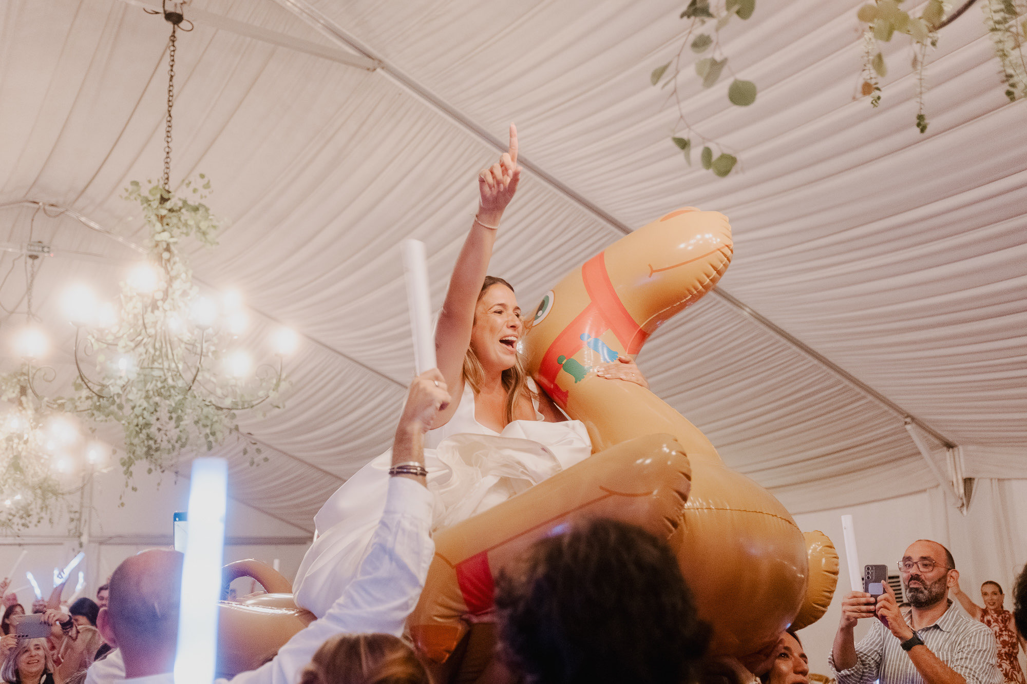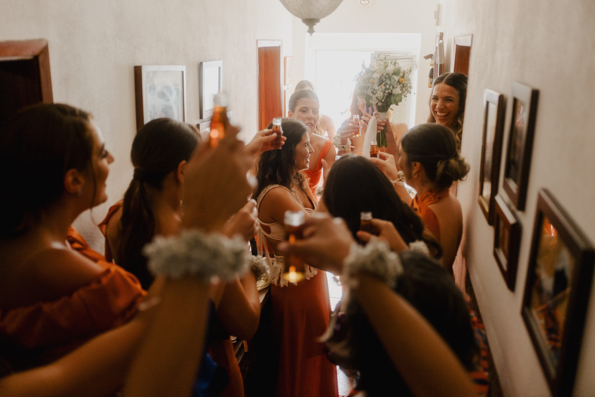 The exit from the church felt like “photographic warfare,” with everyone trying to get the shot, but I loved the adrenaline. The highlight? The couple entering the dinner carried on an inflated horse balloon by their bridal party. Between that and the traditional Alentejo singing, it was a visual feast.