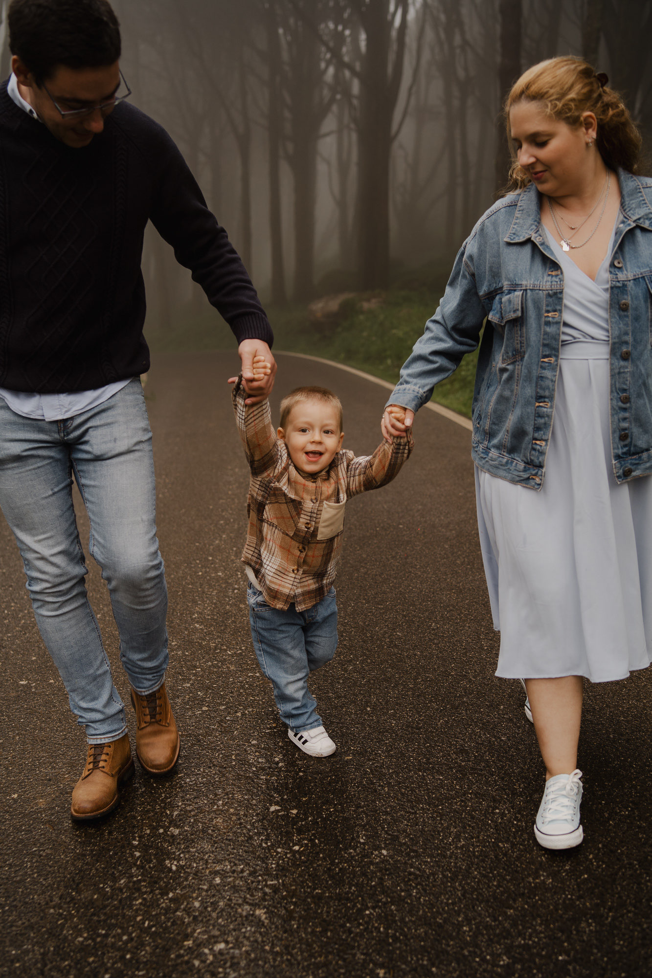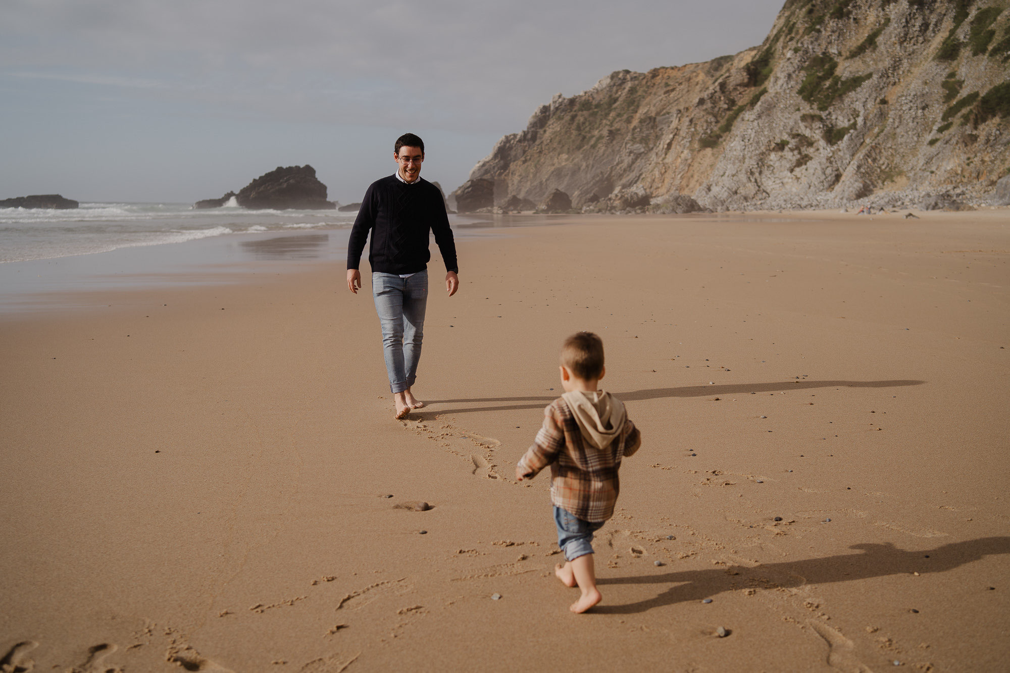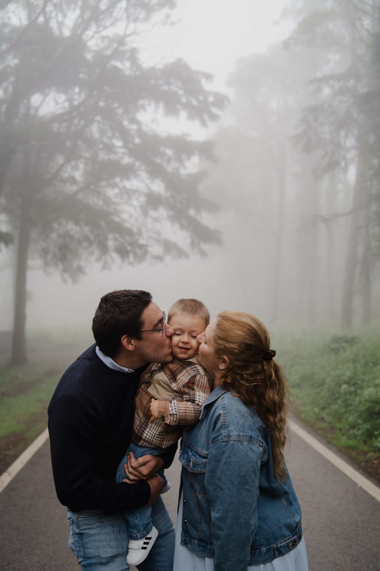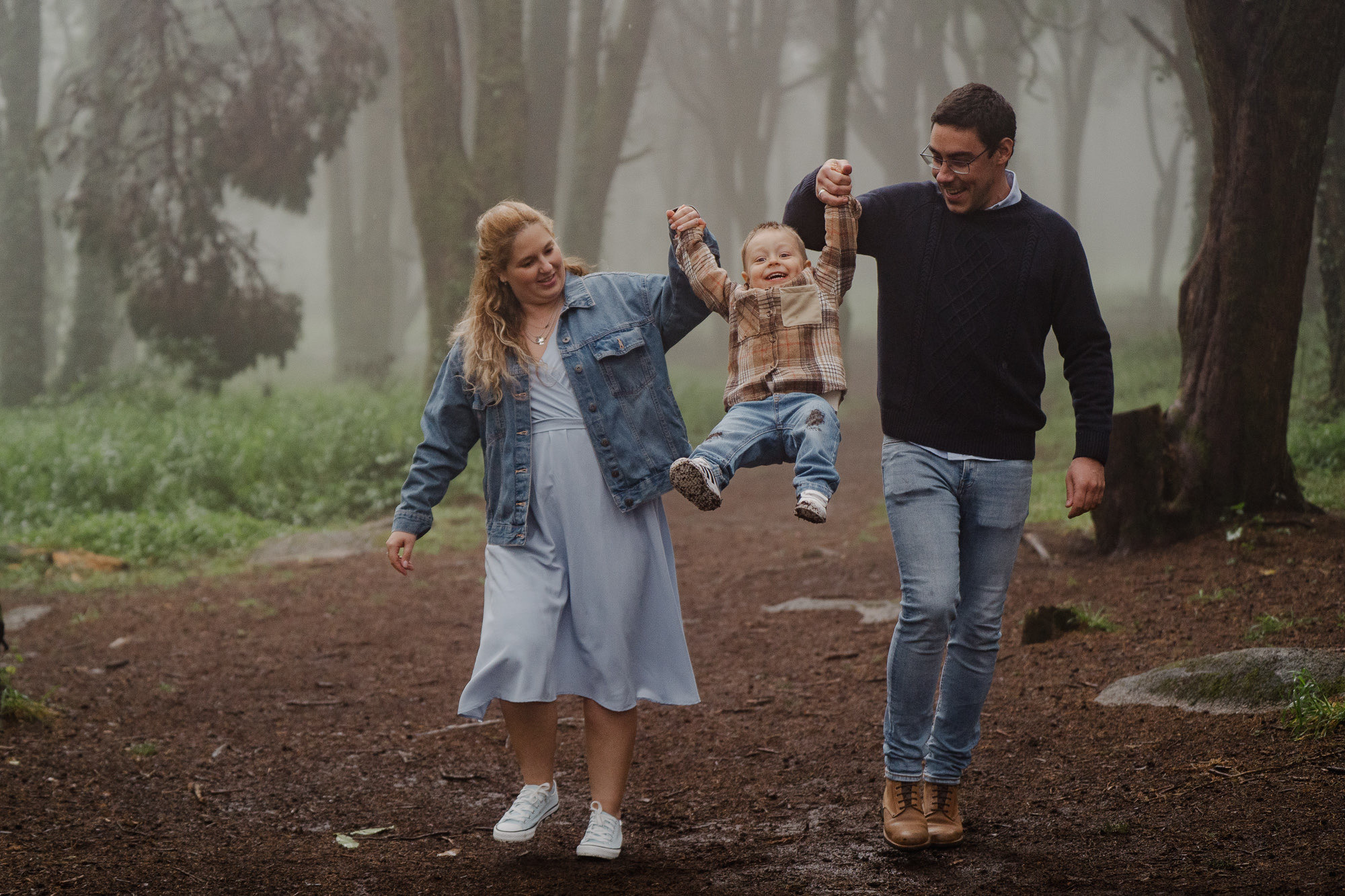 We arrived to find a wall of thick fog and a biting chill—a dream for anyone looking for “out of the ordinary” photos. Duarte ran wild through the clouds, and I edited these with a specific mood: cooler, blueish tones for the mist, while keeping their skin tones warm and alive. After the mountain mist, we headed down to the beach for some sun and sand. Peninha is unpredictable, but that’s exactly why it produces the most soulful images in Portugal.