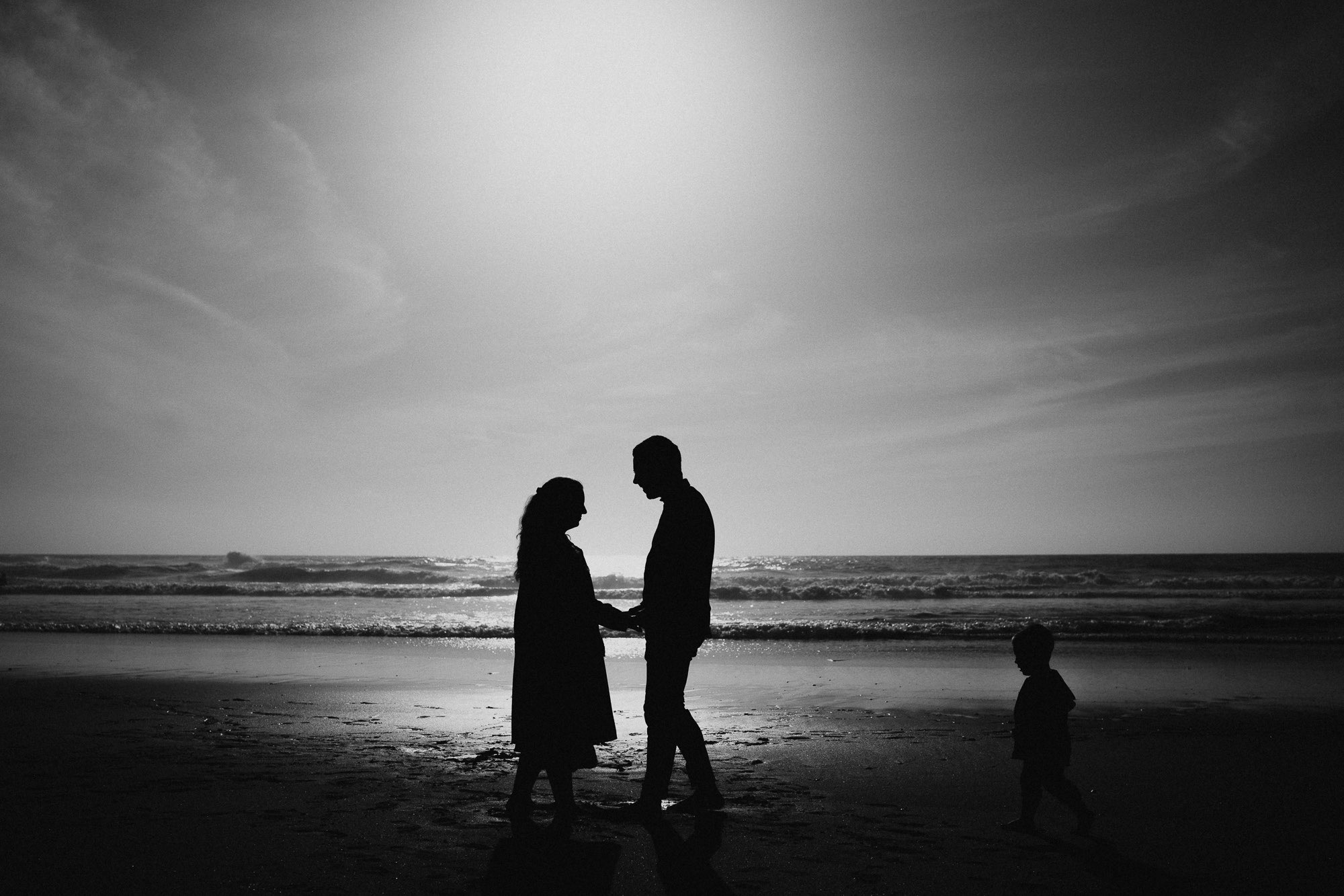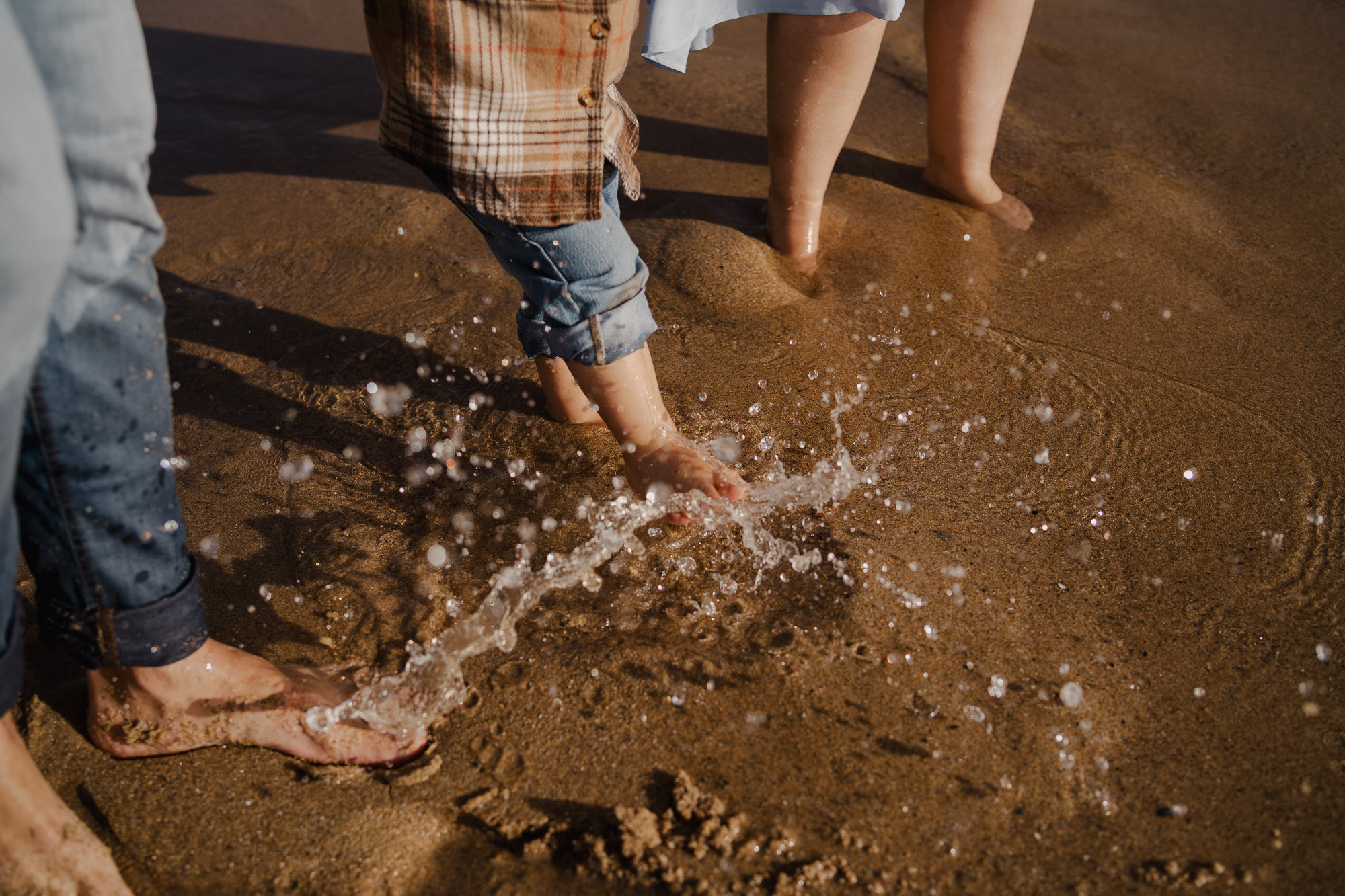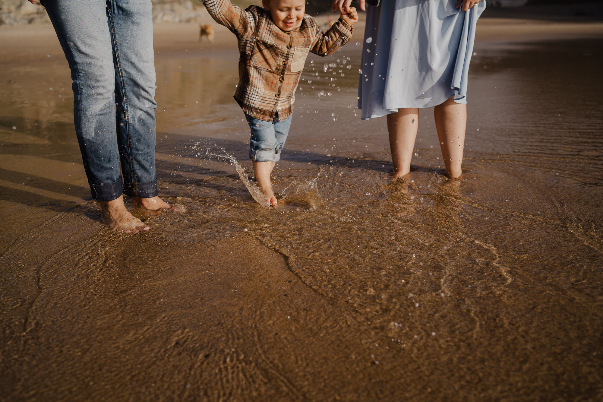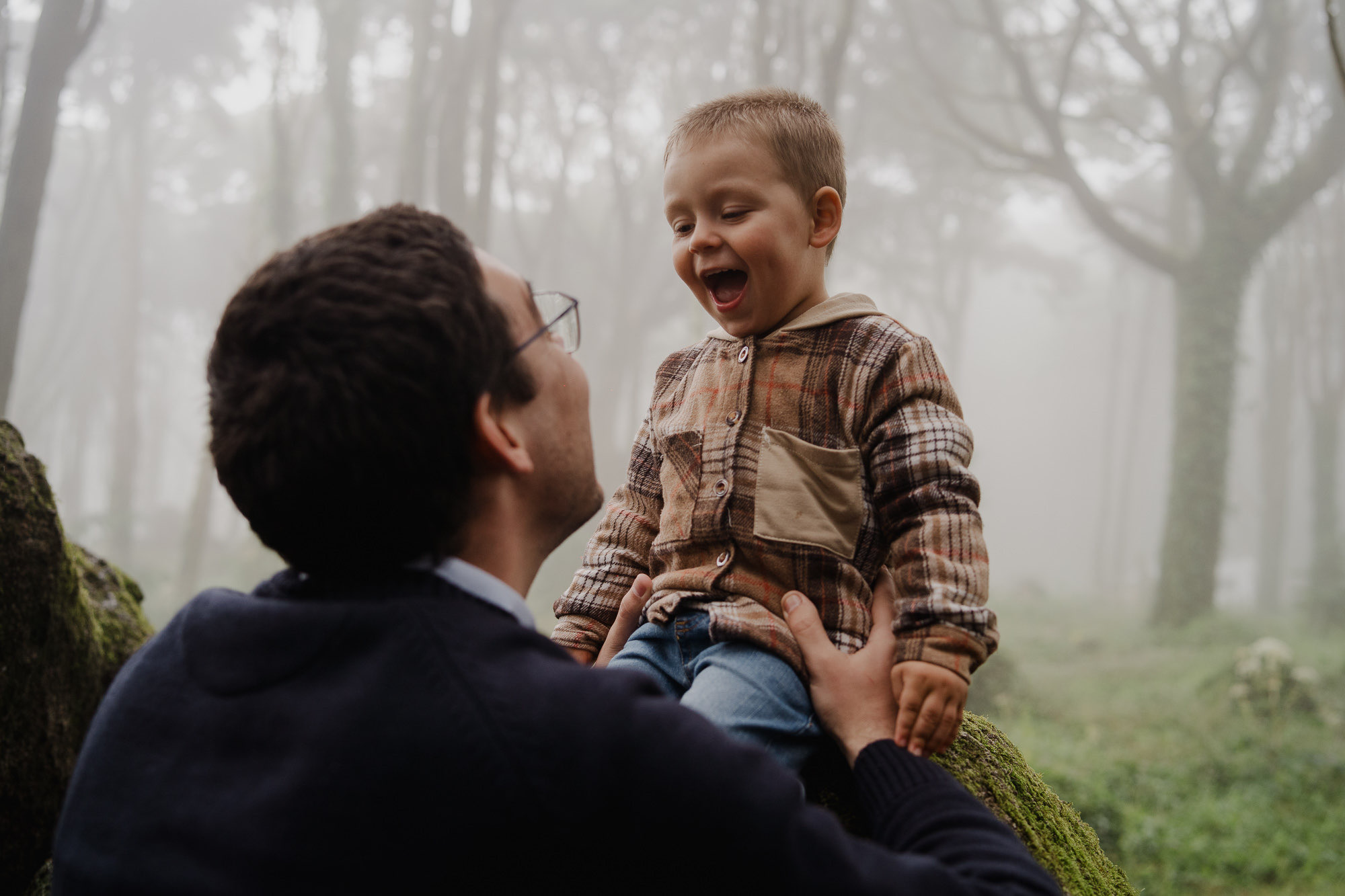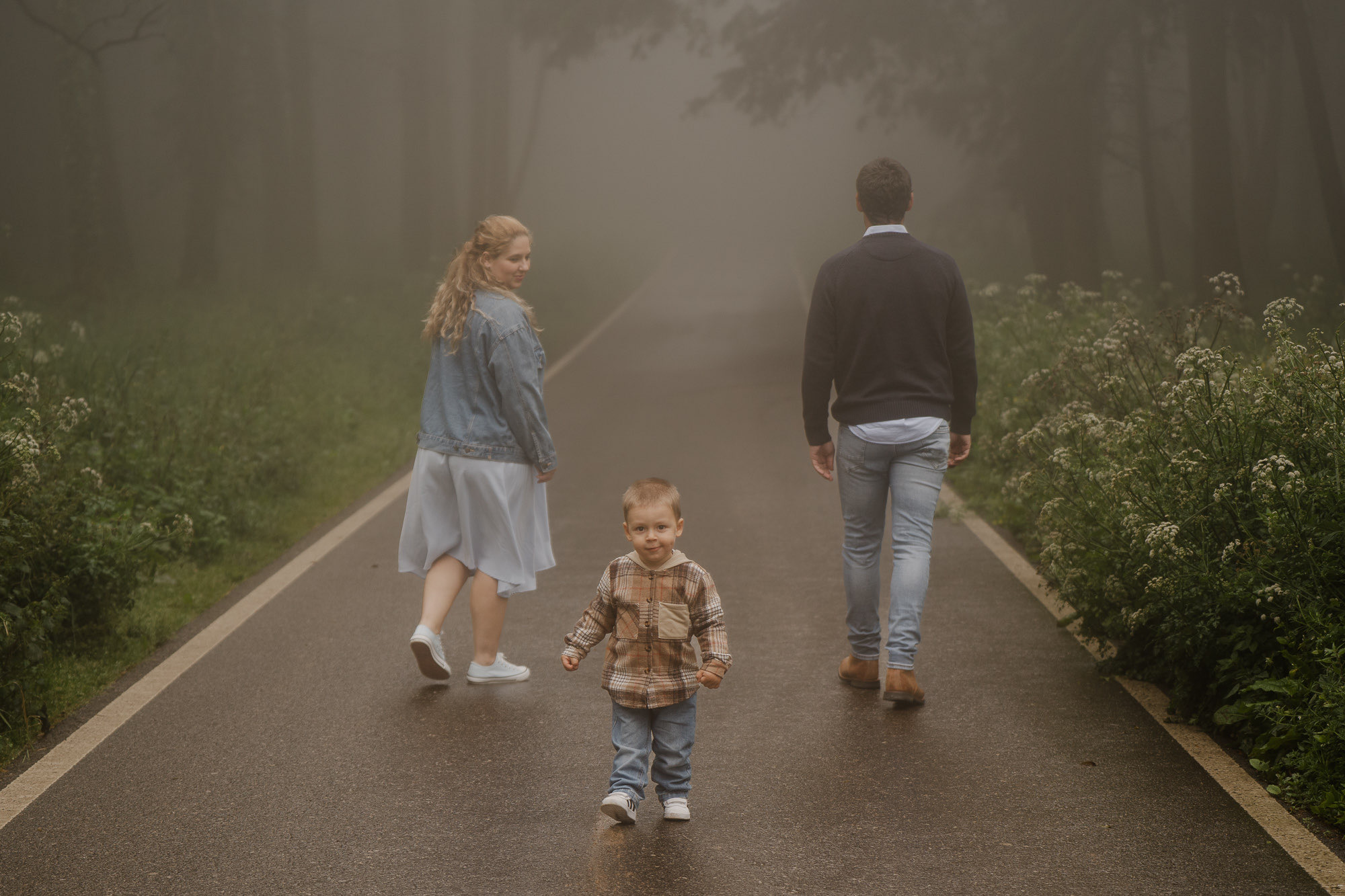 We arrived to find a wall of thick fog and a biting chill—a dream for anyone looking for “out of the ordinary” photos. Duarte ran wild through the clouds, and I edited these with a specific mood: cooler, blueish tones for the mist, while keeping their skin tones warm and alive. After the mountain mist, we headed down to the beach for some sun and sand. Peninha is unpredictable, but that’s exactly why it produces the most soulful images in Portugal.