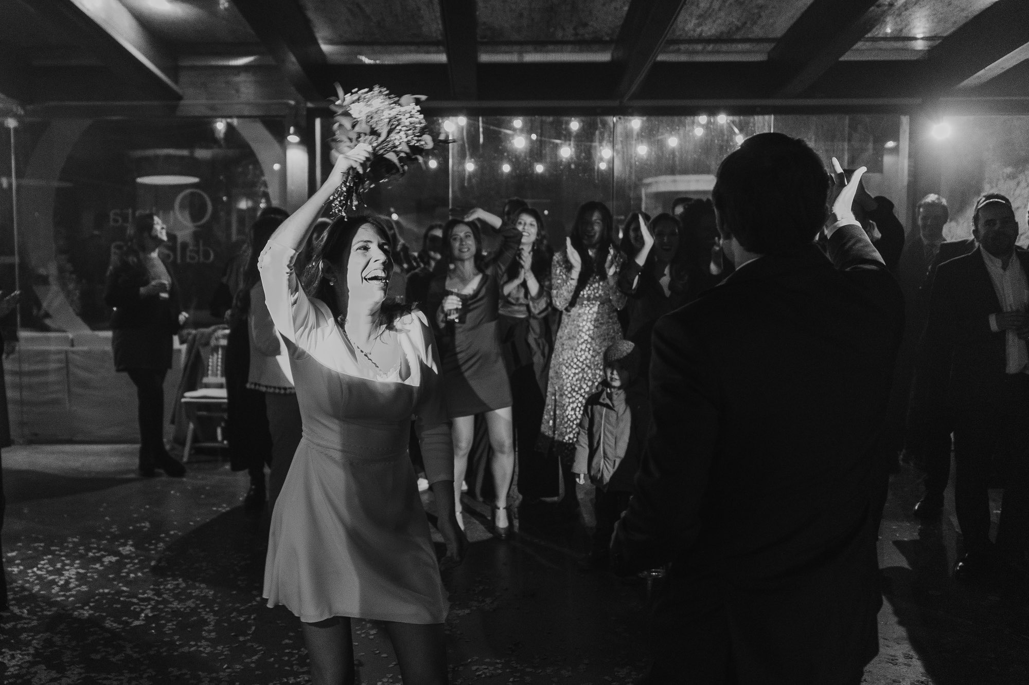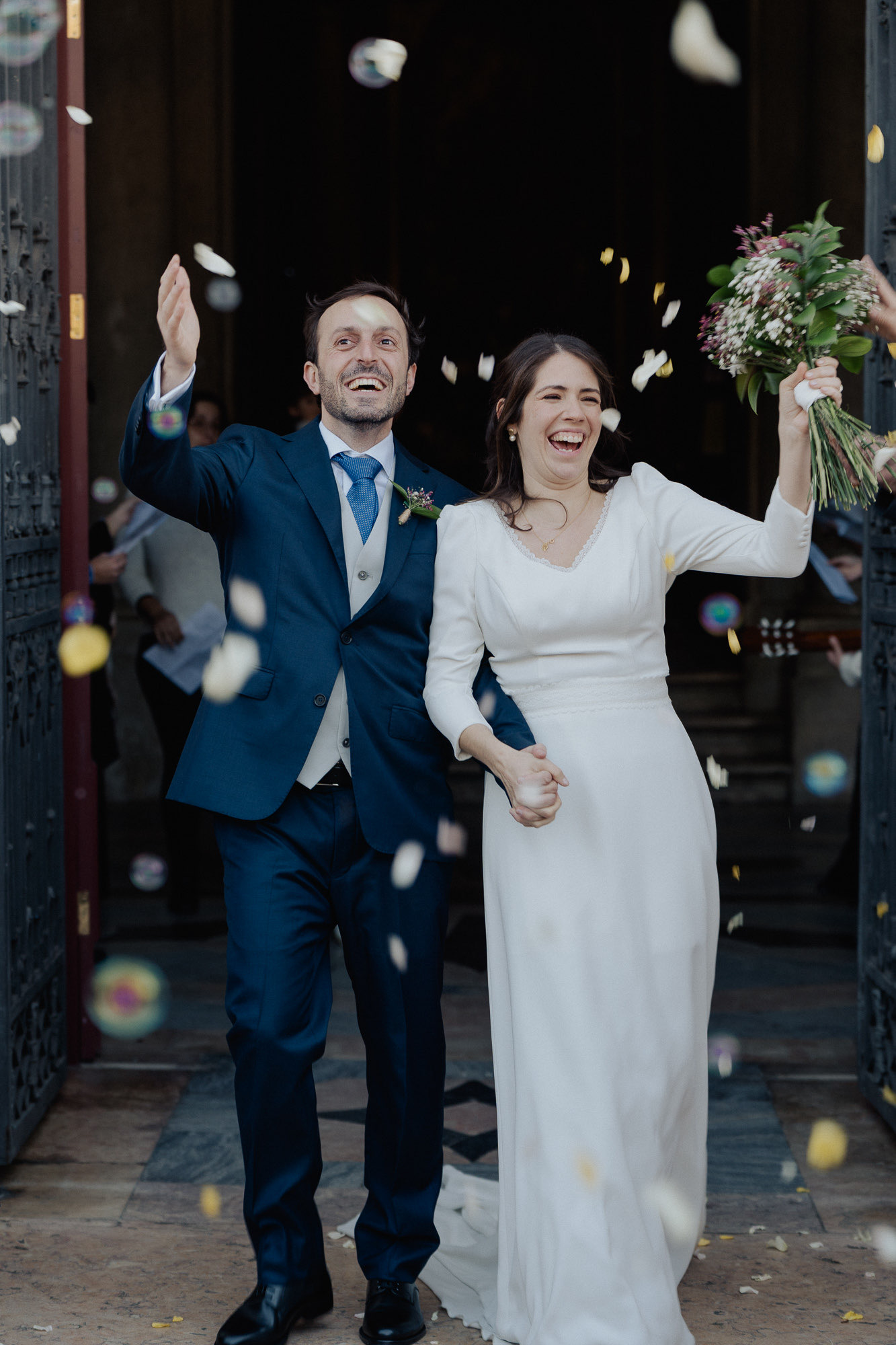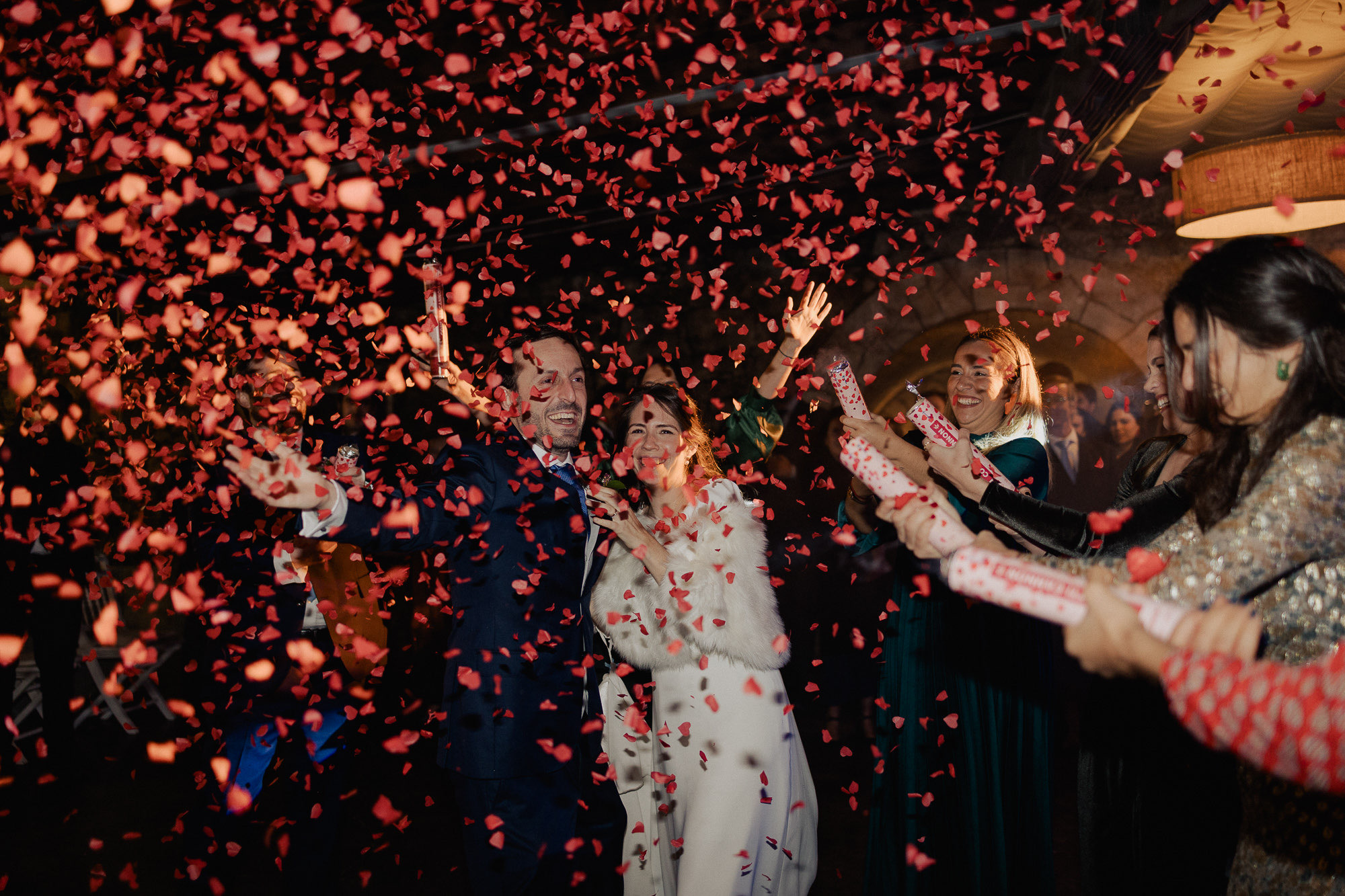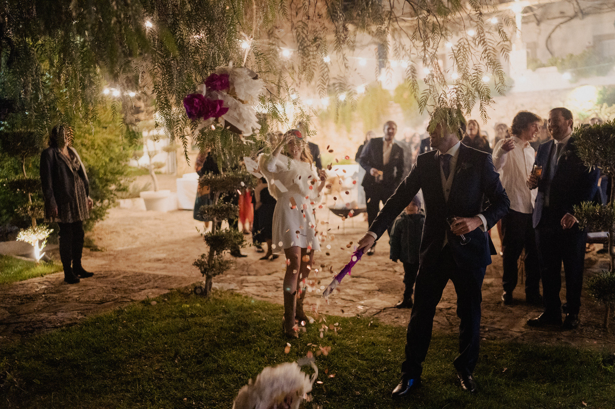 They skipped the formal mini-session to spend more time with their people, which I love. But the shot of the night? The couple entering the dinner behind LED balloons. I caught their kiss through the reflection of the balloon. It’s not perfectly in focus, and that’s exactly why it’s one of my favorite shots ever. We ended the night with the bride in cowboy boots and a second dress—total rockstar vibes under the Alenquer stars.