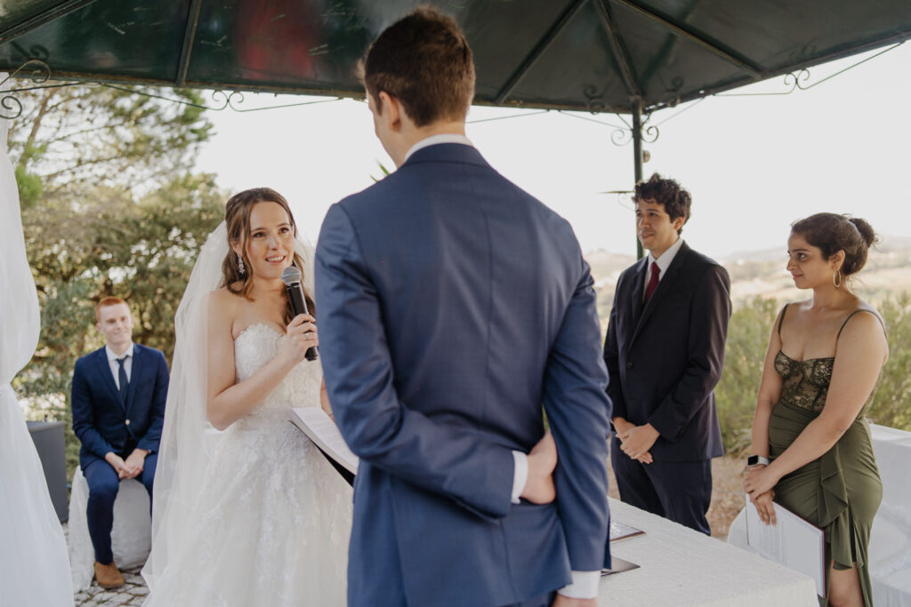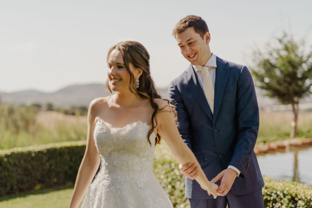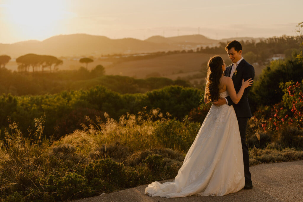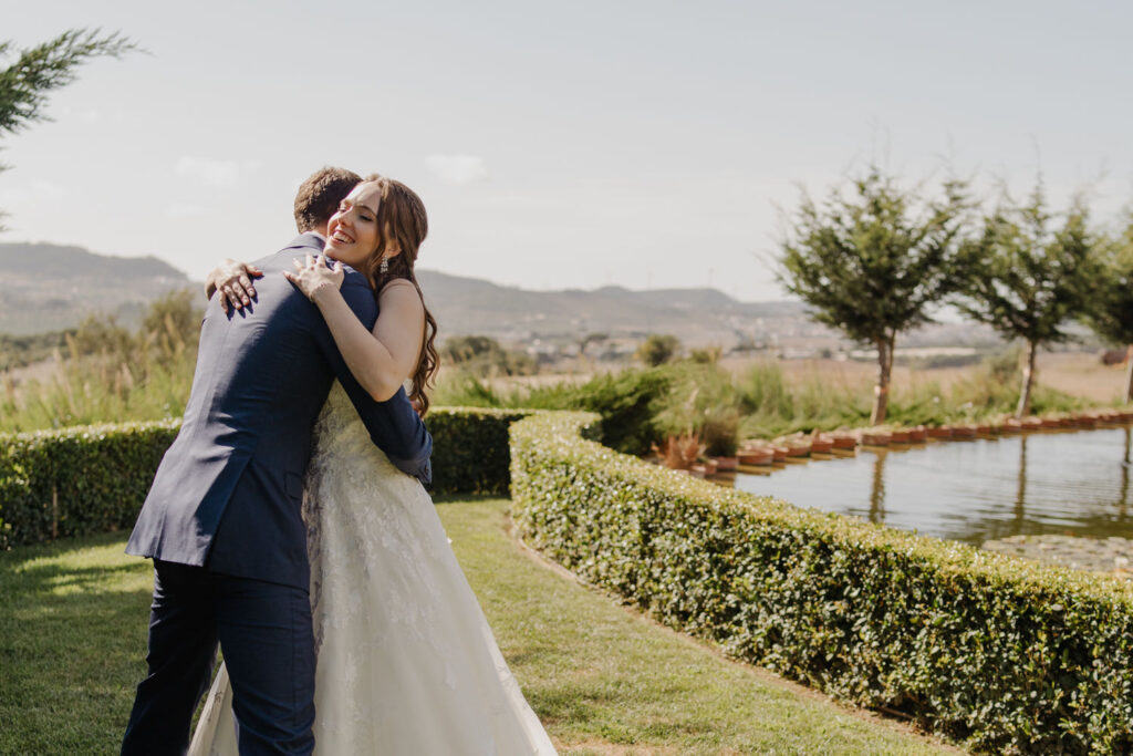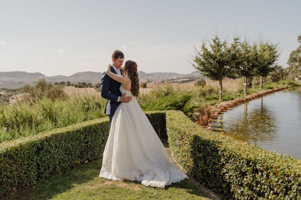 There’s something magical when two introverted hearts come together in a bond as special as marriage. This was exactly the case for Ana & Marc, a couple born in Spain but with roots scattered across the world, who chose Portugal as the stage for their big day. The preparations were a rollercoaster of emotions. While the groom, in a mix of nervousness and anxiety, chose to hide from the cameras, the bride, radiant and stunning, seemed to have stepped straight out of a fairy tale. To break the ice and calm the nerves, we opted for a “first look” – a magical moment where the groom finally breathed a sigh of relief upon seeing his beloved in the charming gardens and beside the serene lake of Our Quinta.