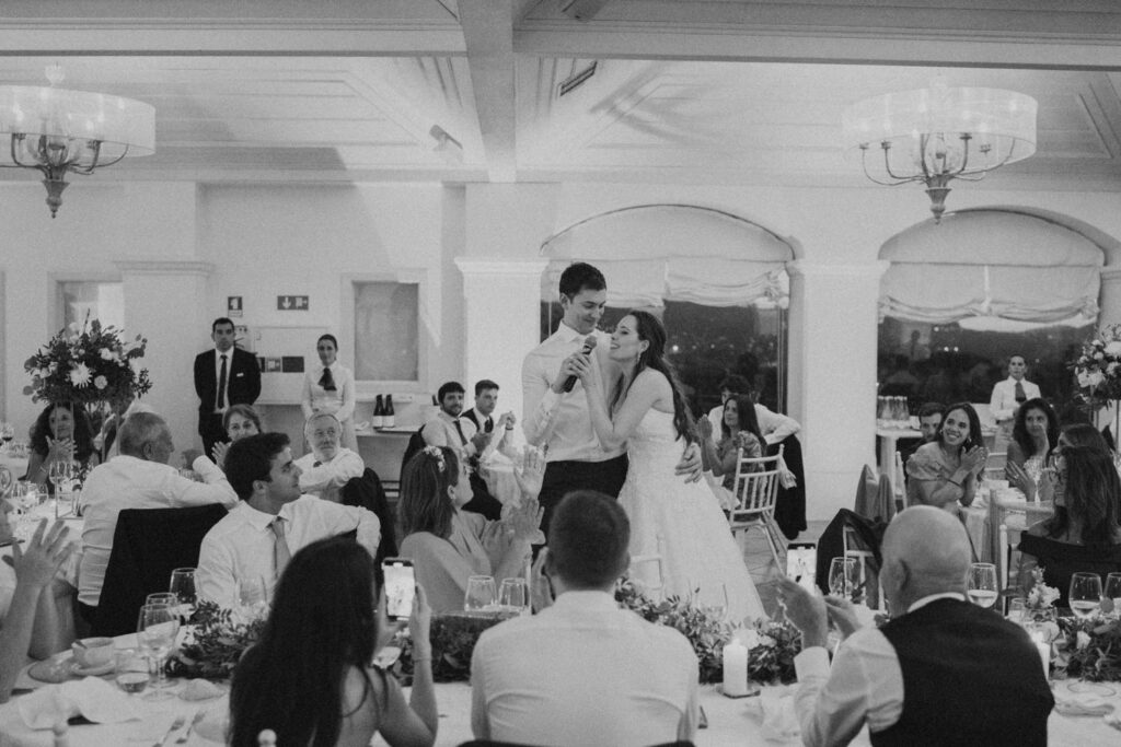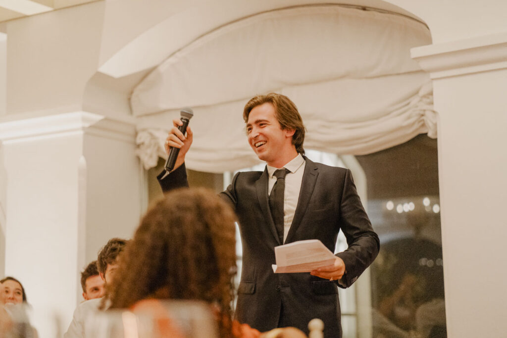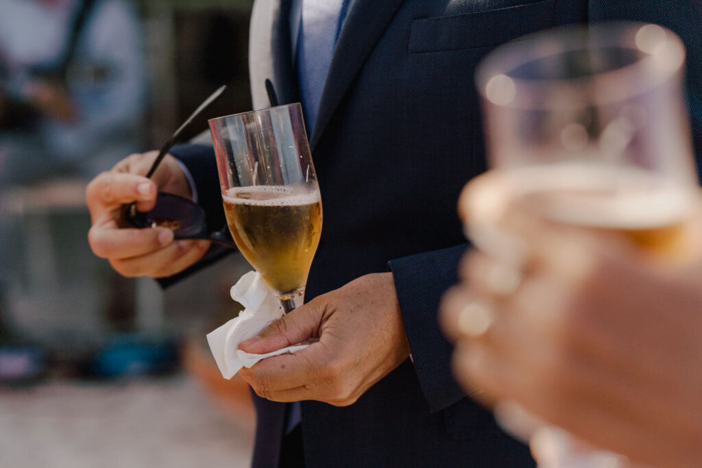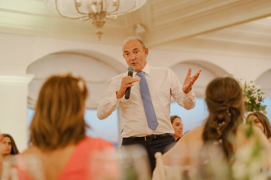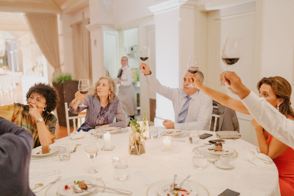 The ceremony, though challenged by the mischievous wind, was a true testament to love and unity. Two close friends celebrated the couple’s journey, leaving parents and friends with tears in their eyes. After a quick photo session, the couple was eager to join the approaching party. And what a party it was! During dinner, the lively speeches tested my creativity to capture the most genuine and spontaneous reactions.