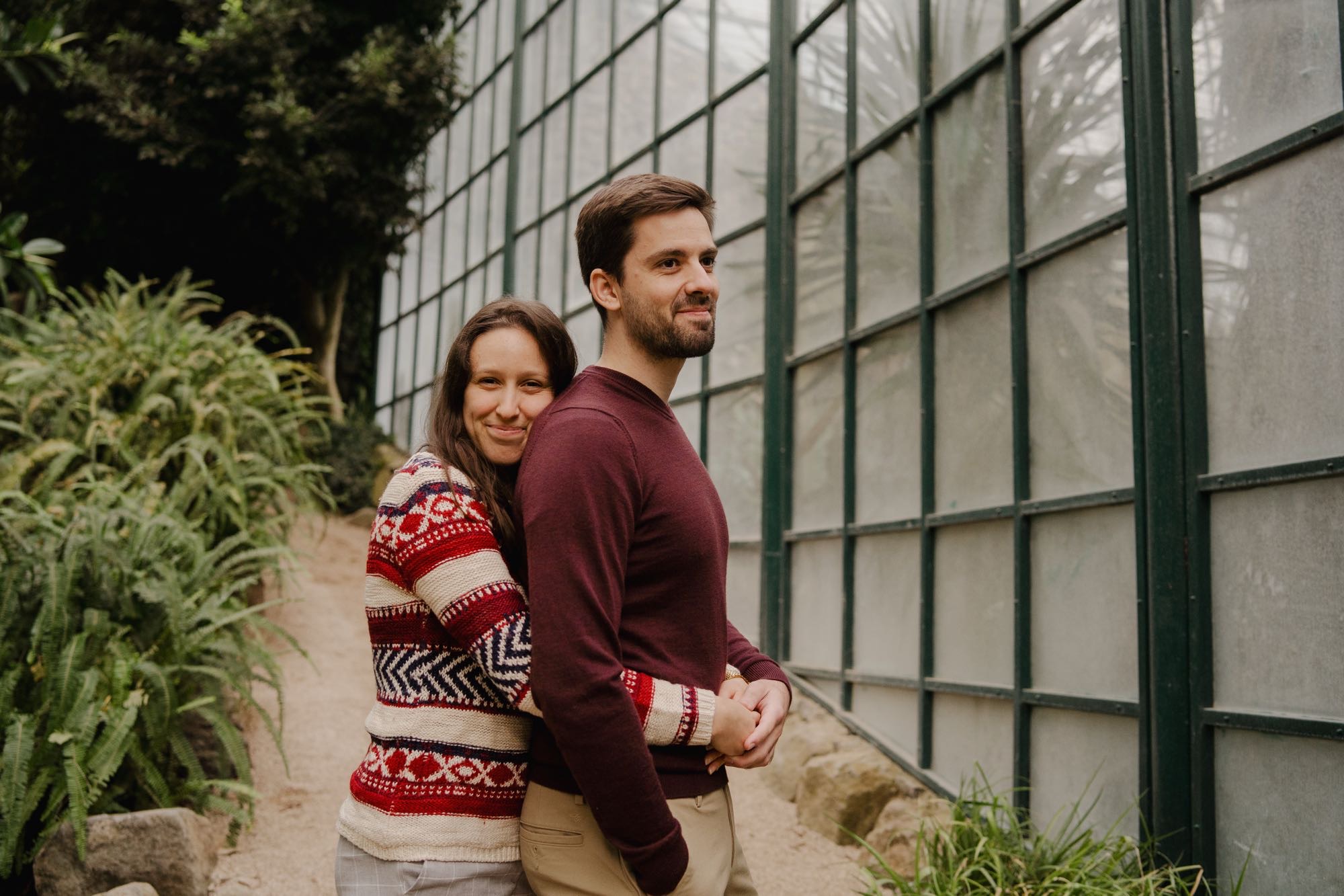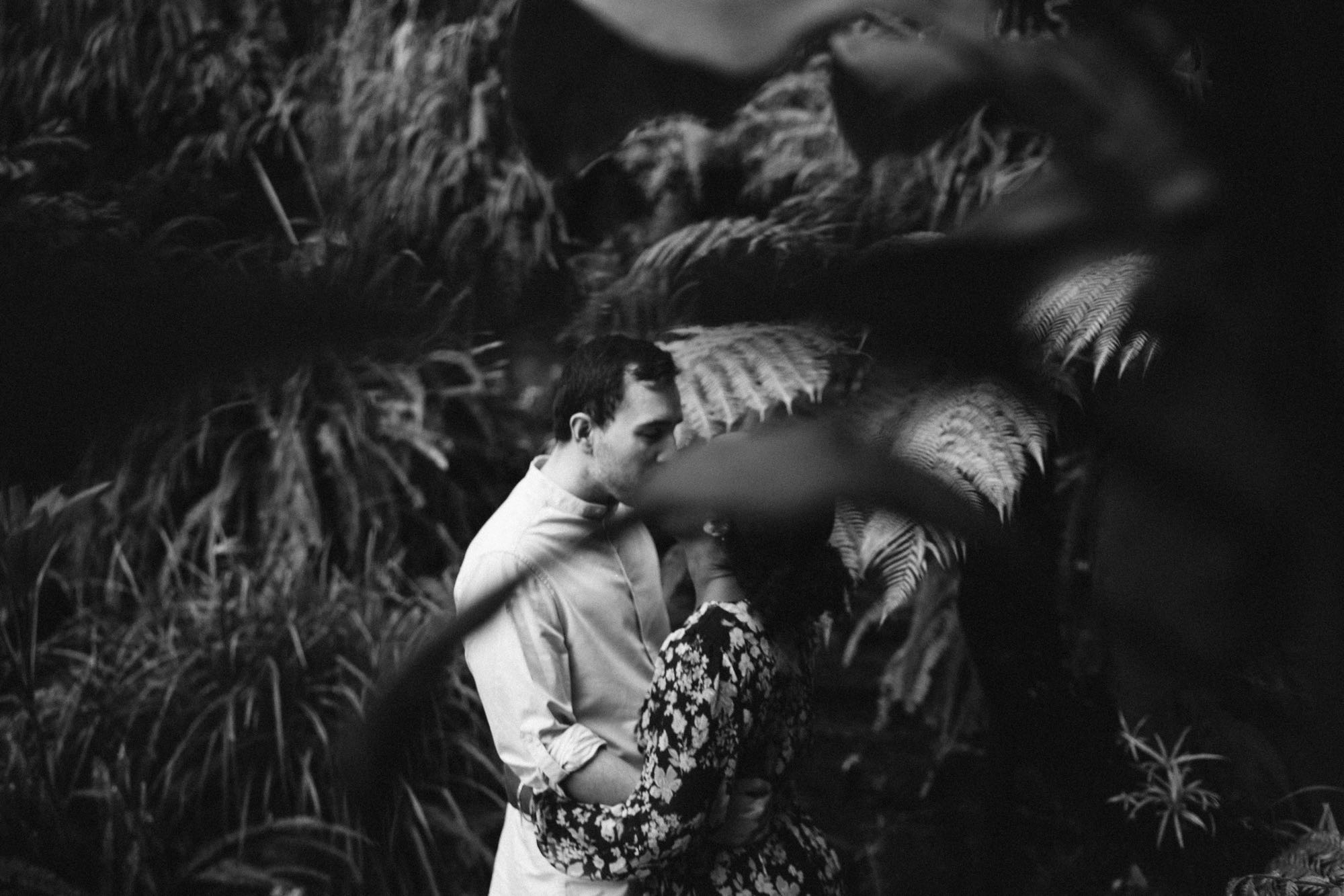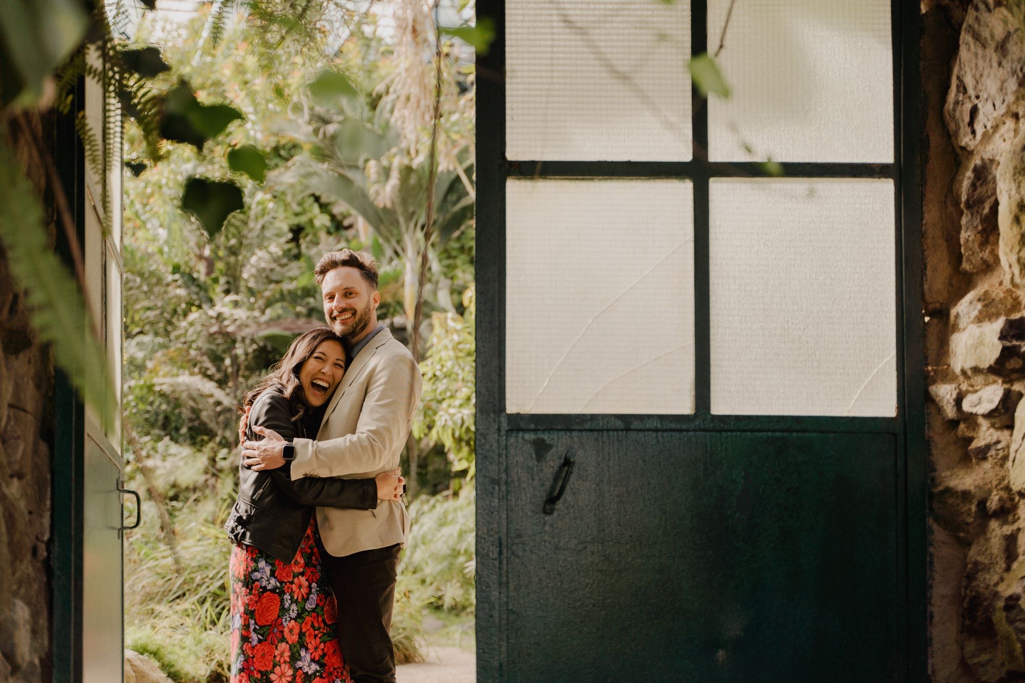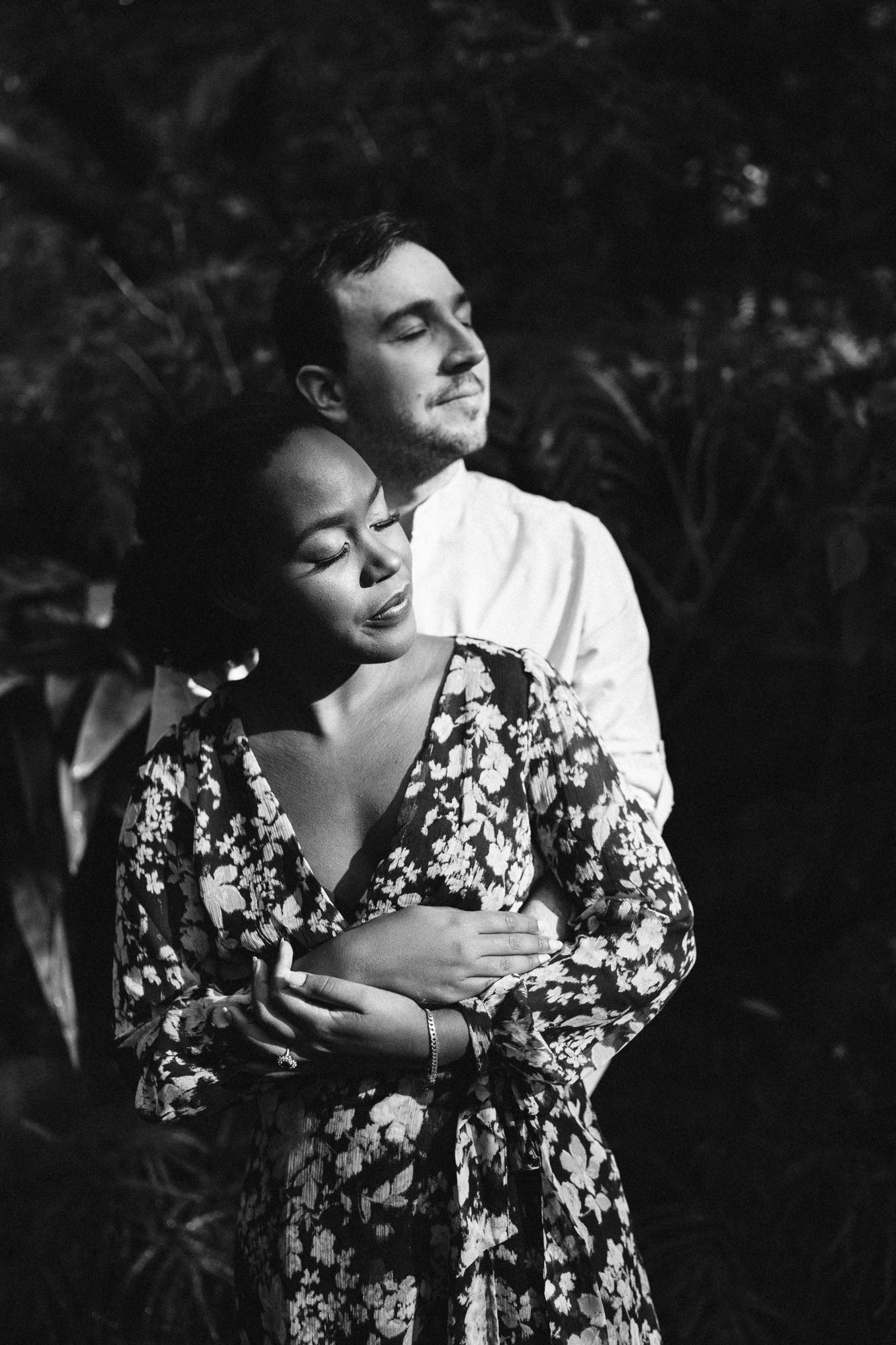 As we moved deeper into the glass-covered sections, the light became even more ethereal. There is a specific “greenhouse glow” that happens here—a soft, diffused light that is incredibly flattering. These capture that quiet, black-and-white intimacy that happens when the world outside the glass disappears, leaving only the two of you.