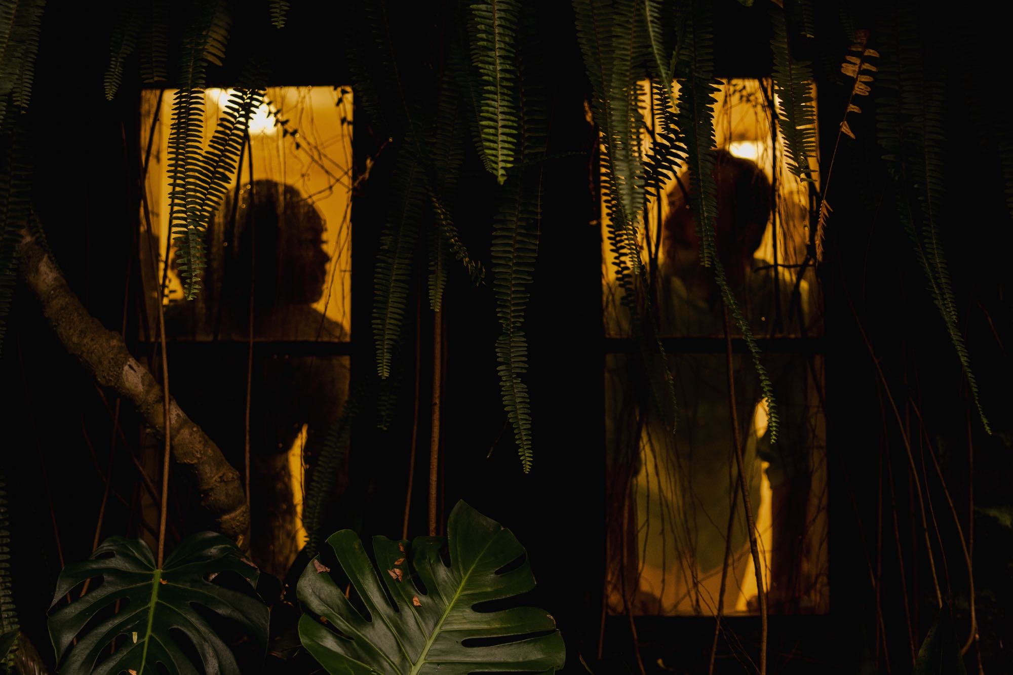 Notice the shift to more “editorial” vibes here. The contrast between the dark, moody foliage and the couple’s connection creates a high-fashion feel without losing the “natural” essence of the day. Using the vertical lines of the palms adds a sense of height and grandeur to the story.