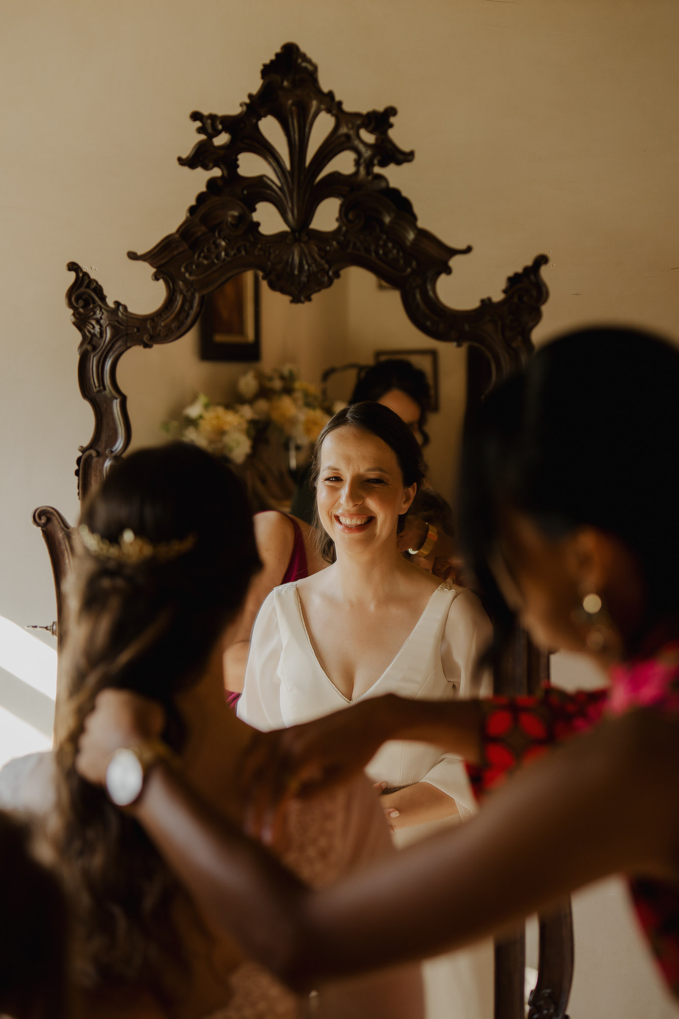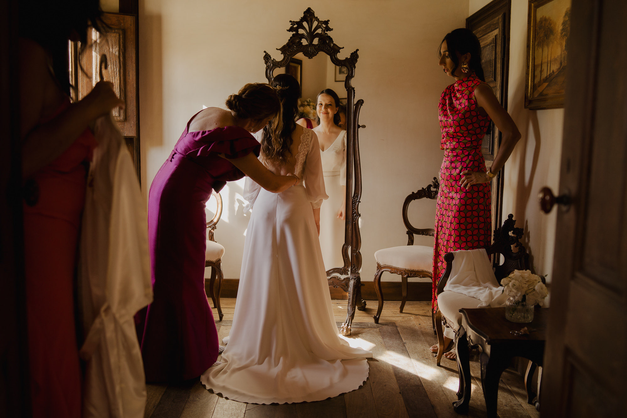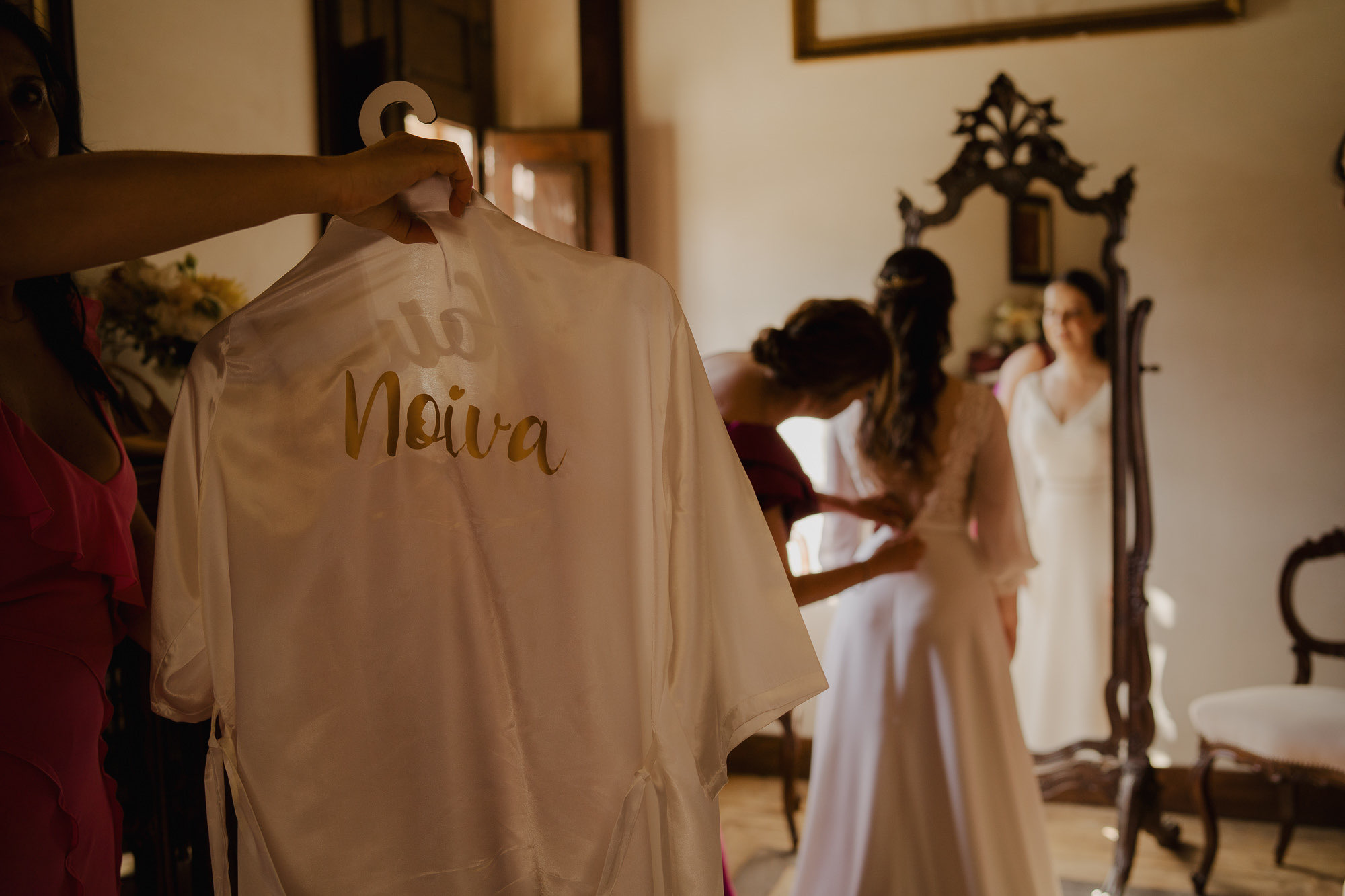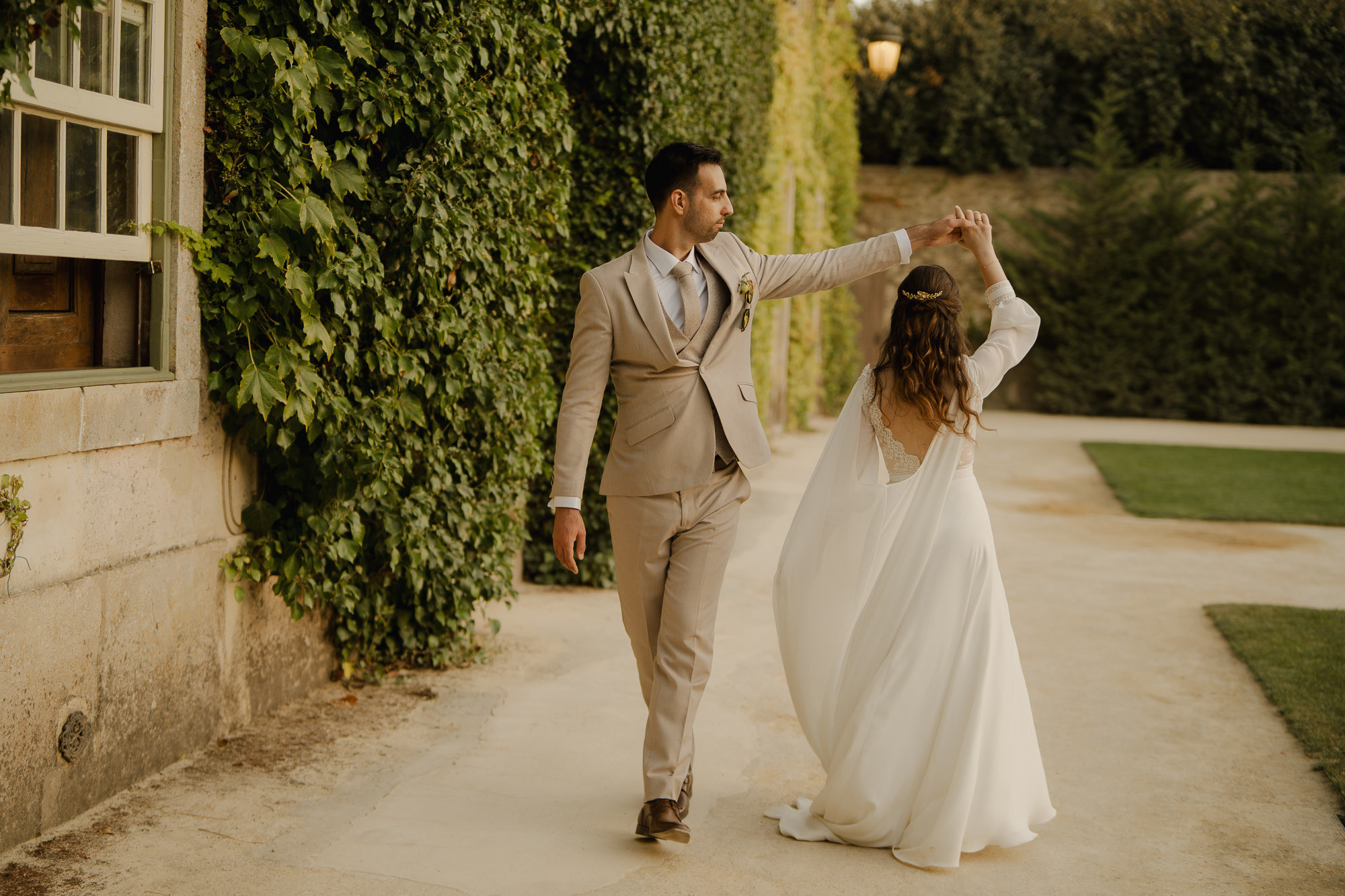 Solar de Pancas is a historic 15th-century estate that is simply breathtaking. Filipa and Ricardo’s day started with a classic wedding “emergency”—the groom realized his suit trousers were back at home! But that’s the beauty of this place; there’s a sense of calm that settles everything.