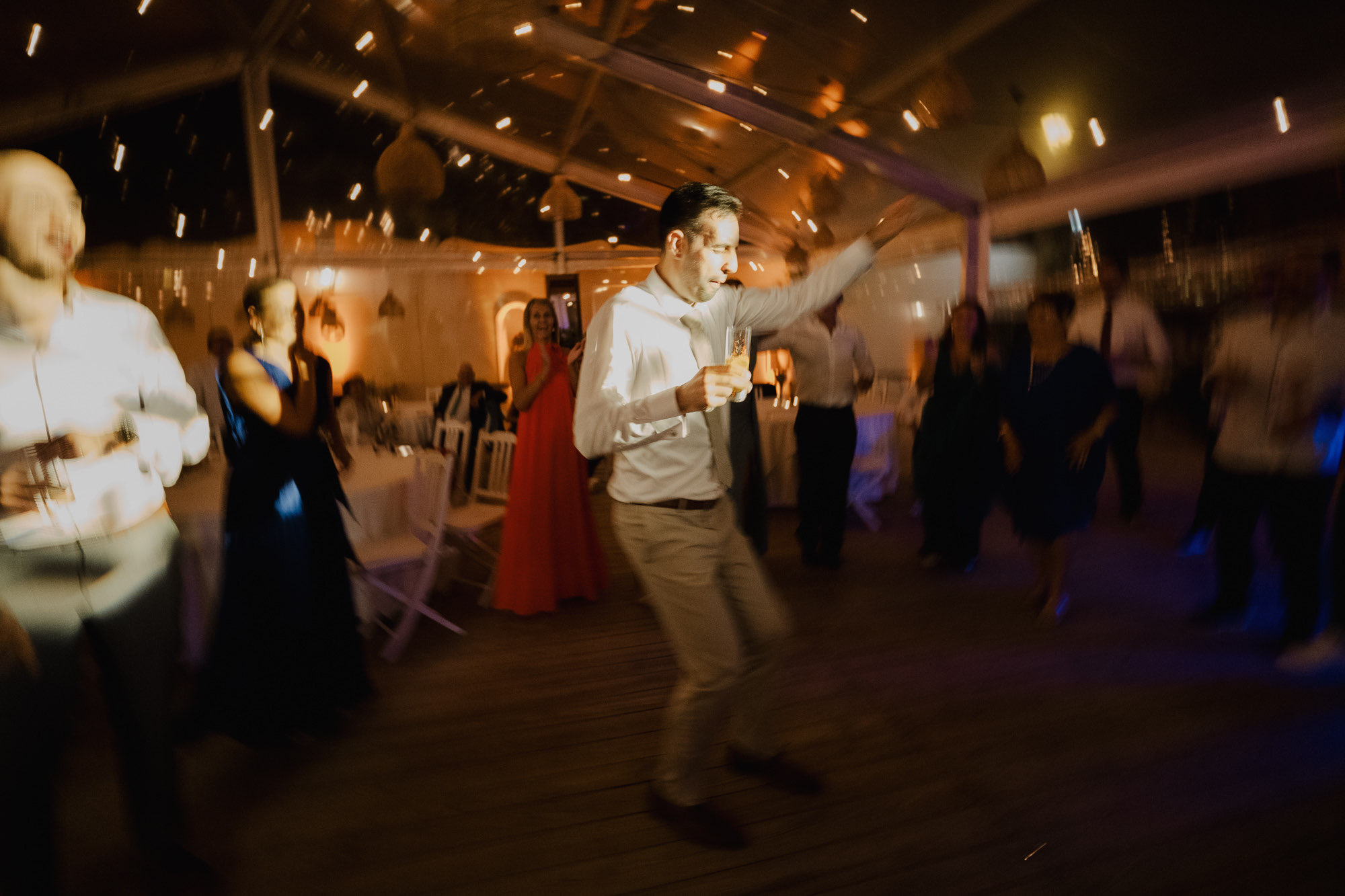The gardens here are iconic. During the hot ceremony, I was “bunny hopping” around to catch every angle of the flower-adorned architecture. We utilized the famous white sofas for a few quiet, simple portraits before the party kicked off. For the dancing, I cranked the ISO to keep the ambient glow of the venue alive. It’s a place that feels like a dream, trousers or no trousers.