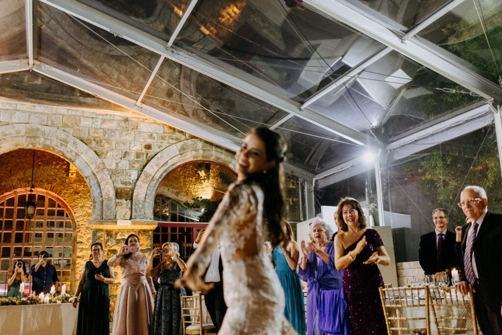 The bride’s dress was truly unique, featuring intricate transparent details that added a touch of elegance to the occasion. The ceremony took place in a charming church with an altar adorned with cool golden details, adding to the overall beauty of the event.