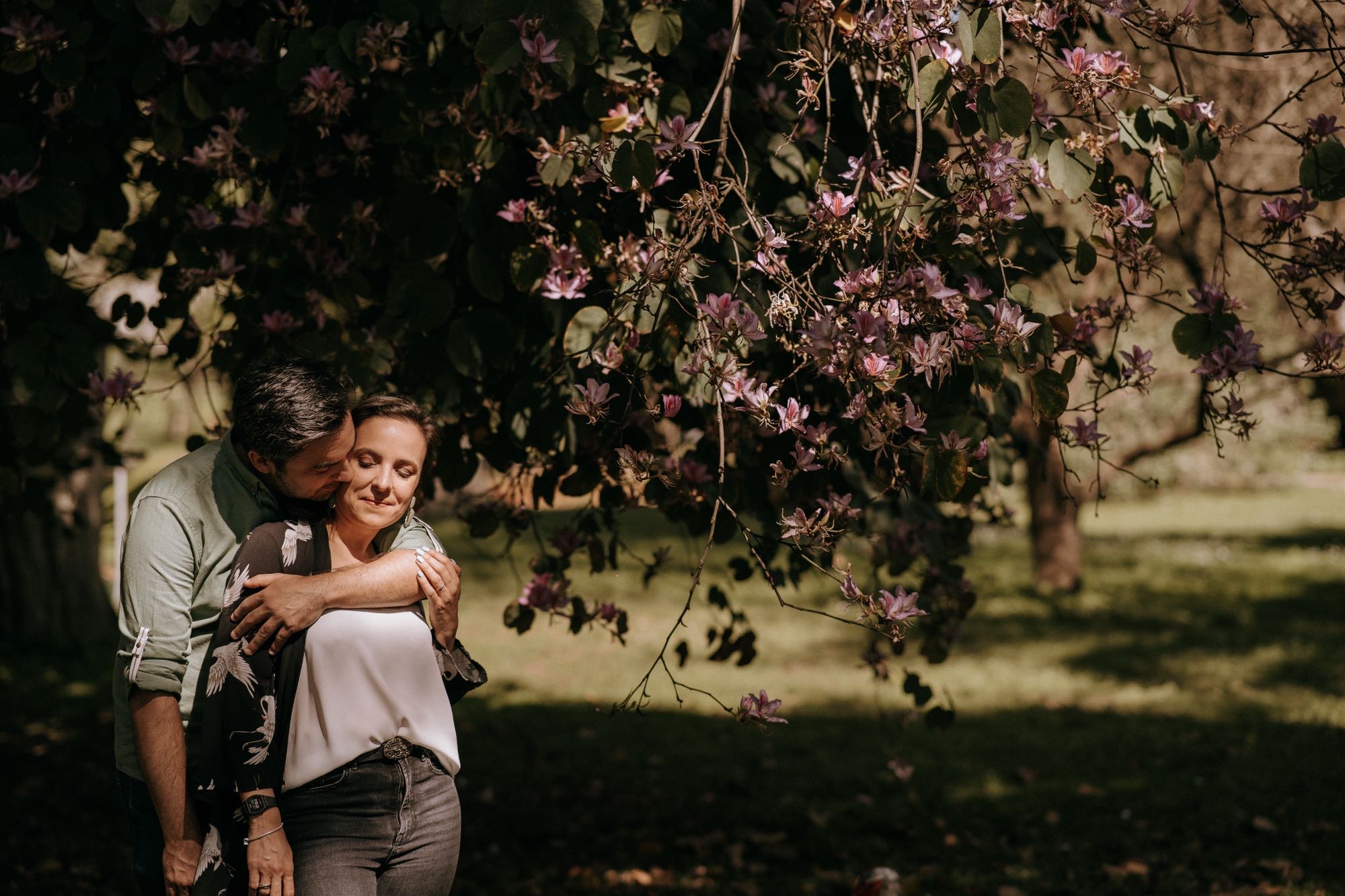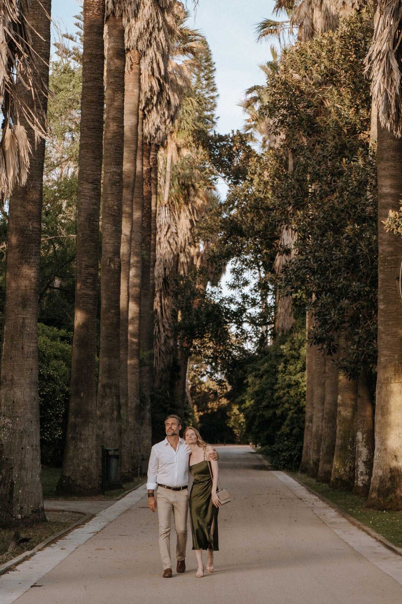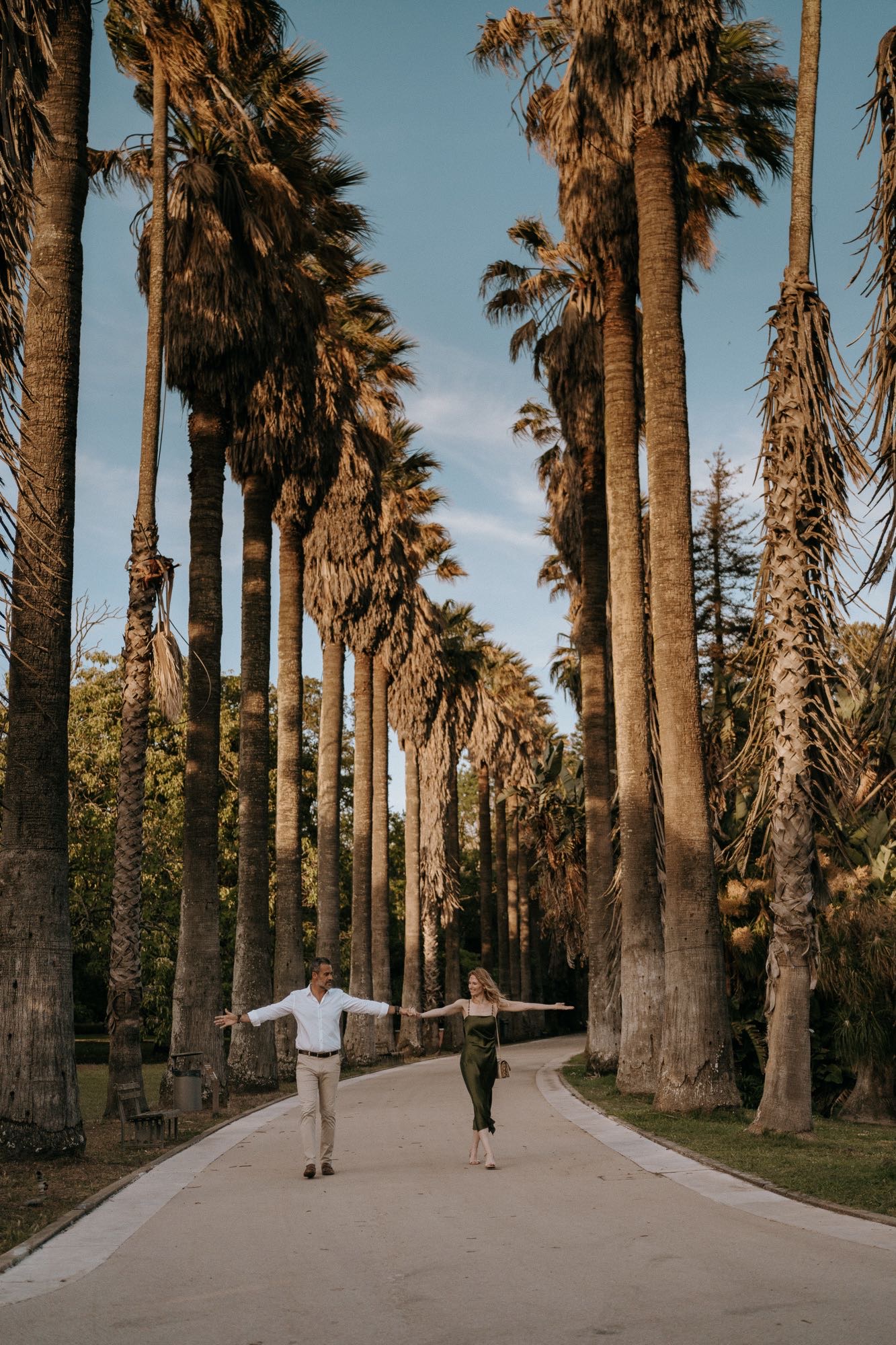 As we neared the end of the session, the Lisbon sun began to dip, casting a warm, golden glow over the tropical ponds. This is the magic hour at Jardim Botânico Tropical. The water reflections and the long shadows create a dreamlike atmosphere. It was the perfect finale for a session that celebrated both the grandeur of nature and the simplicity of a couple in love.
