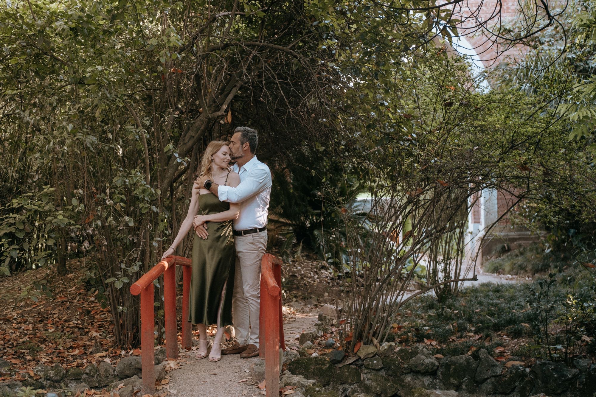 Beyond the big vistas, this garden is full of secret corners. The old stone staircases and the oriental-inspired bridges provide a shift in mood. Here, the session becomes quieter and more romantic. The soft, diffused light under the canopy is perfect for those close-up shots that capture the “pure” and “natural” energy between two people.