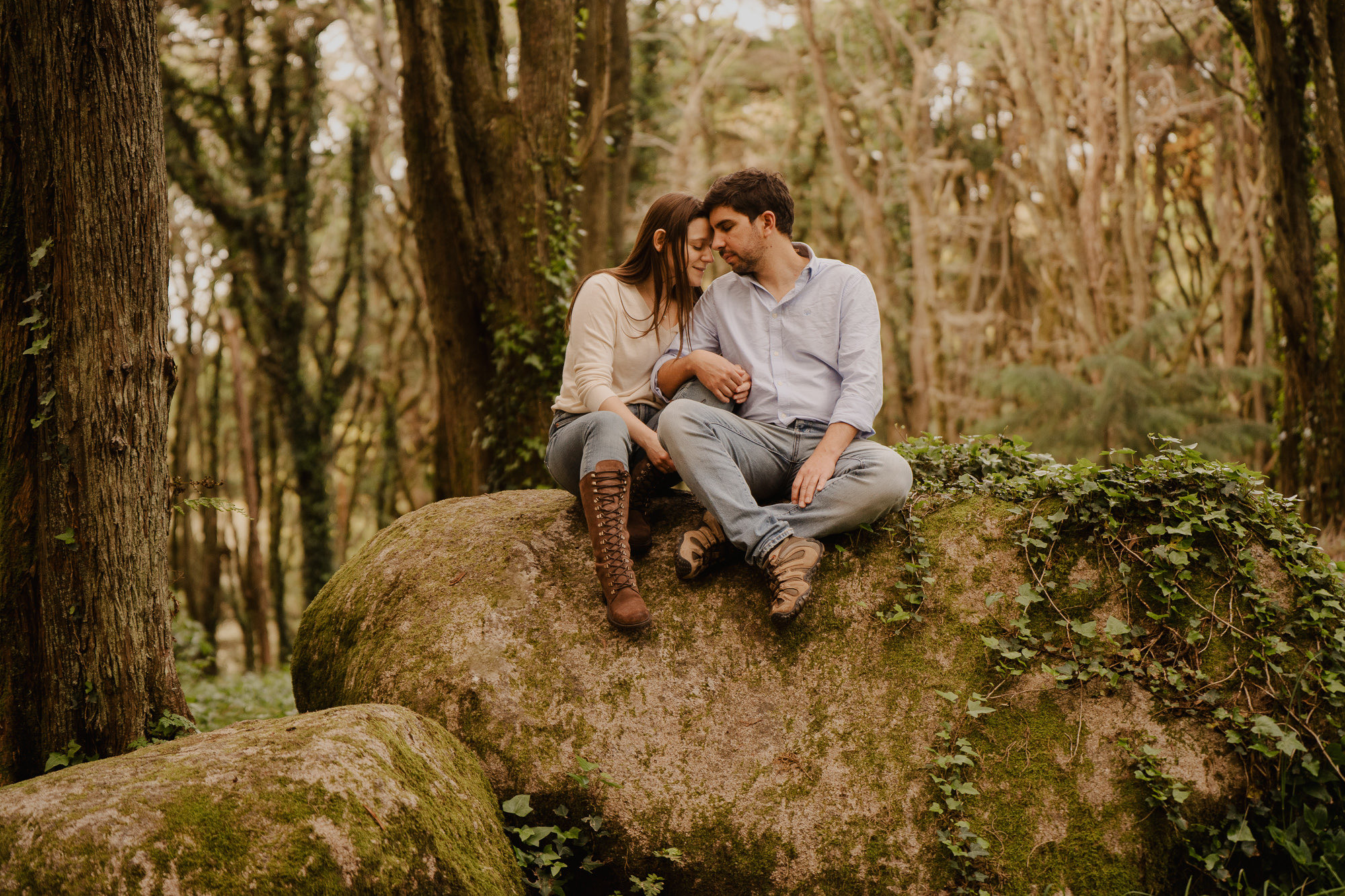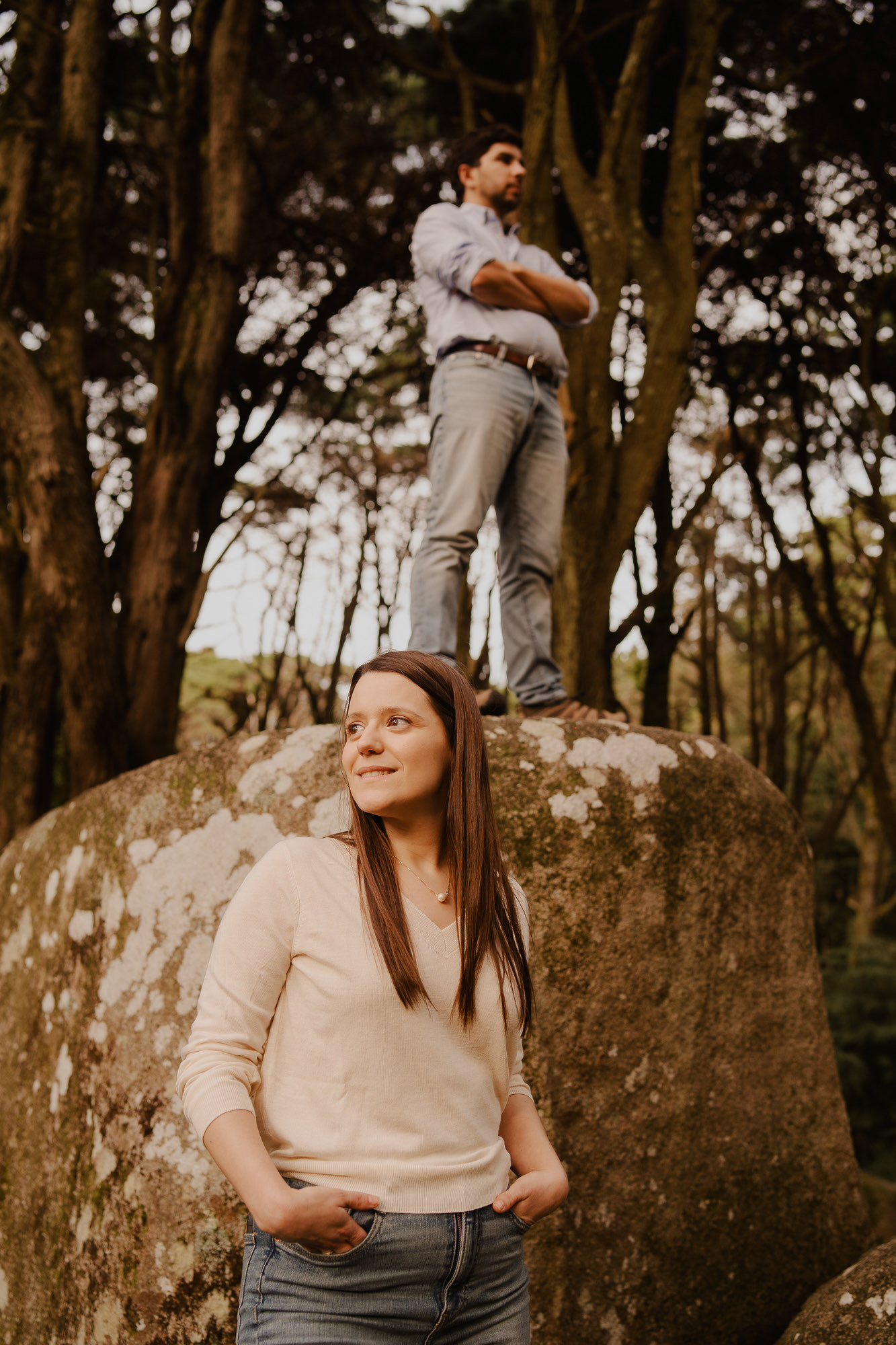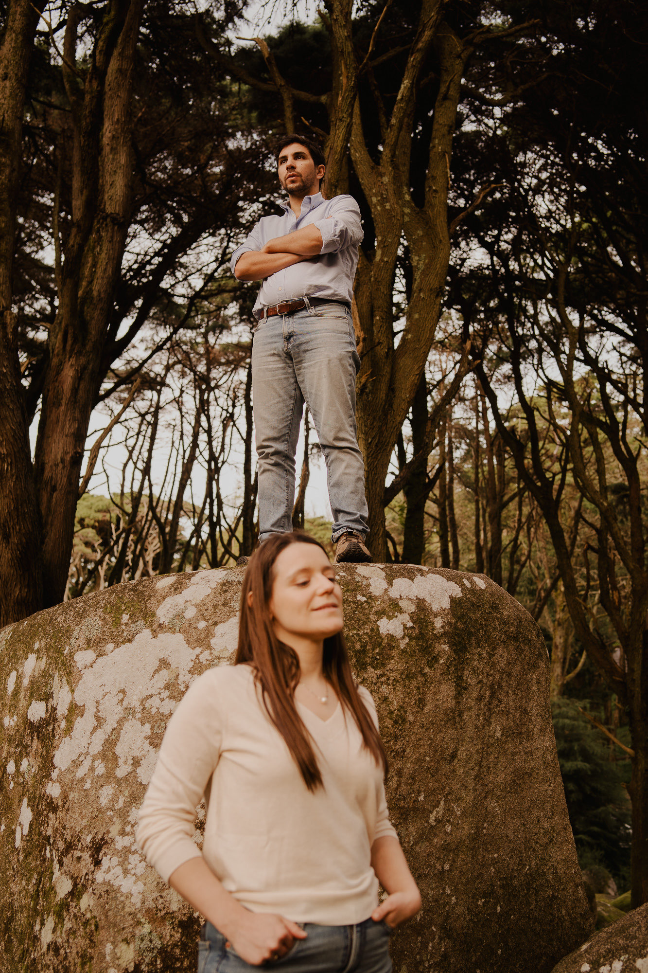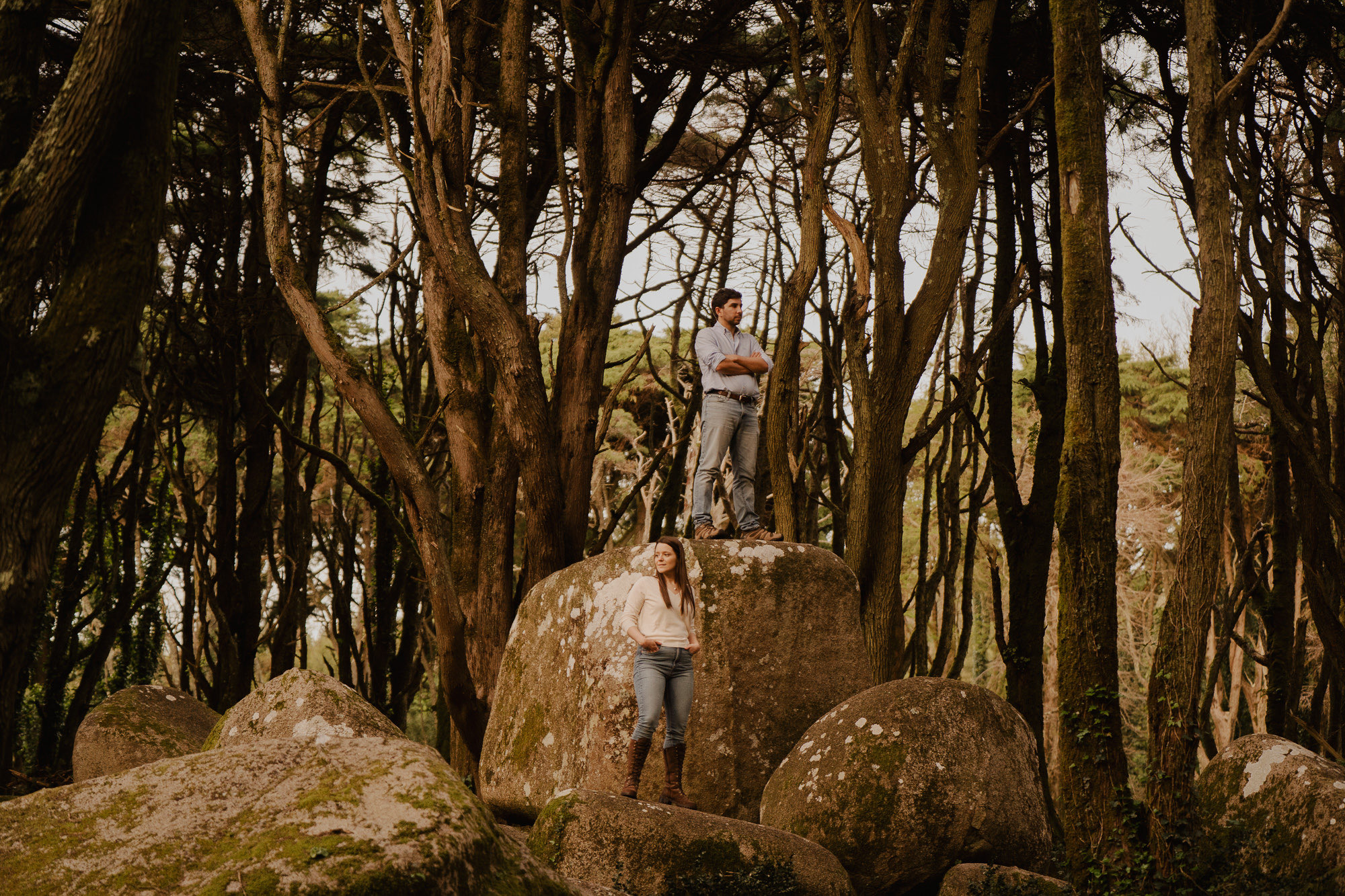 Think you’ve seen everything Peninha has to offer? For Matilde and José’s session, we waited for the sun to disappear. I brought along some remote-controlled LED lamps to create a cinematic, old-world glow in the dark Sintra forest.