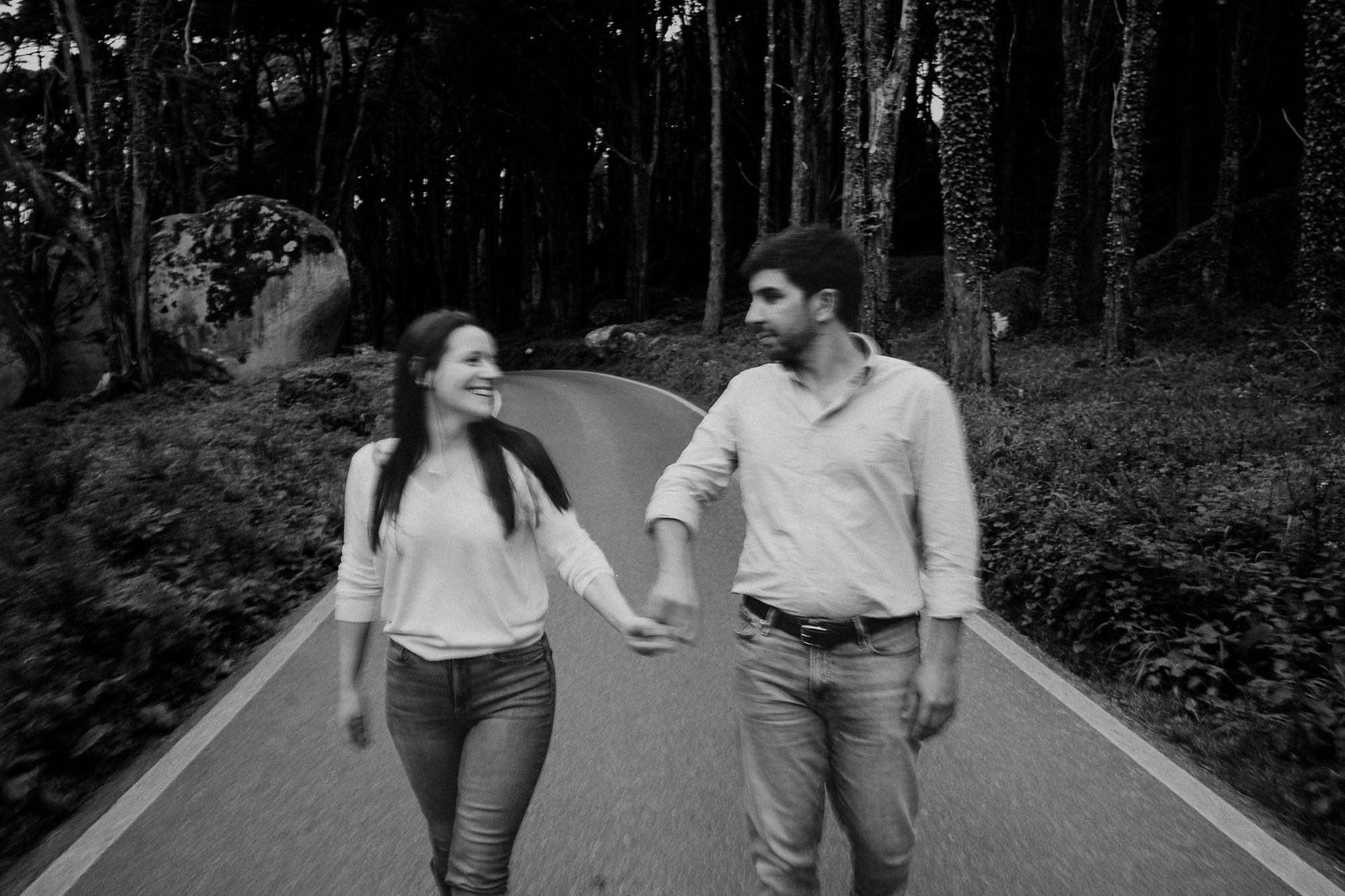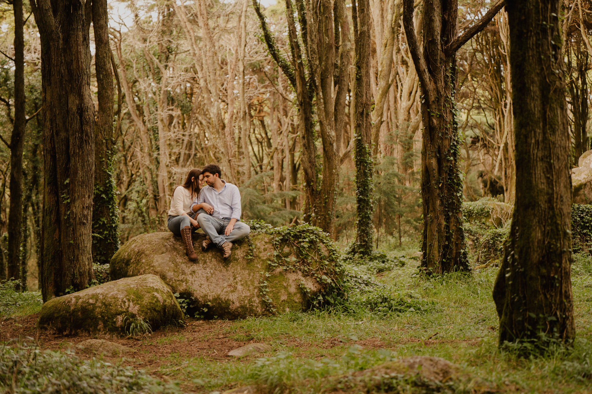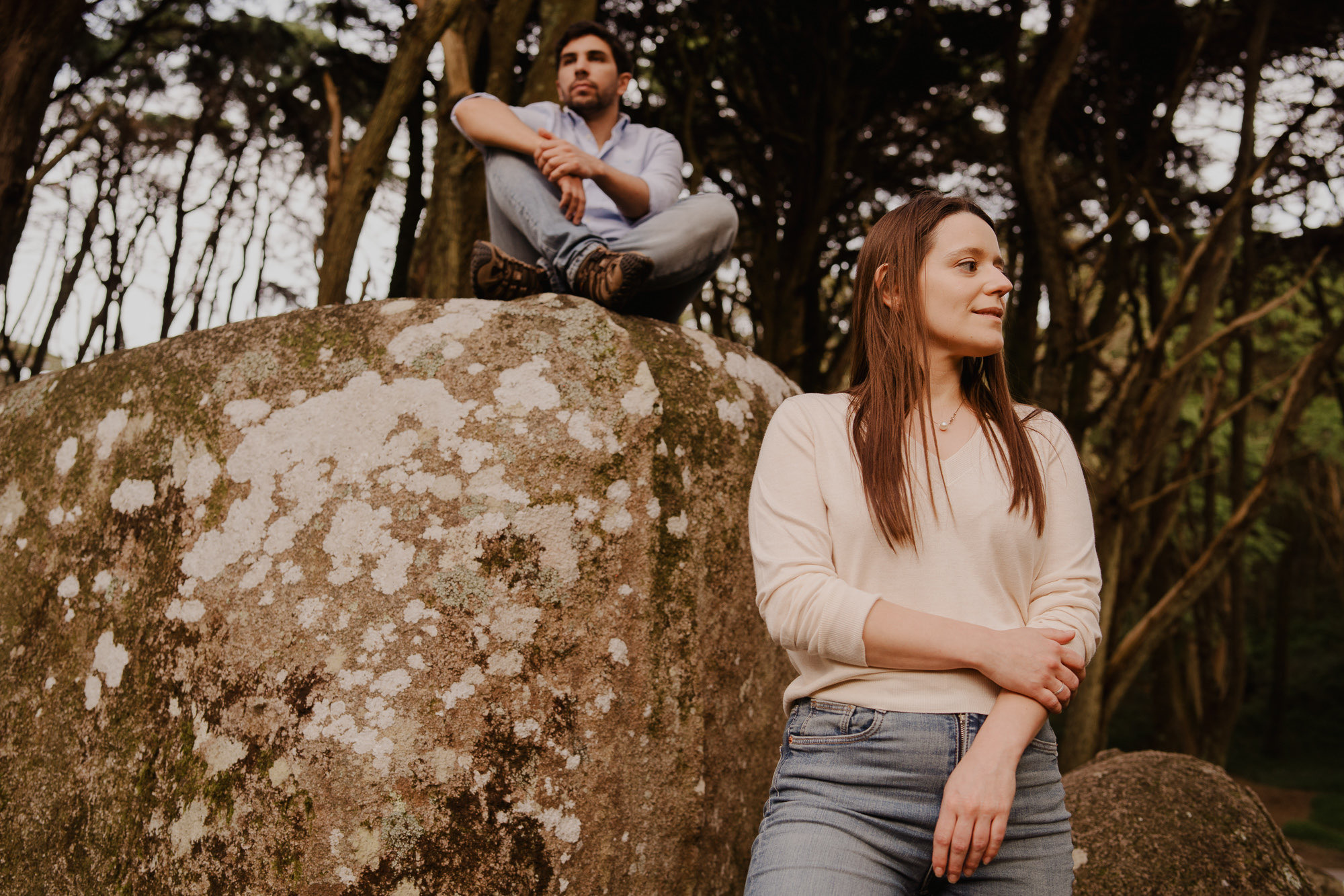 Think you’ve seen everything Peninha has to offer? For Matilde and José’s session, we waited for the sun to disappear. I brought along some remote-controlled LED lamps to create a cinematic, old-world glow in the dark Sintra forest.