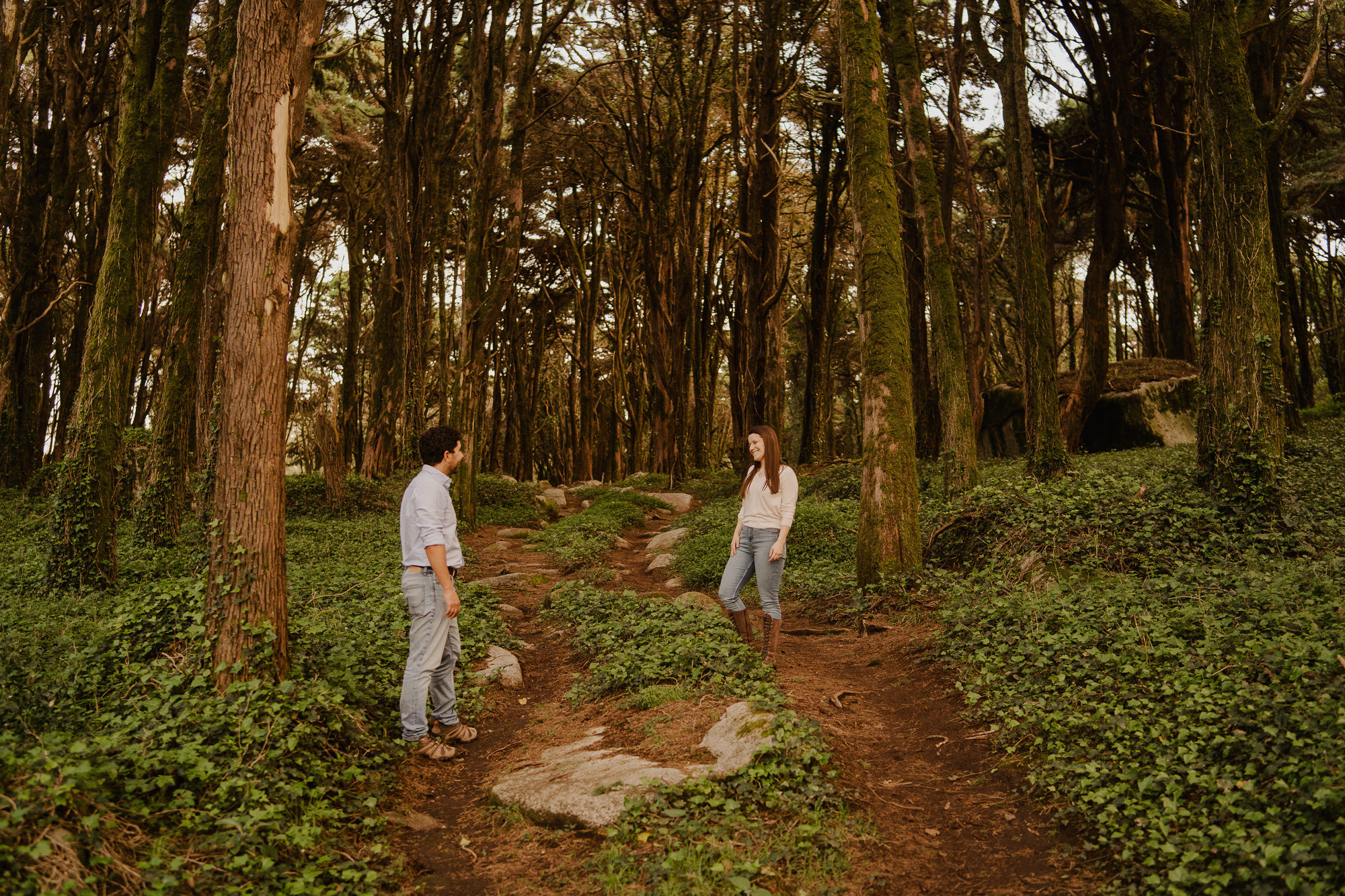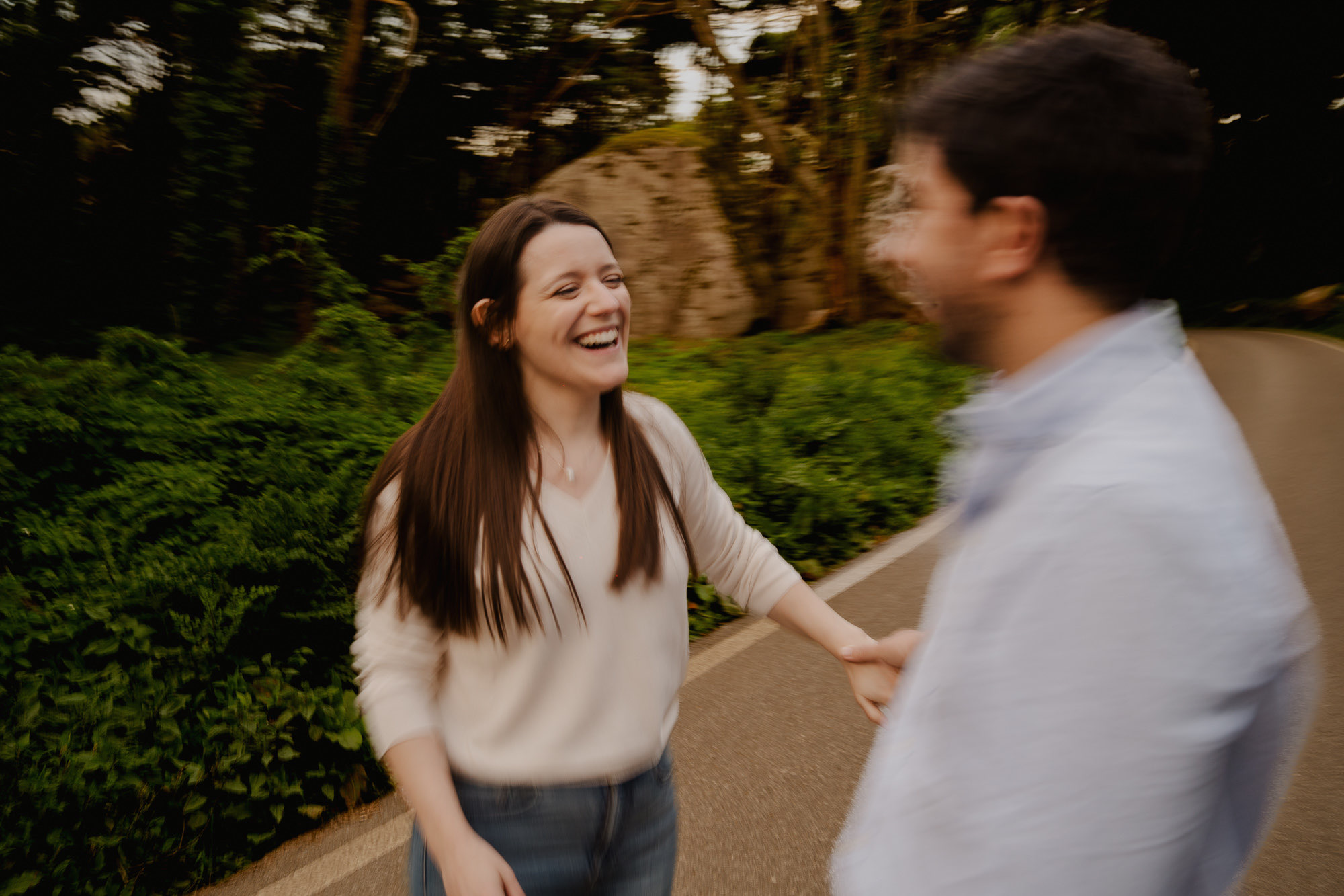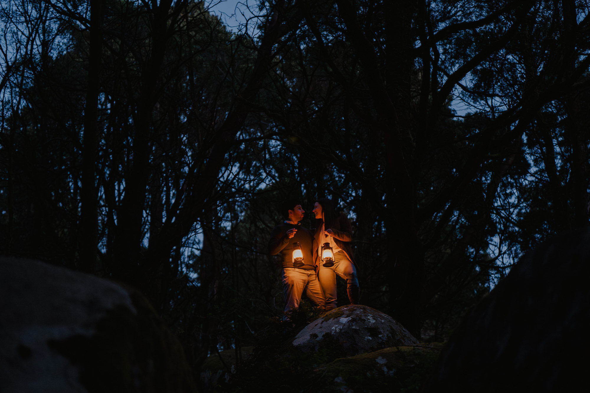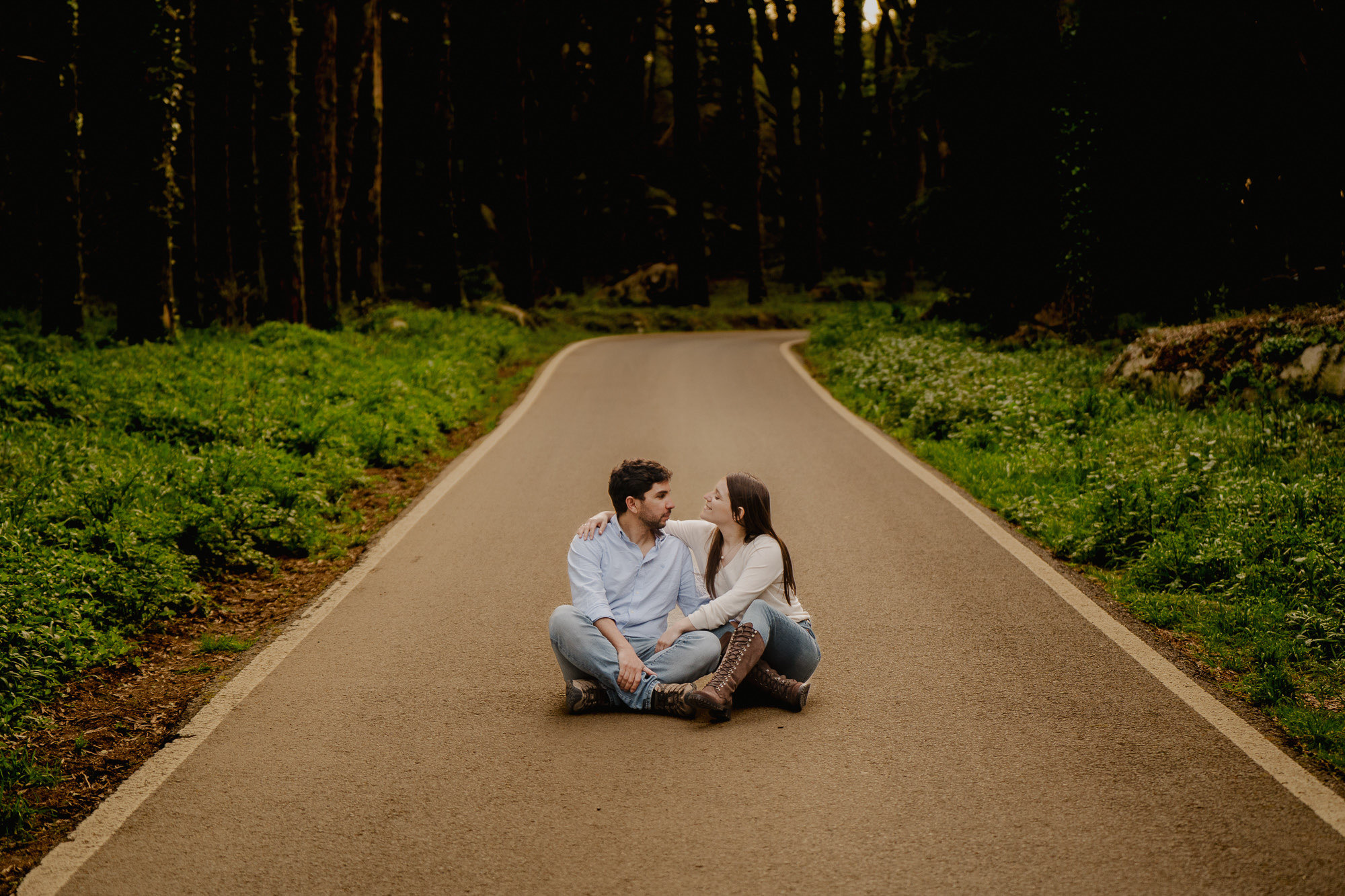 Think you’ve seen everything Peninha has to offer? For Matilde and José’s session, we waited for the sun to disappear. I brought along some remote-controlled LED lamps to create a cinematic, old-world glow in the dark Sintra forest.