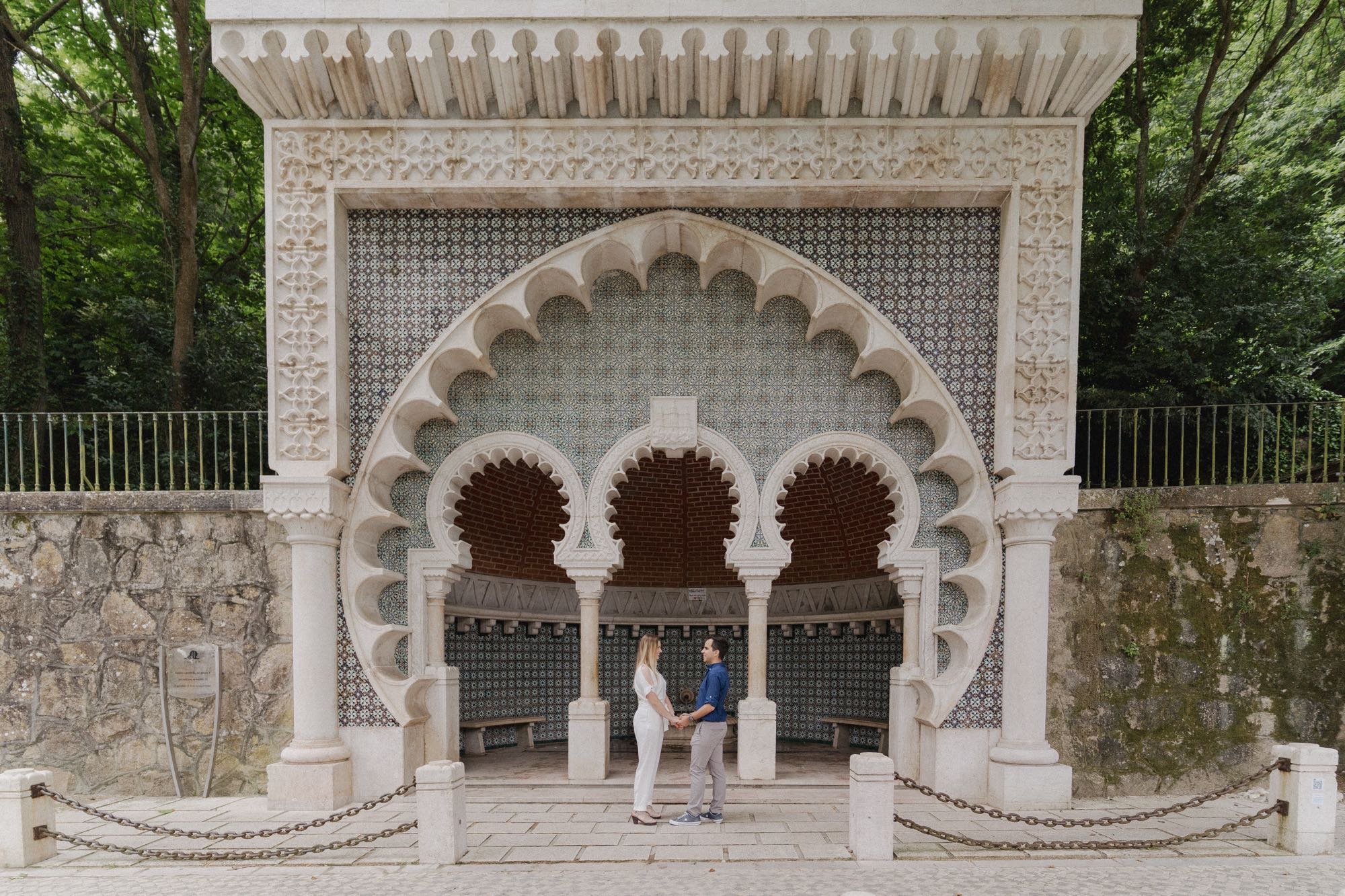 Sintra is not just a location; it is a feeling. It’s the whisper of ancient stone, the scent of damp moss, and a light so ethereal it feels painted into existence. For couples seeking a blend of architectural grandeur and wild, natural beauty, a Monserrate Palace engagement session is the ultimate romantic pilgrimage. This journey begins in the winding, pastel-hued heart of Sintra and culminates in the botanical wonderland of Monserrate, where every archway tells a story of exotic travels and timeless love.
