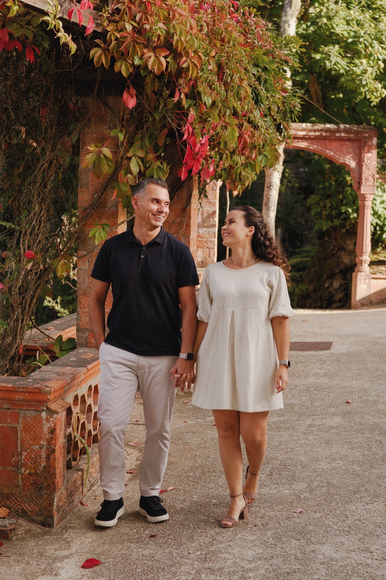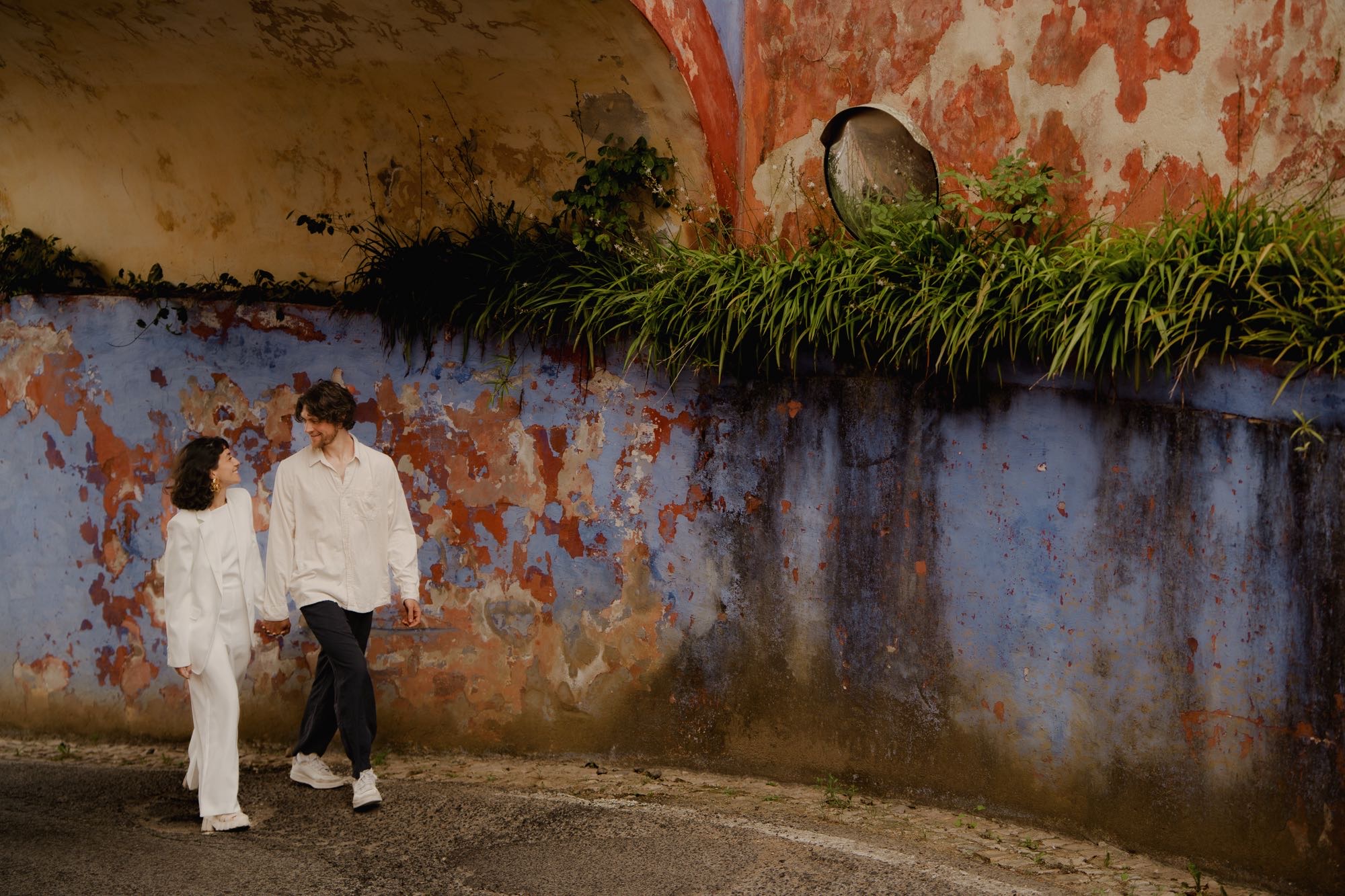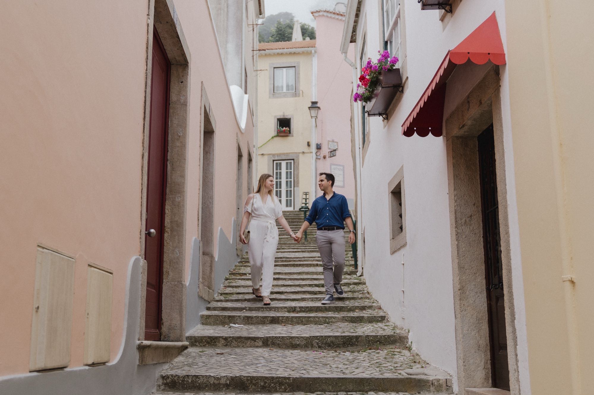 We started our day where the soul of the region lives: the narrow, colorful streets of Sintra. There is a specific kind of magic in the weathered red and blue walls that provides a grounded, soulful contrast to the grander locations to come. These moments are about the “fun and natural” connection—walking hand-in-hand, discovering hidden corners, and simply enjoying the crisp mountain air.