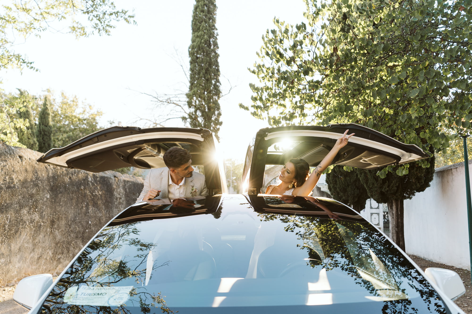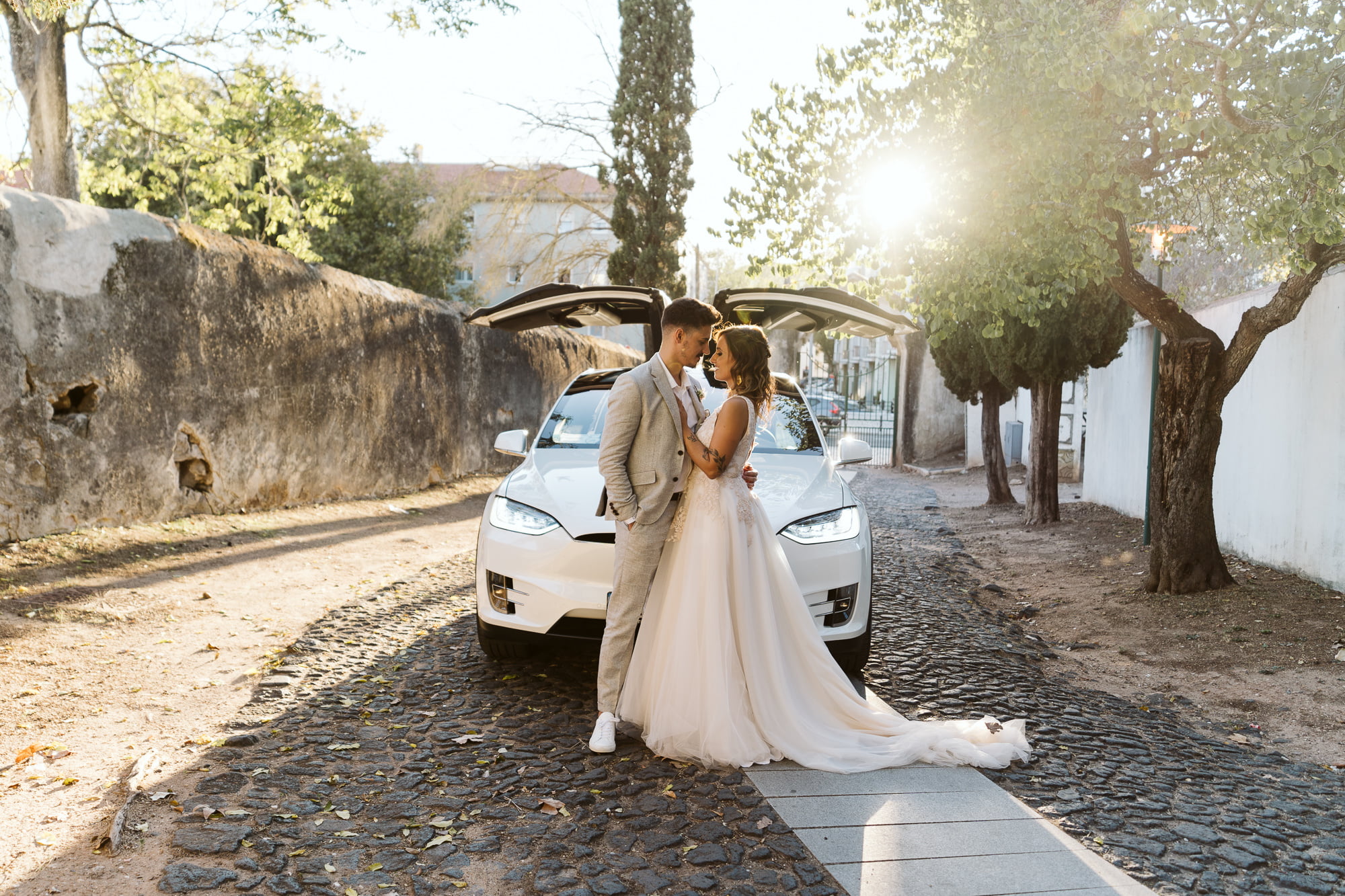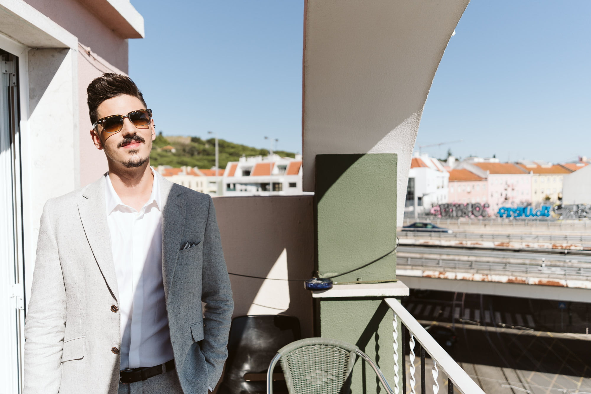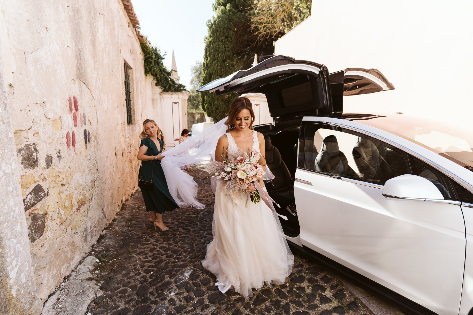 The day began in the center of Lisbon. Dóris and Diogo opted for preparations in their own stylish homes, grounding the start of their story in a place that truly felt like them. Dóris leaned into a flowy, ethereal boho aesthetic, while Diogo kept it modern and relaxed in a sharp grey suit without a tie—the perfect look for a warm Portuguese celebration.