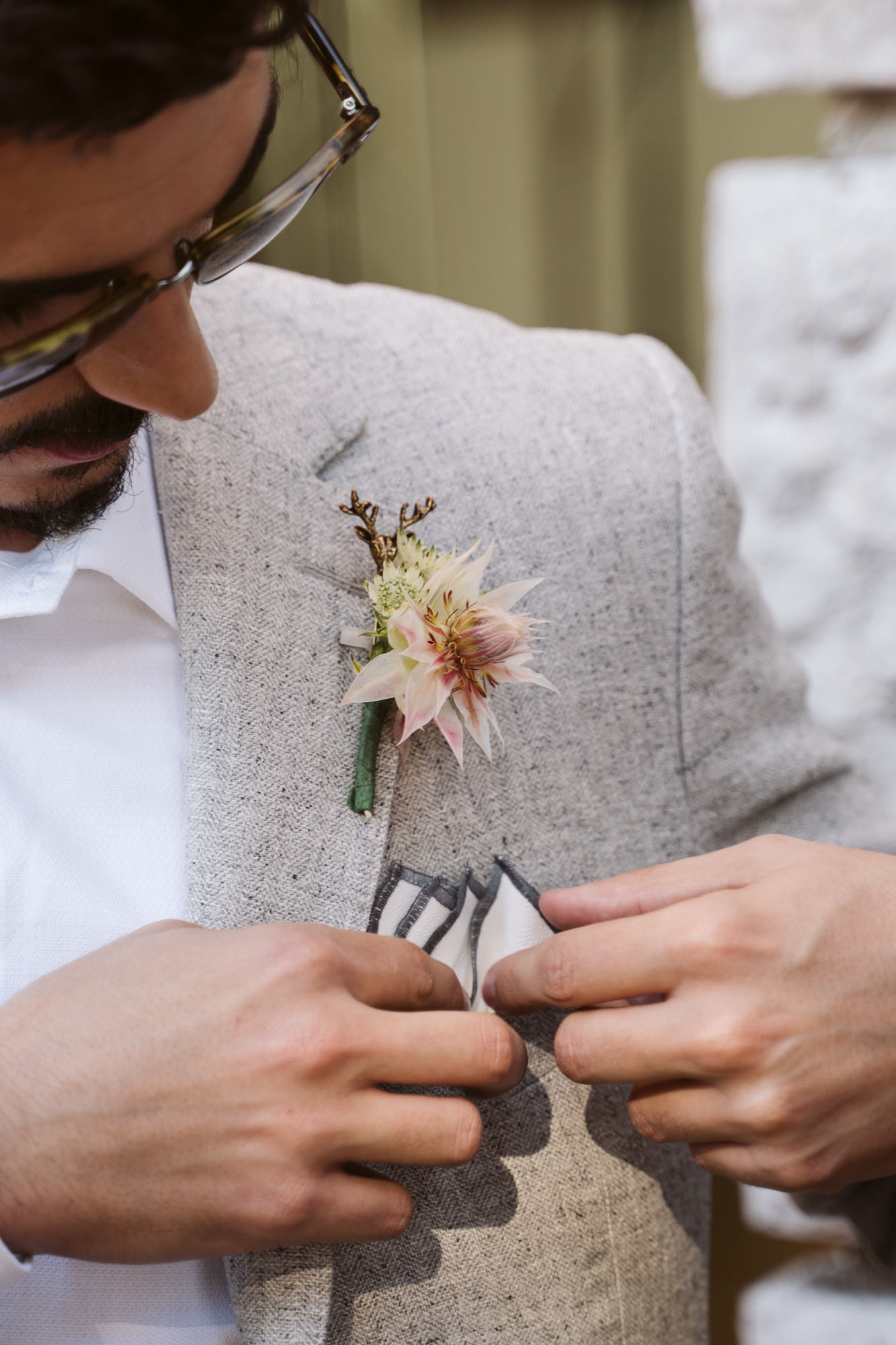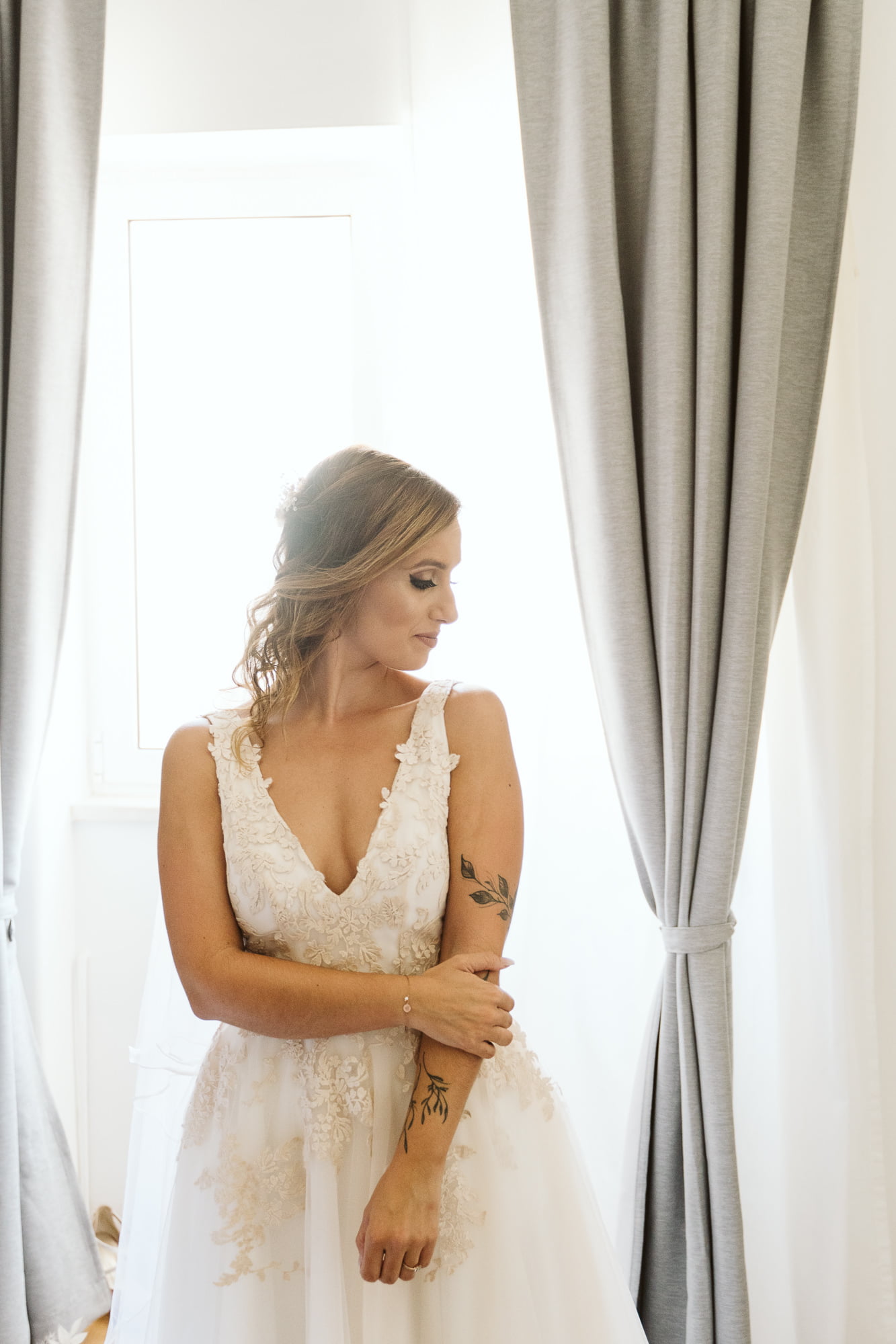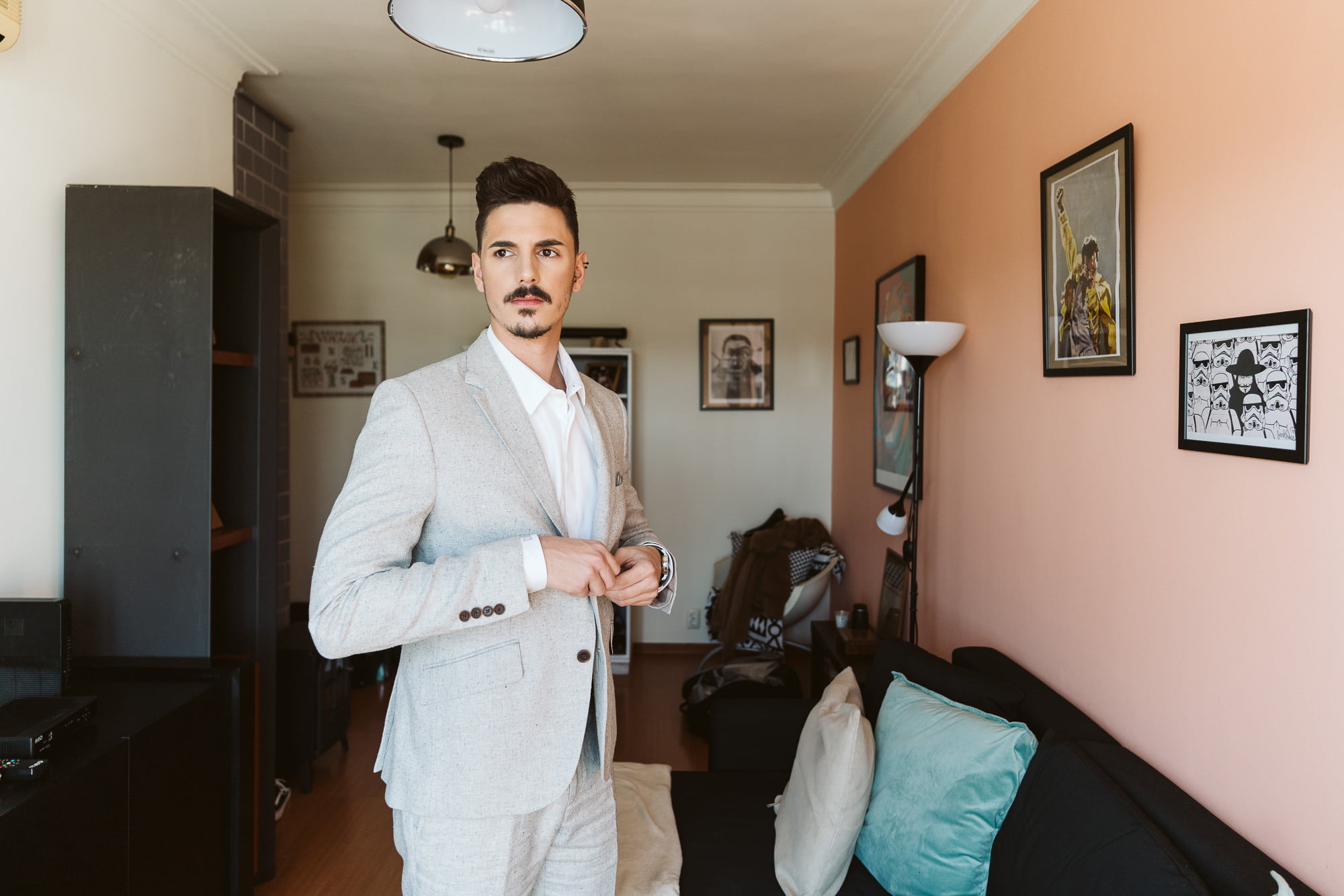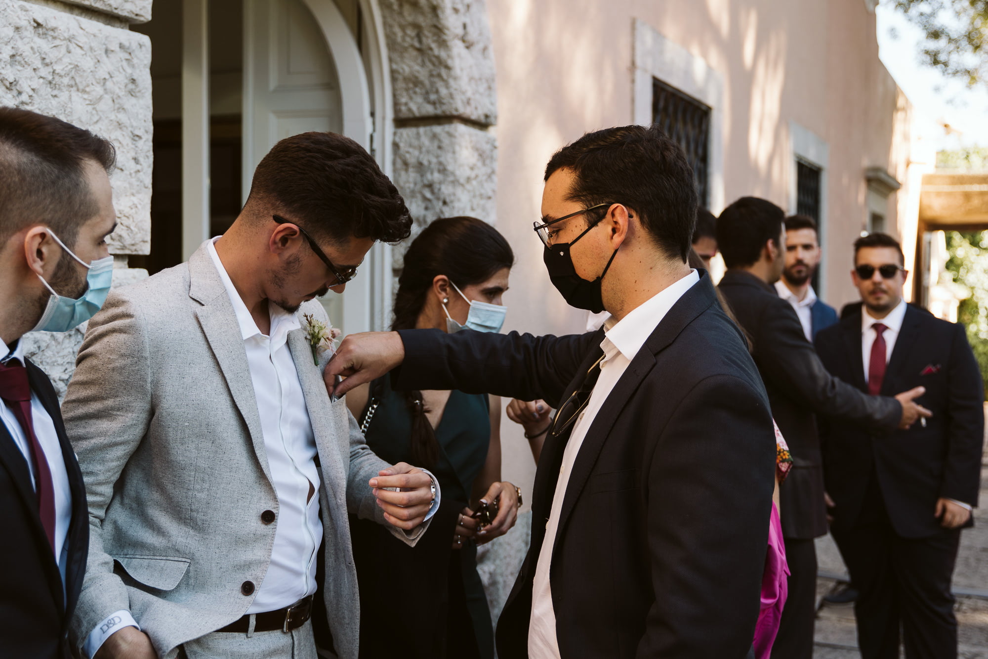 The day began in the center of Lisbon. Dóris and Diogo opted for preparations in their own stylish homes, grounding the start of their story in a place that truly felt like them. Dóris leaned into a flowy, ethereal boho aesthetic, while Diogo kept it modern and relaxed in a sharp grey suit without a tie—the perfect look for a warm Portuguese celebration.