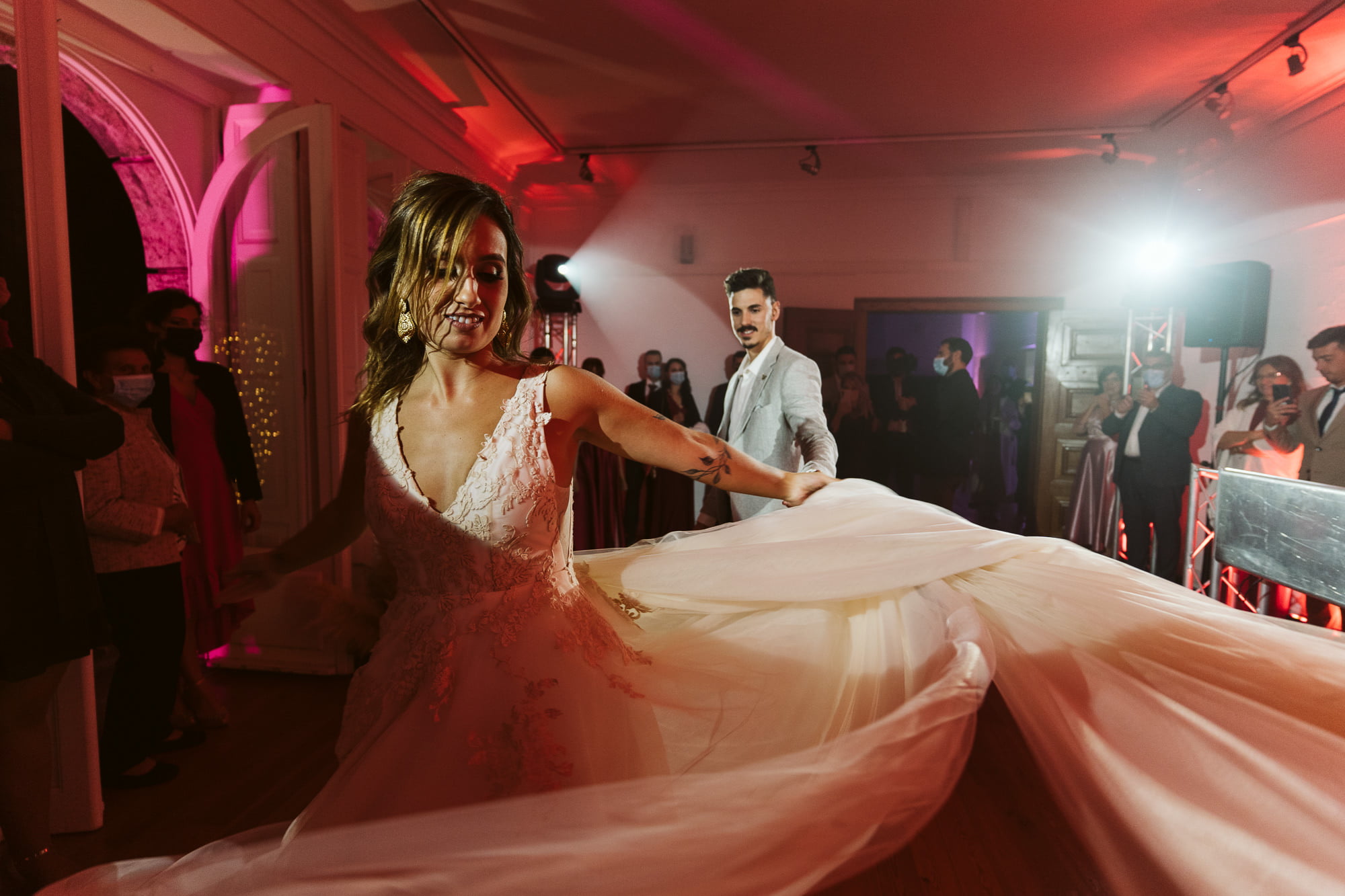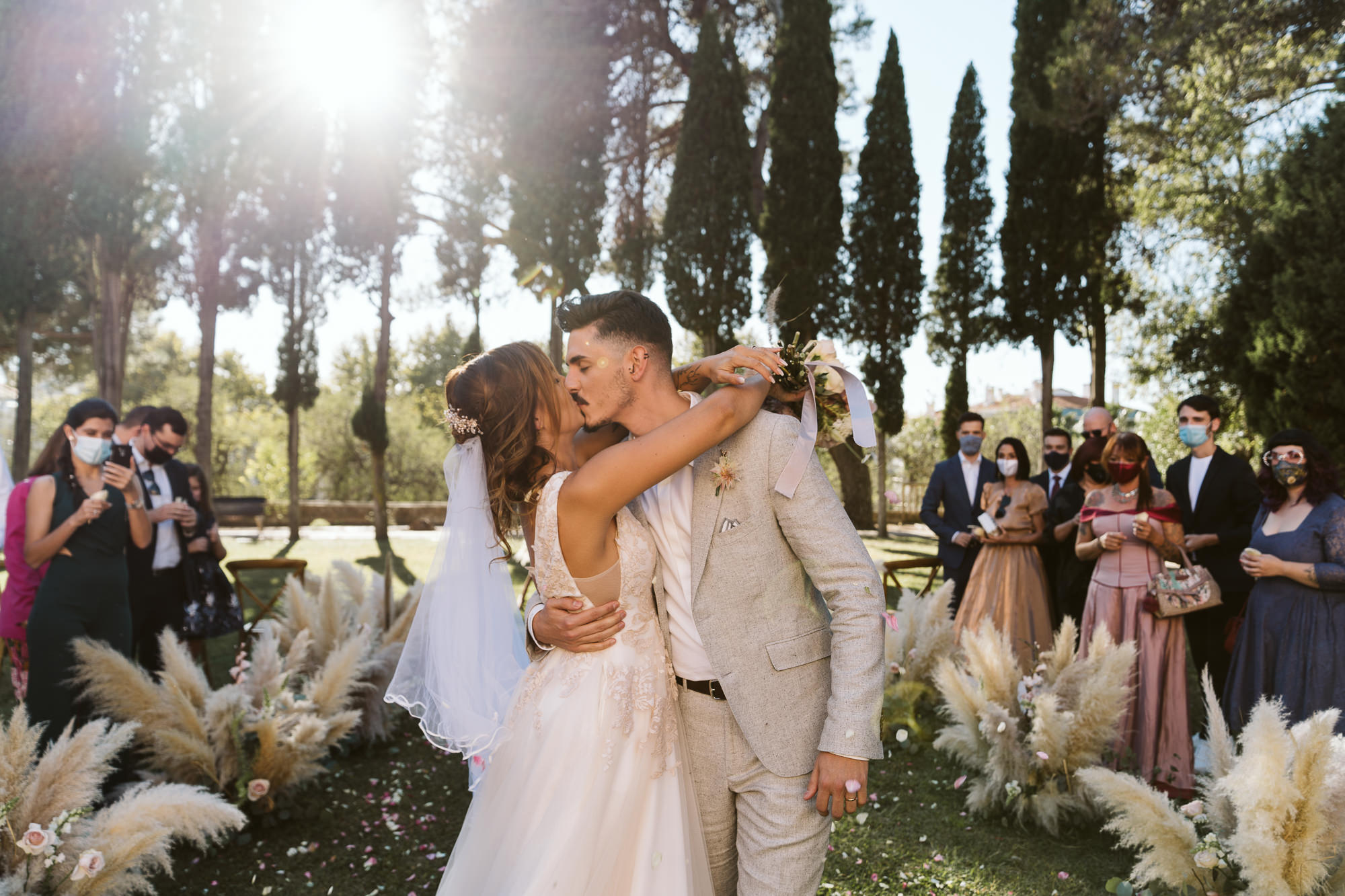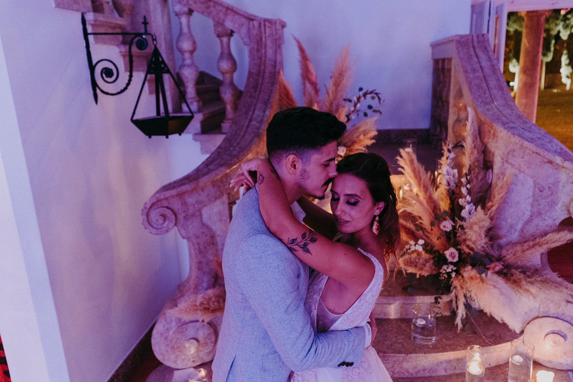 The ceremony at Palácio dos Aciprestes was a masterclass in boho styling. The altar was framed by pampas grass and vibrant textures, creating an intimate “secret garden” vibe. Because of my friendship with Dóris, capturing the vows felt like documenting a family moment—easy, authentic, and full of laughter.