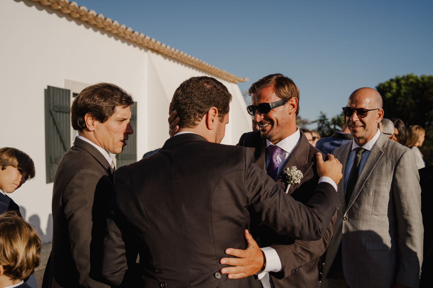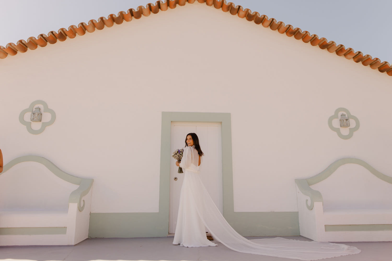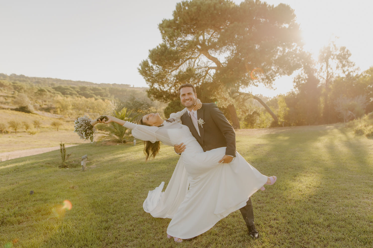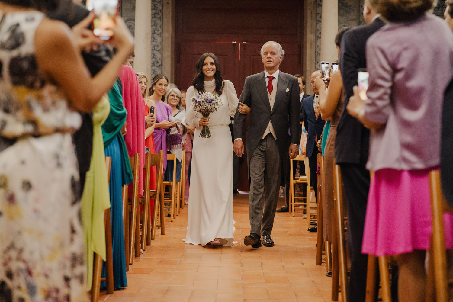 The ceremony was held at the Church of Sesimbra Castle (Castelo de Sesimbra). Perched high above the Atlantic, the setting is breathtaking. To do it justice, we utilized drone photography to capture the scale of the castle walls against the coastline. Inside, an orchestra filled the stone halls with a captivating musical atmosphere that made the “I dos” feel truly cinematic.