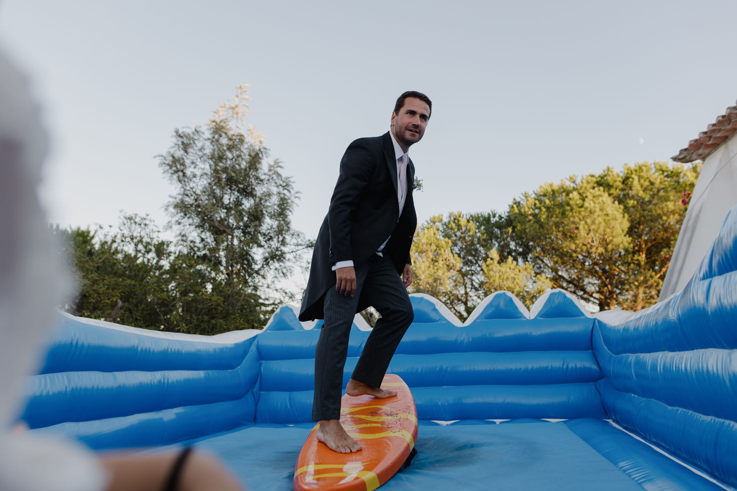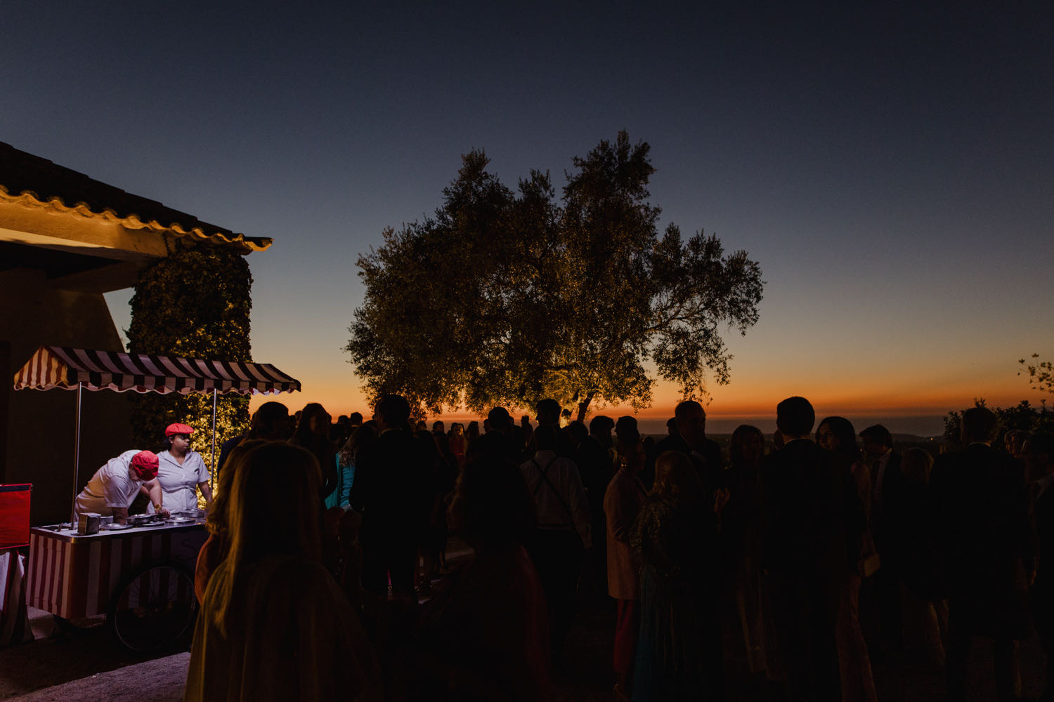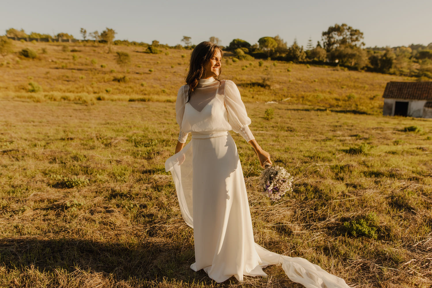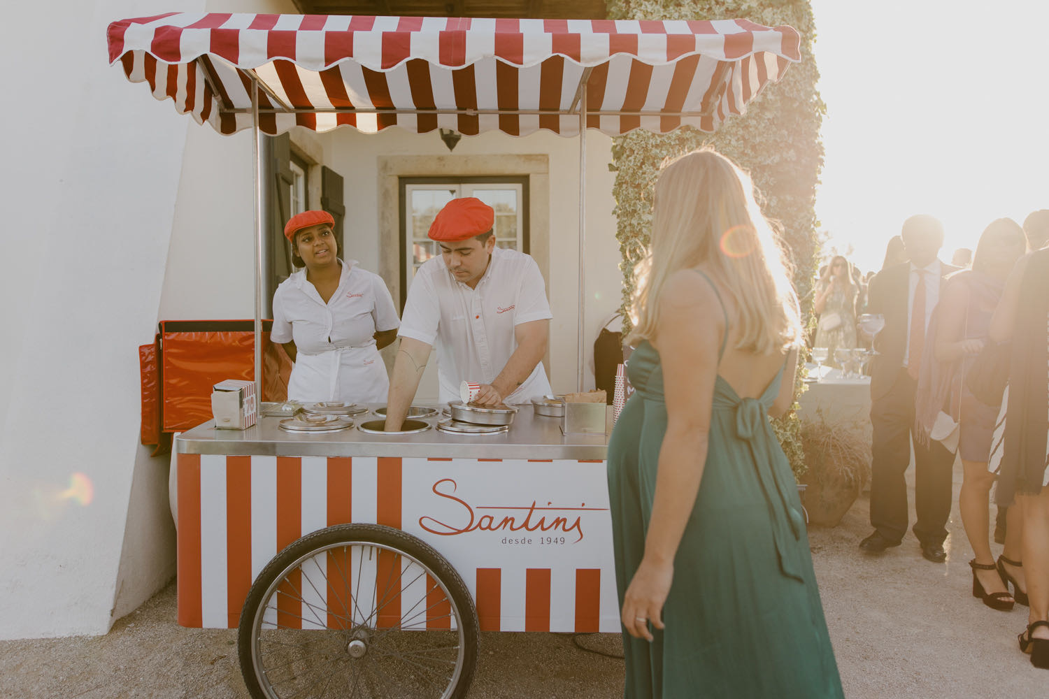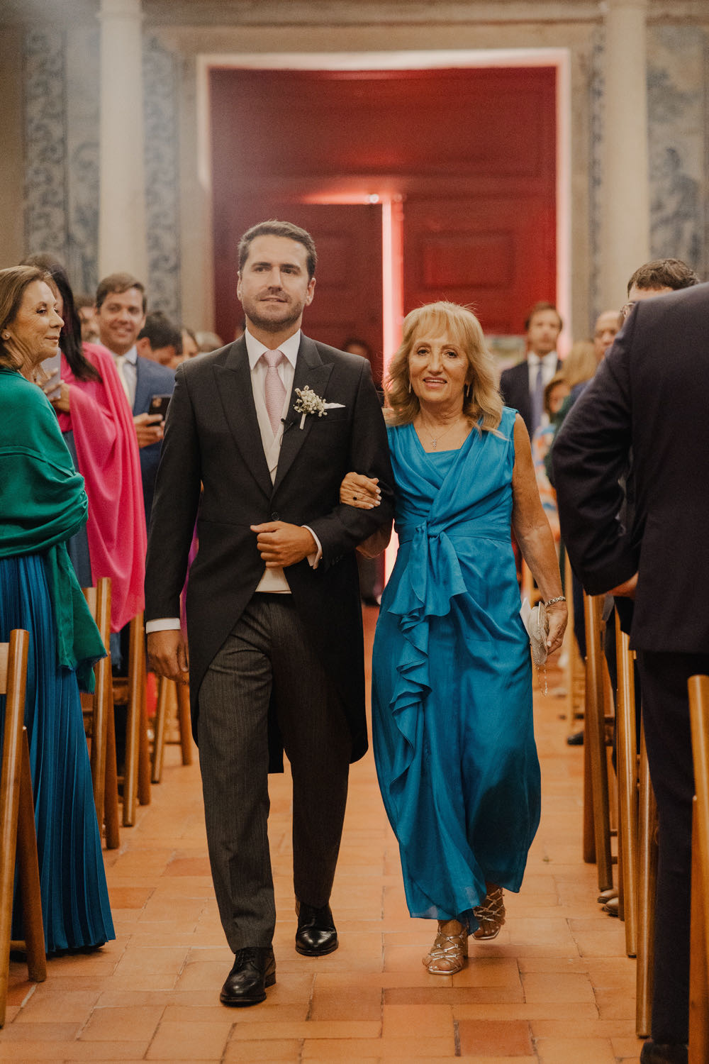 The ceremony was held at the Church of Sesimbra Castle (Castelo de Sesimbra). Perched high above the Atlantic, the setting is breathtaking. To do it justice, we utilized drone photography to capture the scale of the castle walls against the coastline. Inside, an orchestra filled the stone halls with a captivating musical atmosphere that made the “I dos” feel truly cinematic.