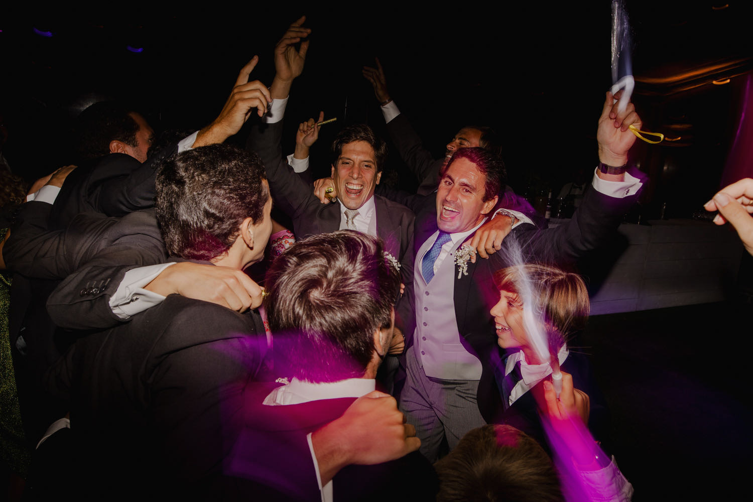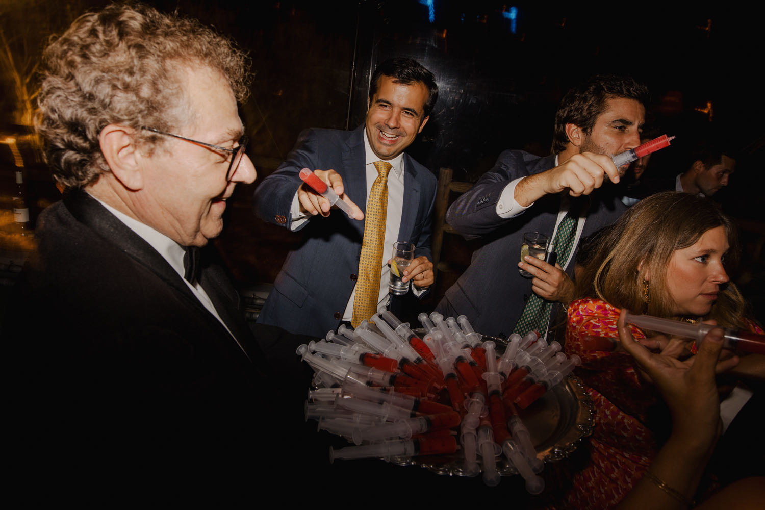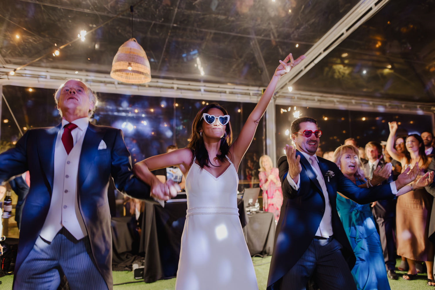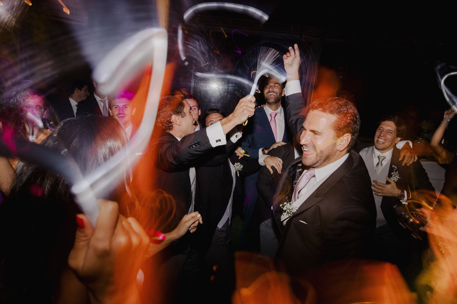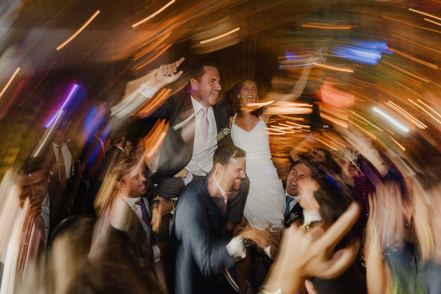 The transition to dinner was legendary. The couple led a parade of 30 guests into the tent, cutting through the darkness with a sea of LED lights. It was high-energy, high-impact, and totally unique.