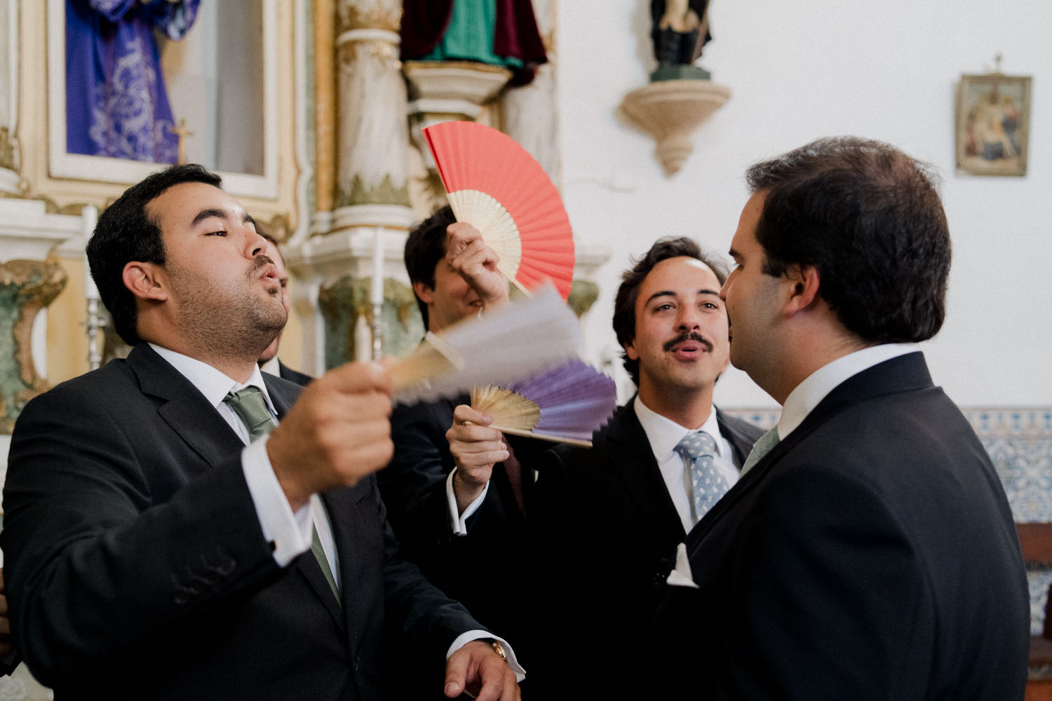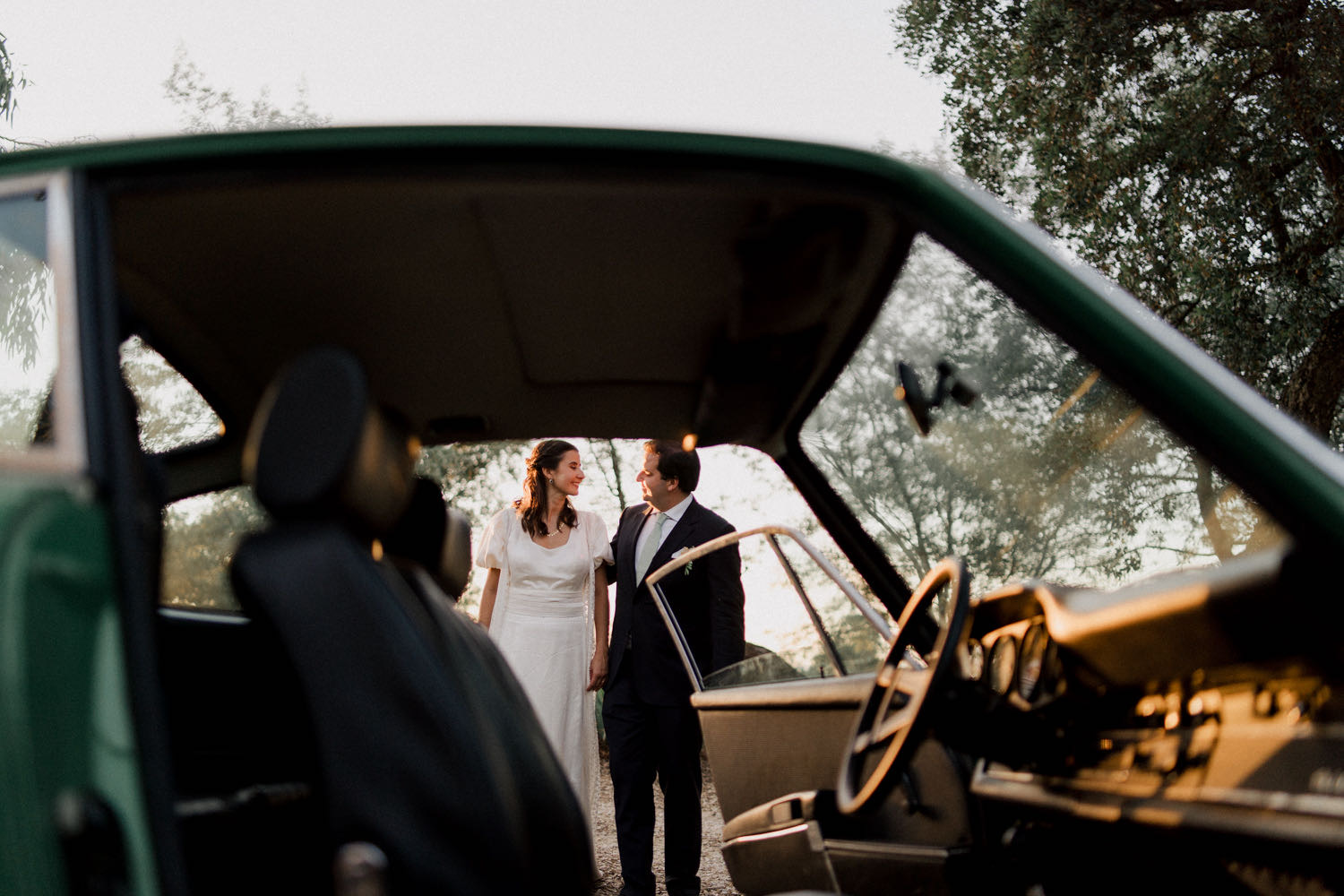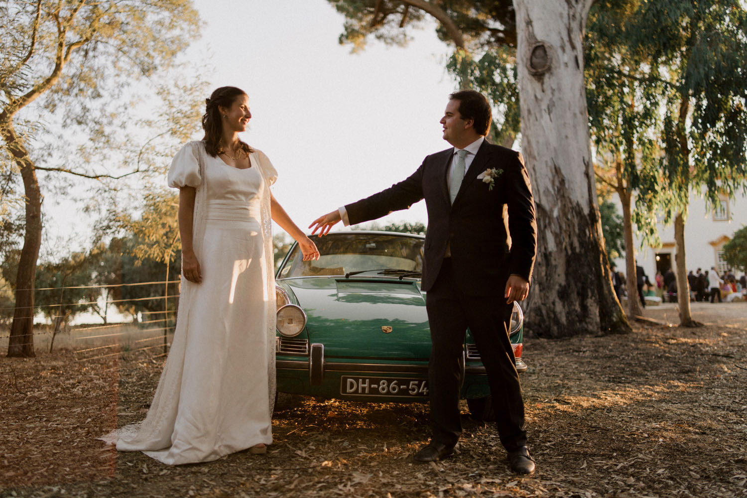 Meanwhile, José brought a different kind of tradition to the foreground. Arriving at the church in a sleek green Porsche, he paid tribute to his two great passions: high-performance cars and his team, Sporting Portugal. As a photographer, capturing these contrasting textures—delicate lace against polished automotive steel—is where the story really starts to breathe.
