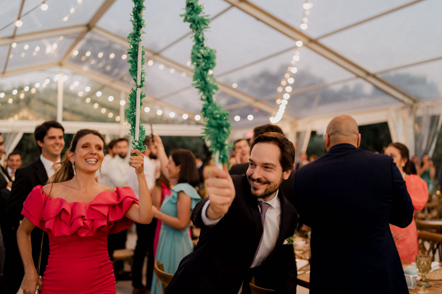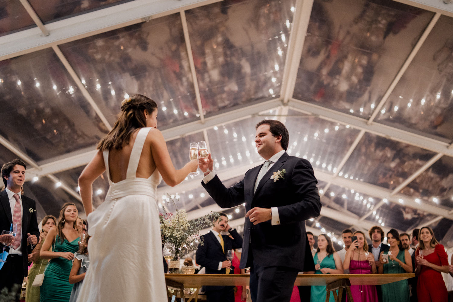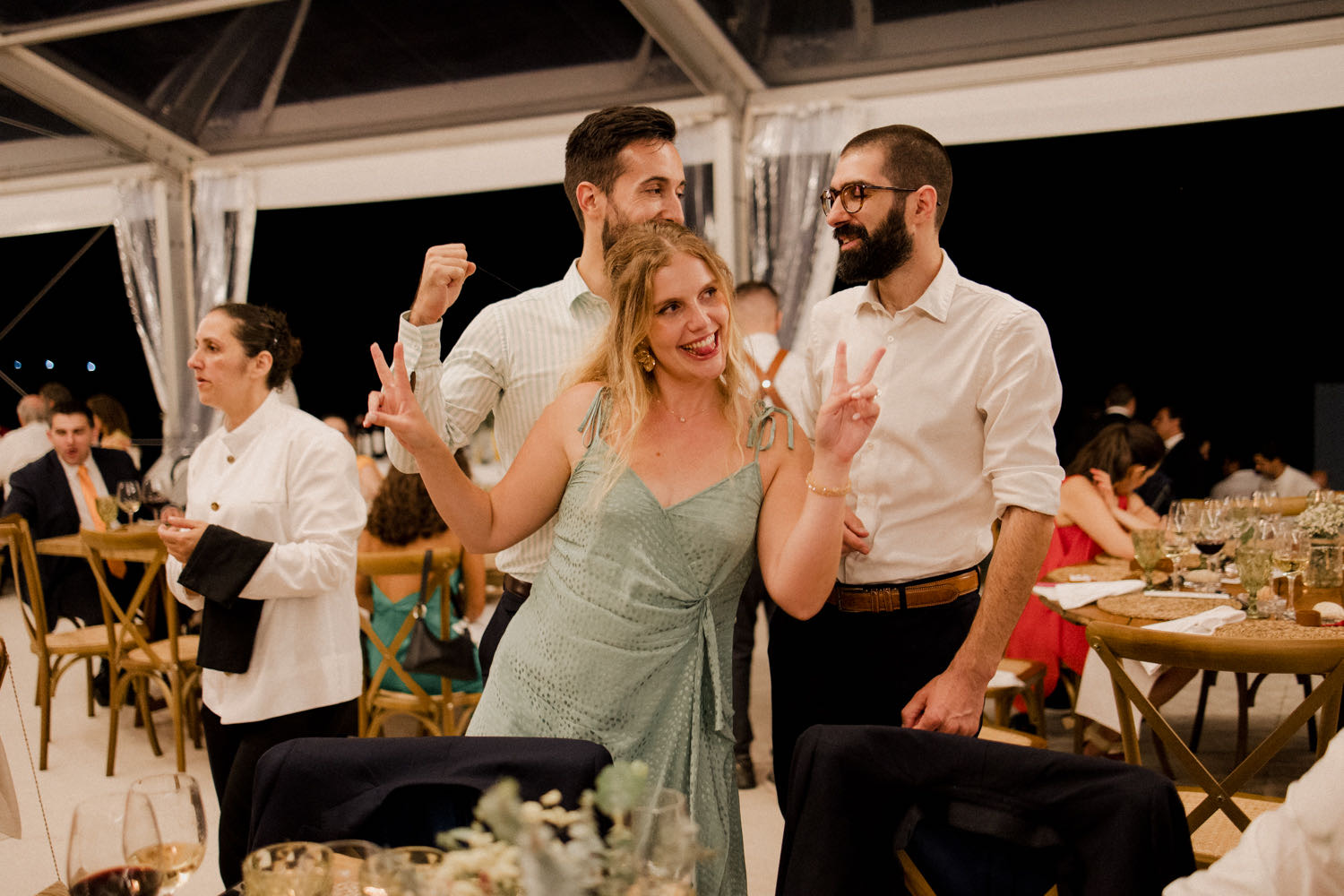 The reception at Quinta dos Ribeiros was anything but quiet. In a brilliant move to keep the energy high, each guest table had its own music, ensuring the atmosphere was electric throughout the entire dinner.