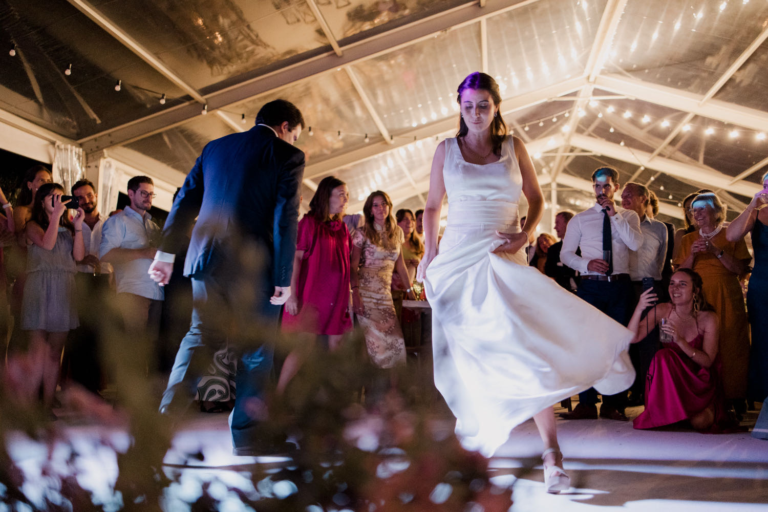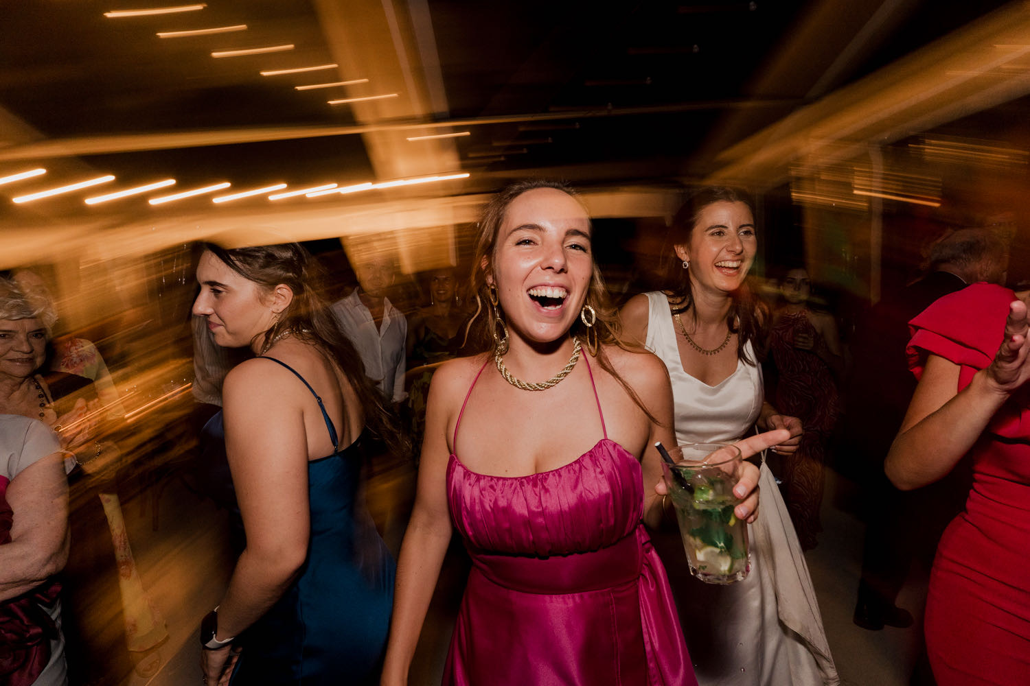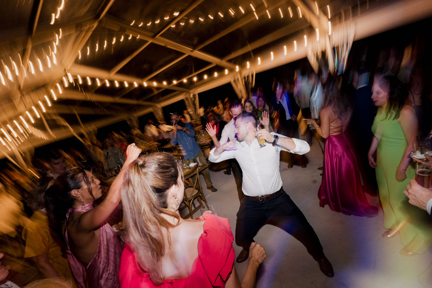 When it came time for the first dance, we opted for a “no-flash” approach. By embracing the dim, ambient light of the room, we captured a moment that felt mysterious, romantic, and incredibly intimate. It was a beautiful “calm” before the “madness” of the final party took over.