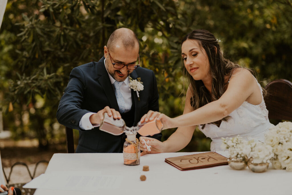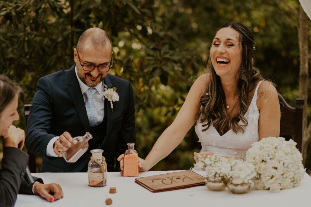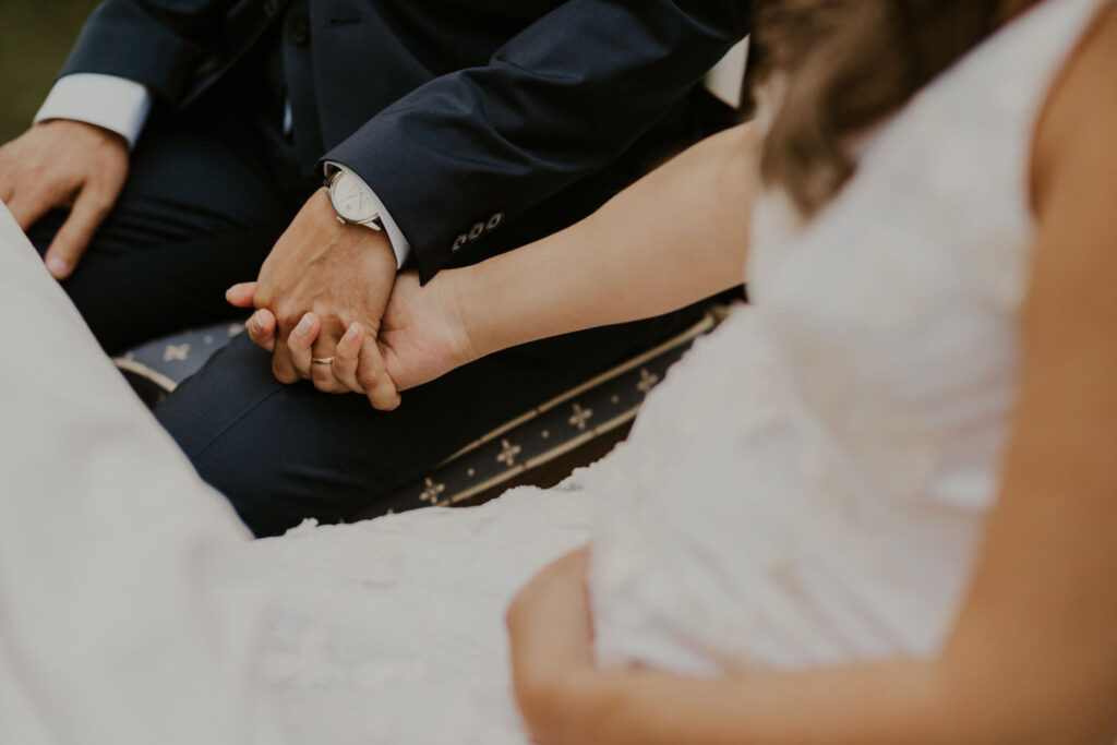 Karstyn exuded elegance and happiness on her wedding day, even while being pregnant. Her genuine beauty and radiant smile illuminated every moment, making her truly stunning in the eyes of all present. An example of serenity and grace, she embodied the essence of love and motherhood in its purest form. This wedding was marked by a mega-relaxed atmosphere, where every detail was carefully planned to reflect the couple’s personality. The symbolic sand ceremony added a touch of profound meaning, representing the union of two souls on one path. This intimate and emotional moment was a testament to the enduring and committed love of Karstyn and Ricardo.