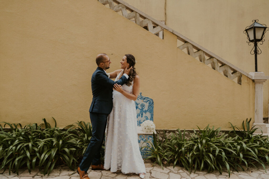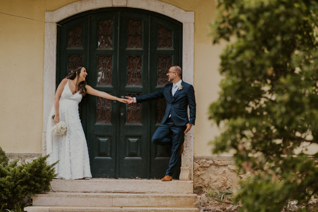 Despite the small number of guests, the party was full of joy and contagious energy. Everyone came together to celebrate the love, dancing to the live band’s music that created a vibrant and thrilling atmosphere. Laughter echoed through the gardens of Quinta do Lumarinho as guests shared moments of happiness and camaraderie. The moment of cutting the cake was truly magical, with sparkles illuminating the surroundings and adding an extra glow to the celebration. But the highlight was the special bride adorning the top of the cake, representing the unique and unbreakable love of Karstyn and Ricardo. This simple yet meaningful gesture symbolized eternal commitment and shared happiness between the two.