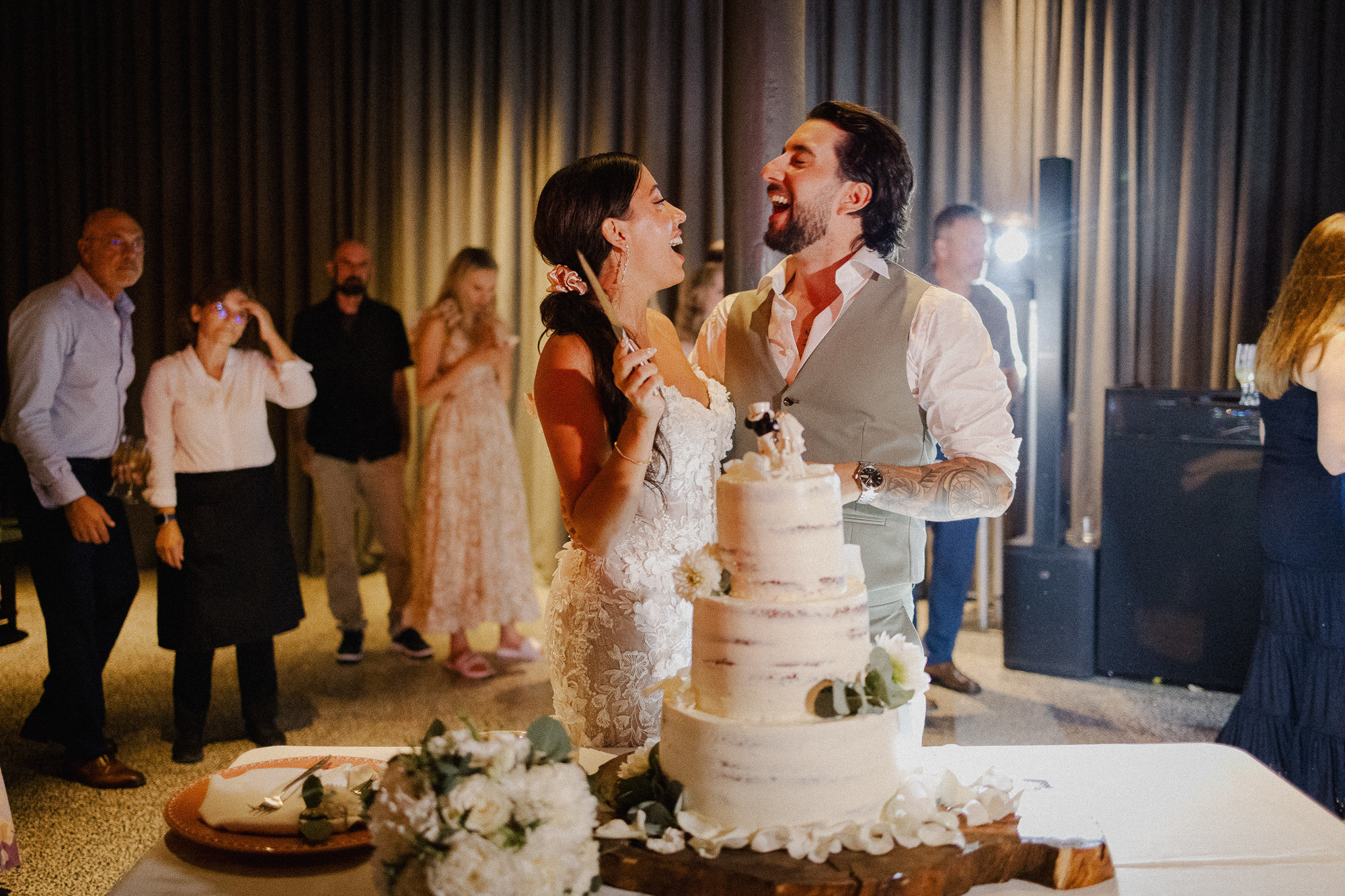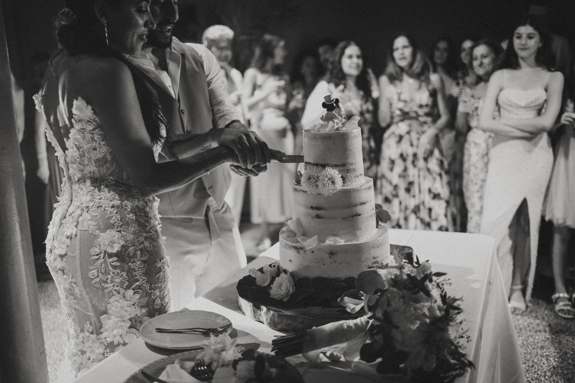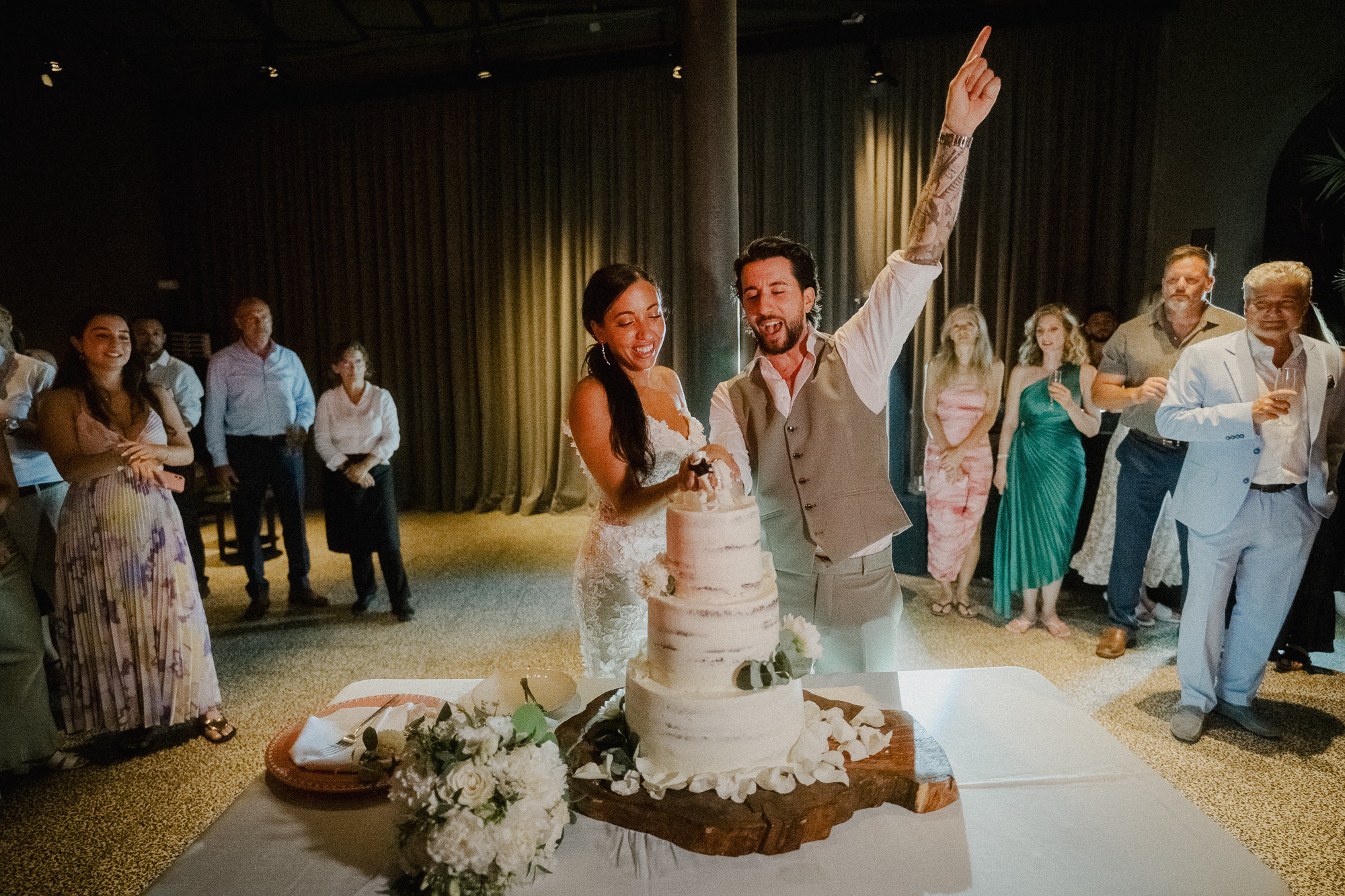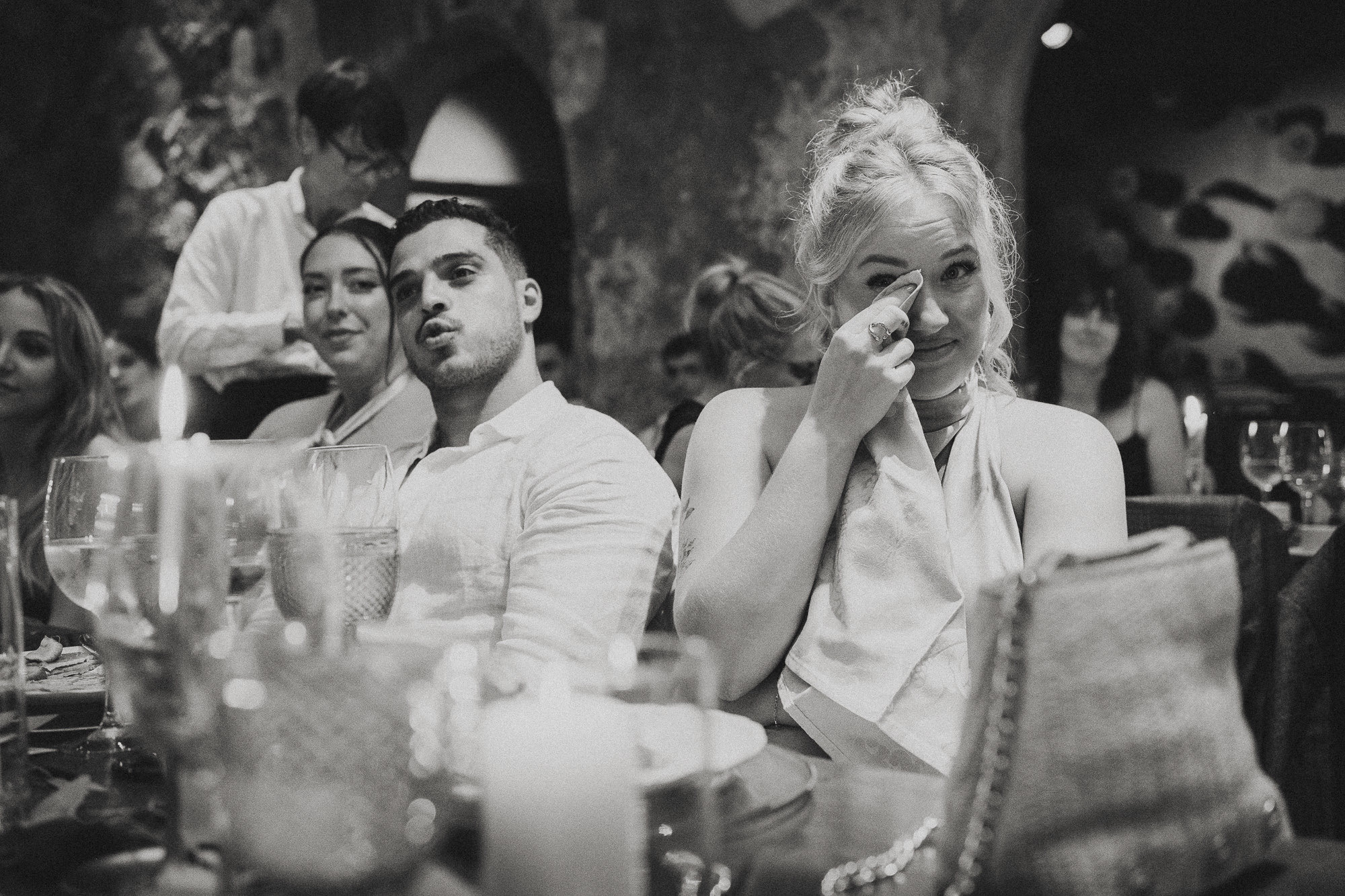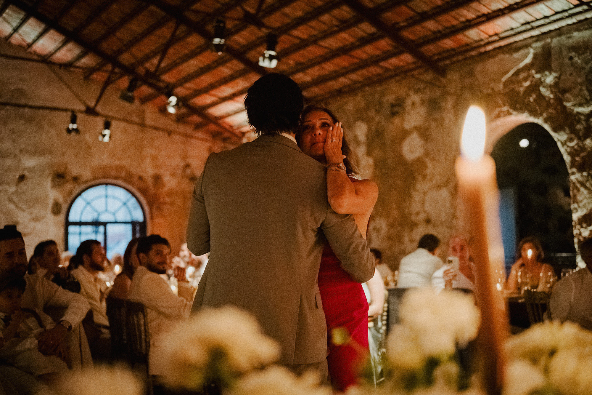The ceremony was rich with meaning — heartfelt speeches, layered emotion, and a strong sense of presence. What followed broke from expectation: a first dance held immediately after entering the dinner space, wrapped in darkness and atmosphere. Rather than shaping the moment, it was allowed to exist exactly as it was — raw, cinematic, and deeply felt.