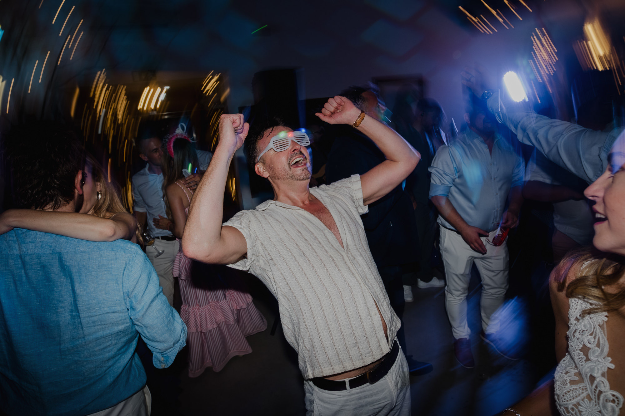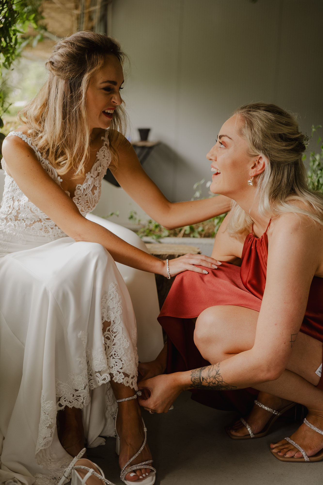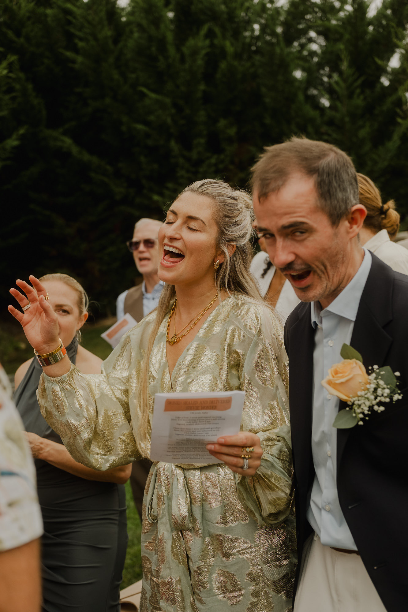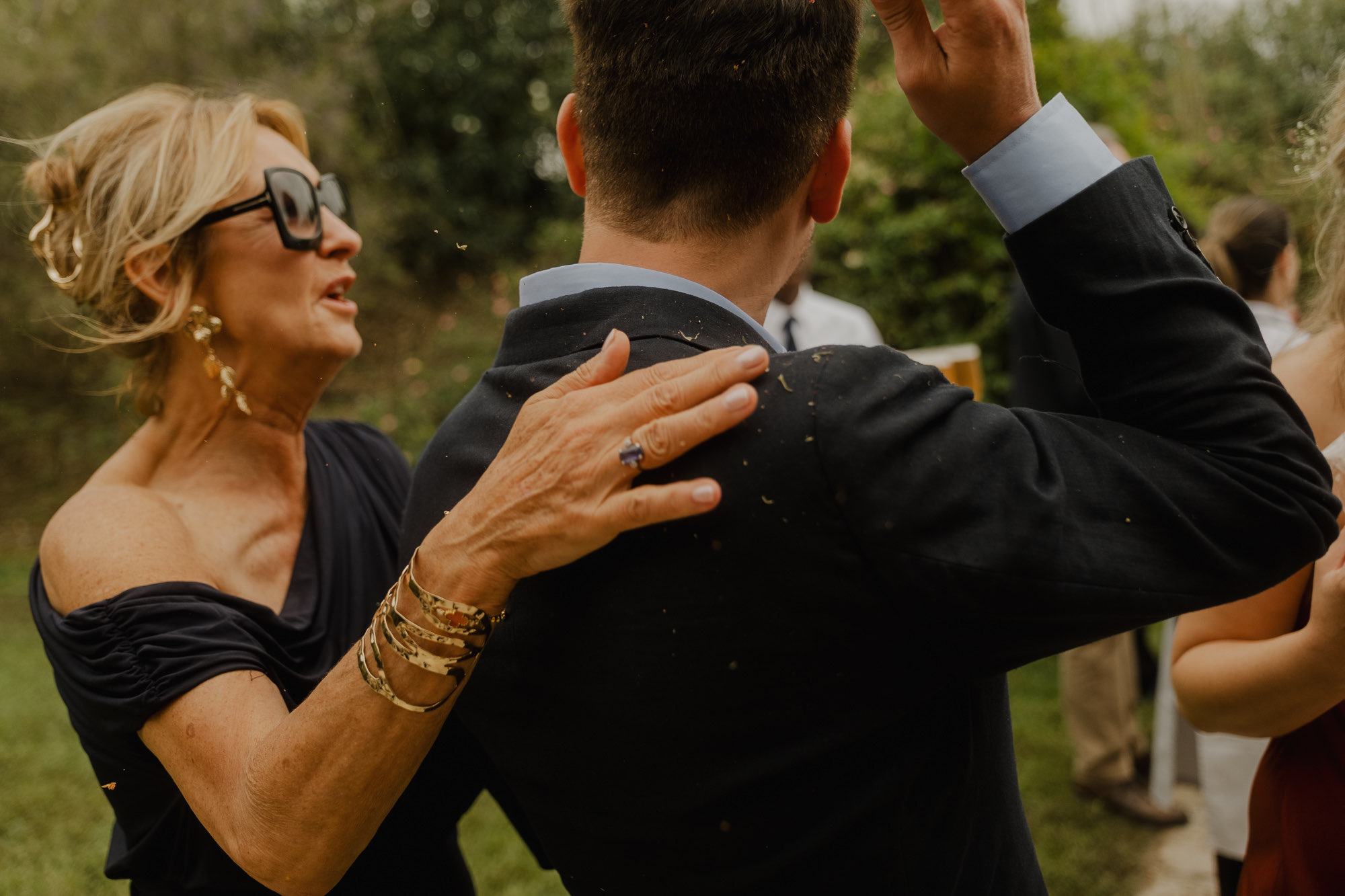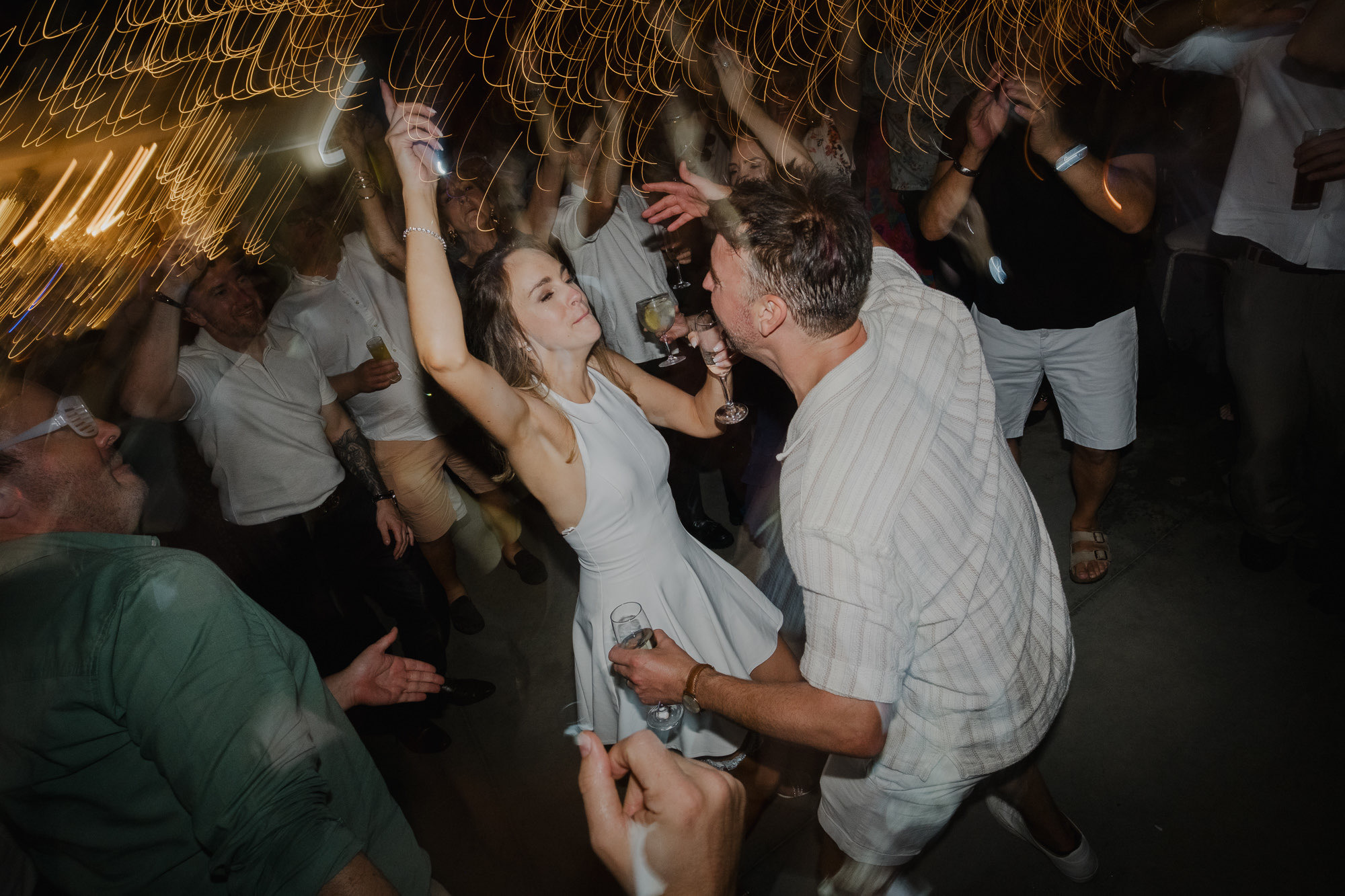 Nothing about this wedding followed a script — and that was the point. Preparations were unhurried, portraits happened quickly and naturally, and the ceremony embraced humour and surprise. Sunglasses, drinks in hand, songs sung by everyone present — moments were lived fully instead of being managed.