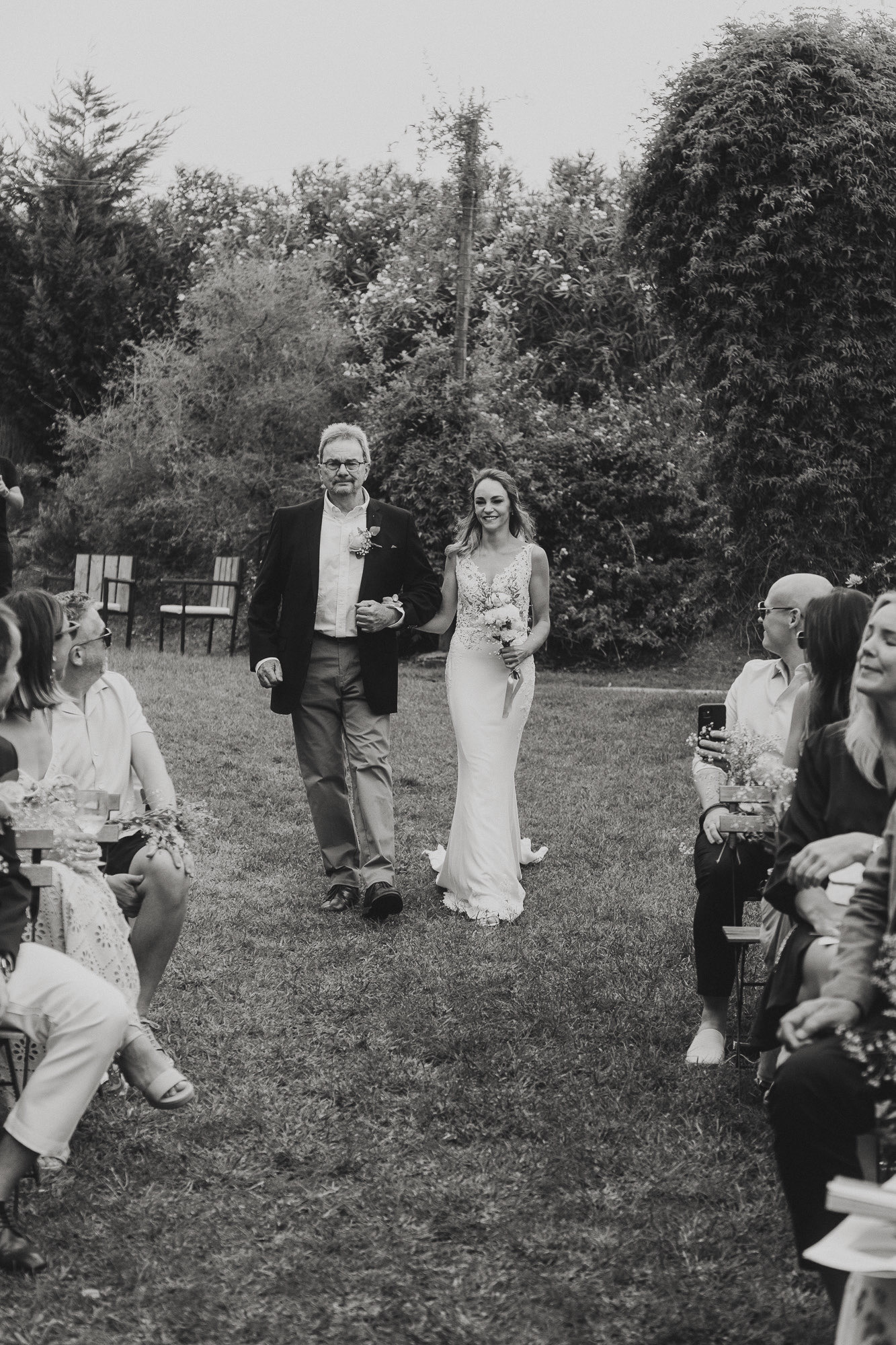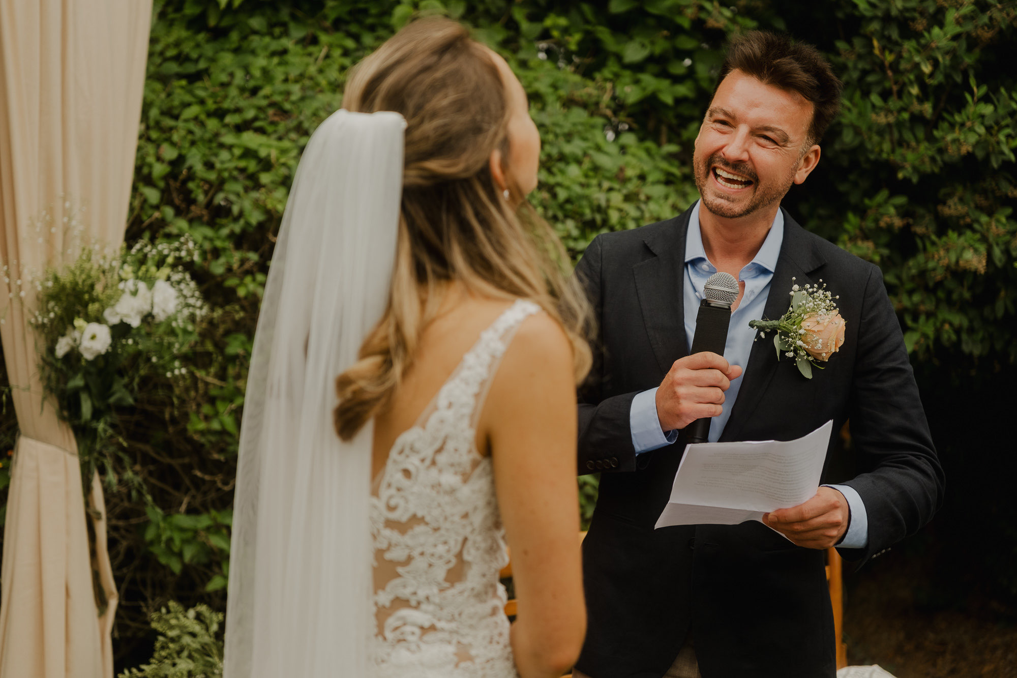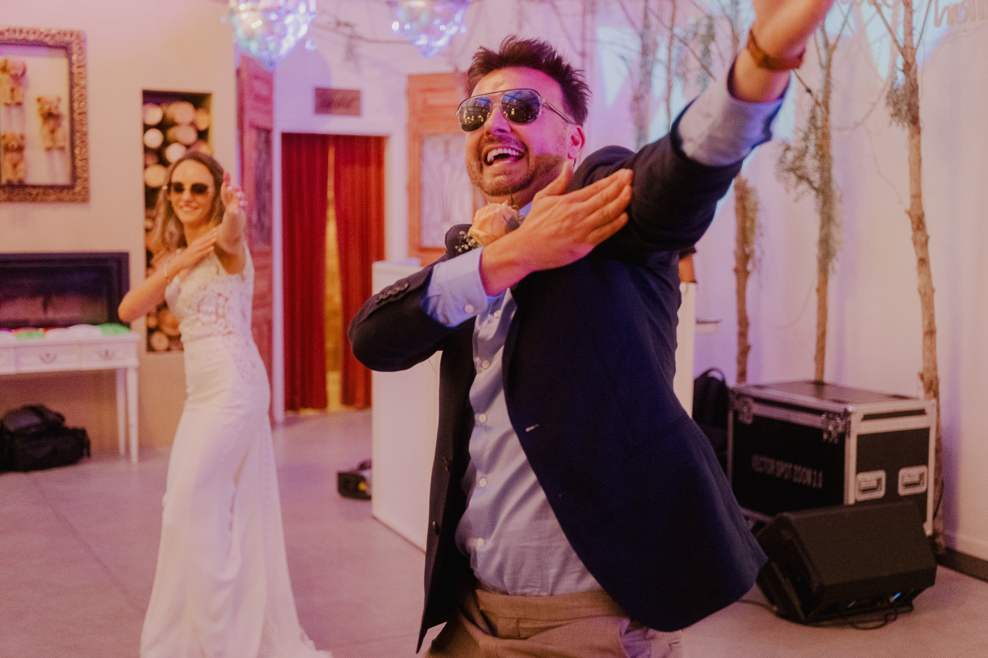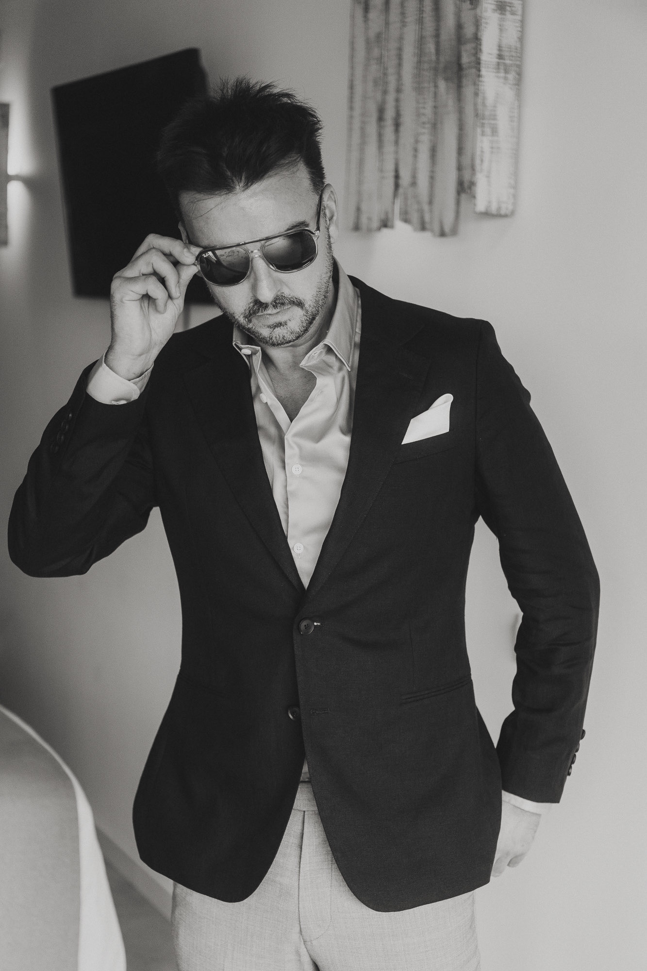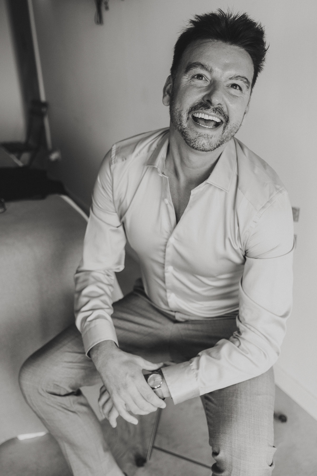 Nothing about this wedding followed a script — and that was the point. Preparations were unhurried, portraits happened quickly and naturally, and the ceremony embraced humour and surprise. Sunglasses, drinks in hand, songs sung by everyone present — moments were lived fully instead of being managed.