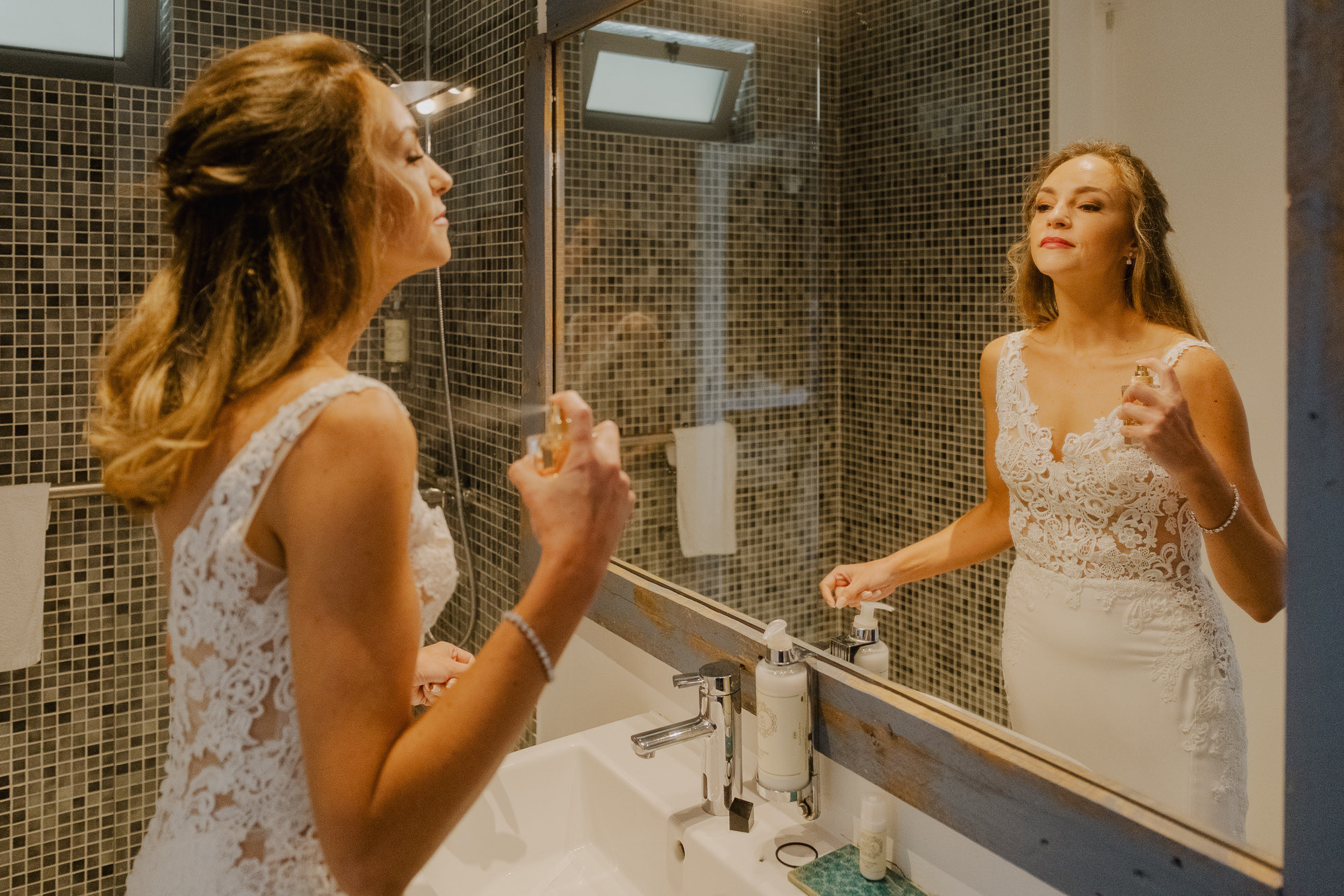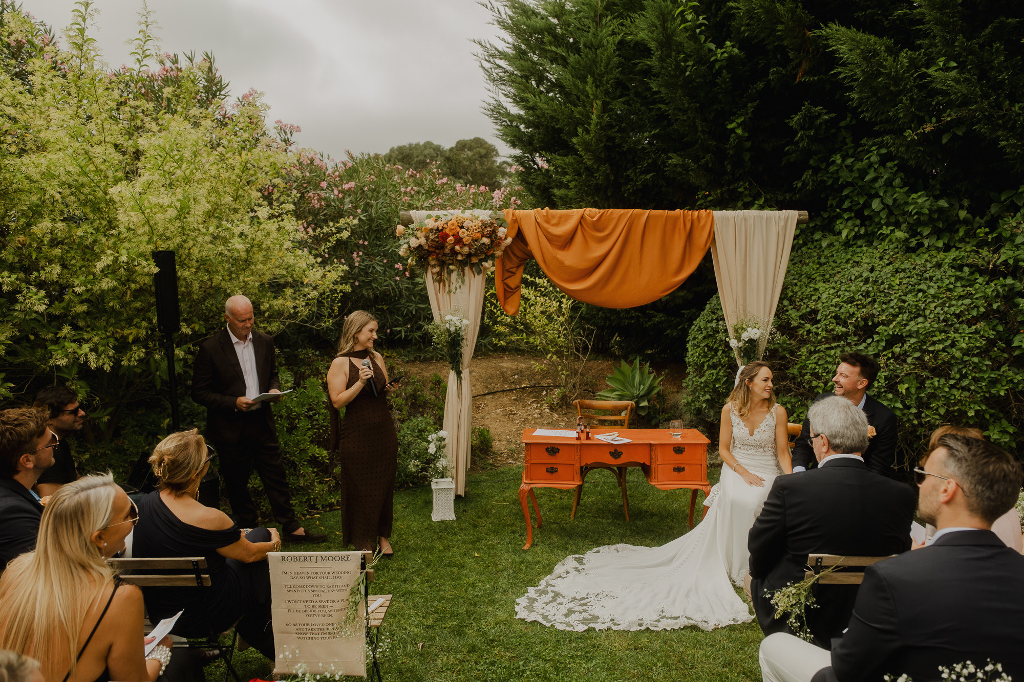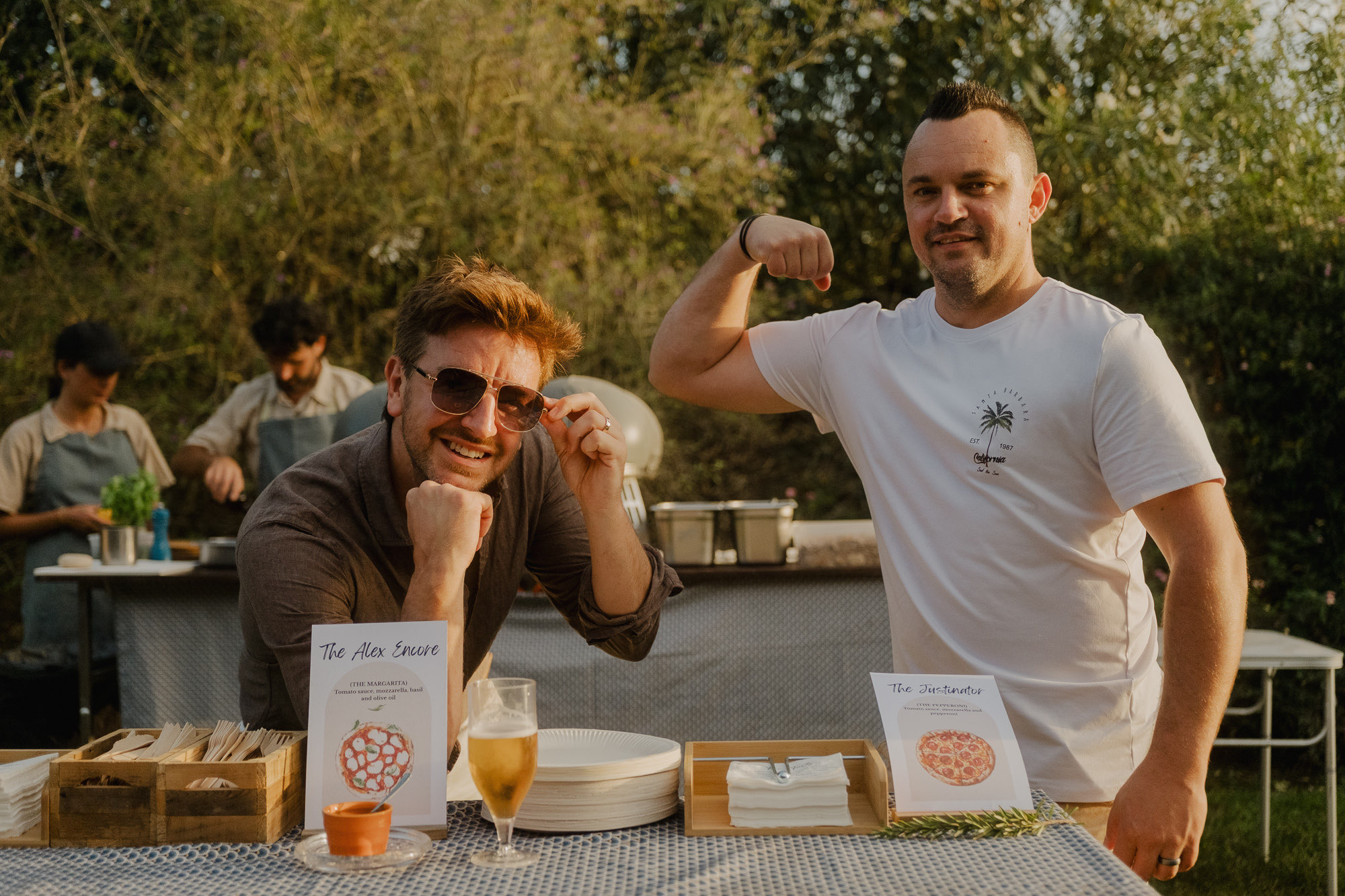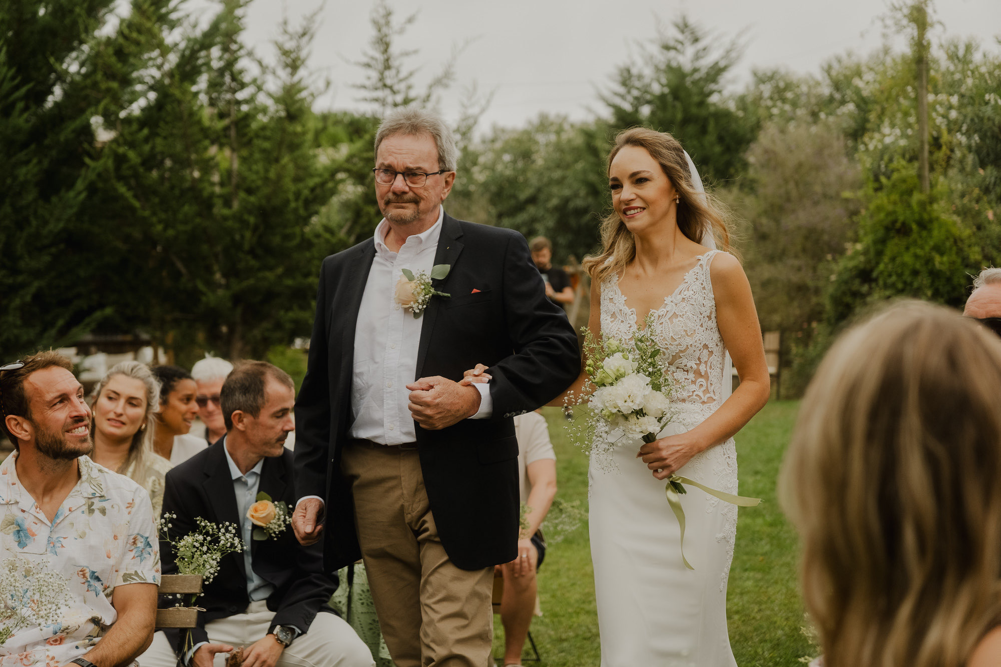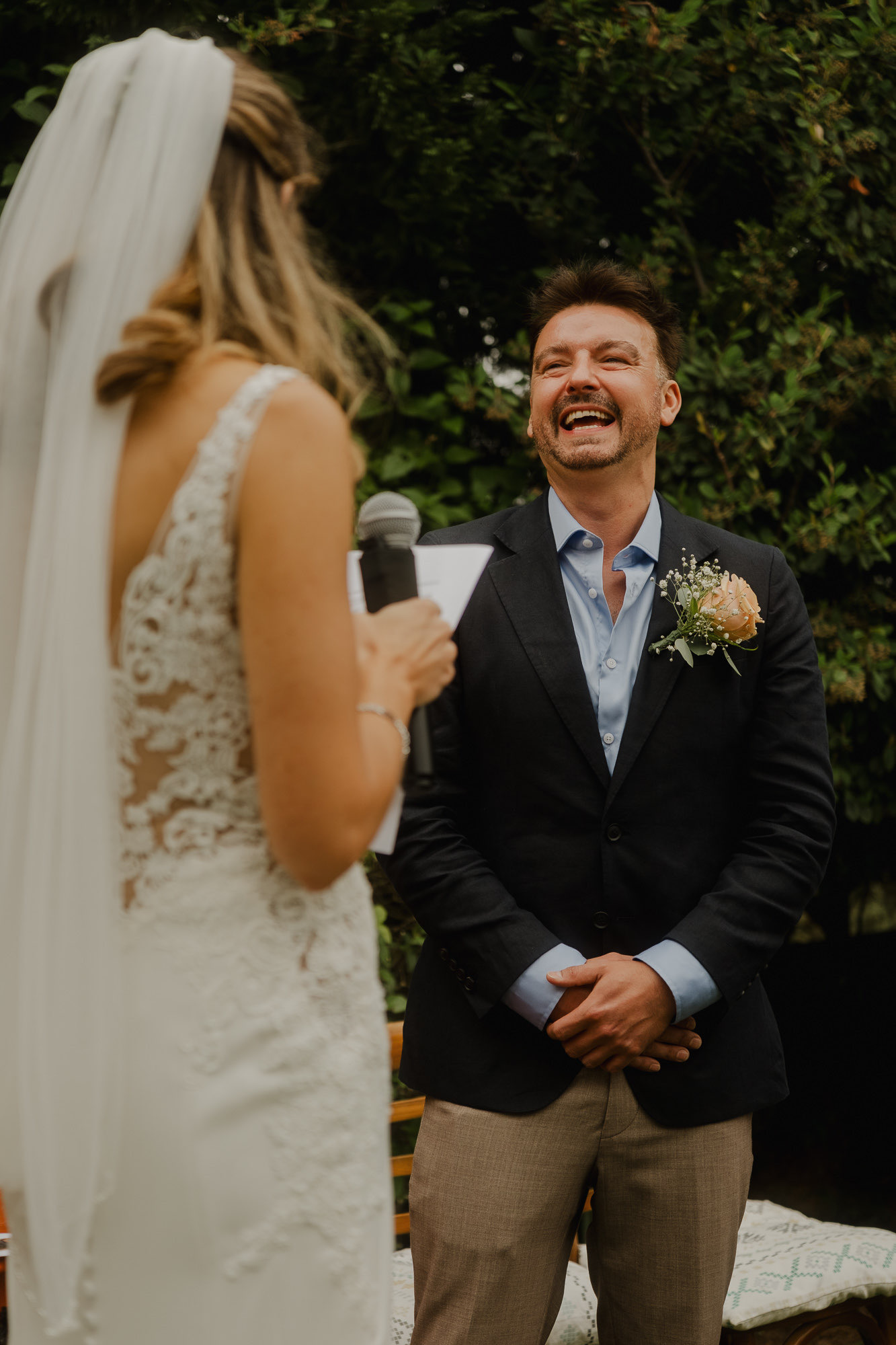Nothing about this wedding followed a script — and that was the point. Preparations were unhurried, portraits happened quickly and naturally, and the ceremony embraced humour and surprise. Sunglasses, drinks in hand, songs sung by everyone present — moments were lived fully instead of being managed.
