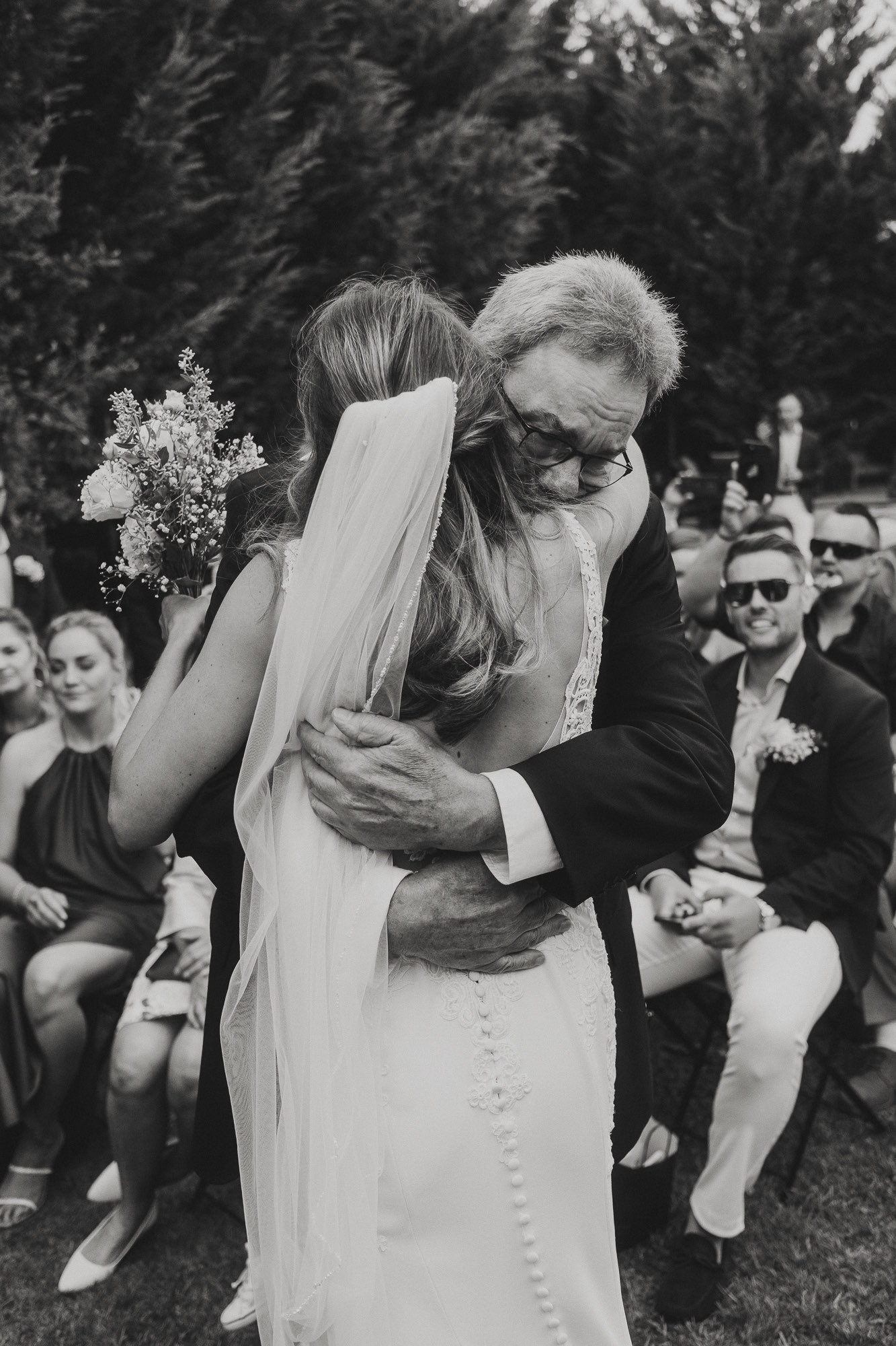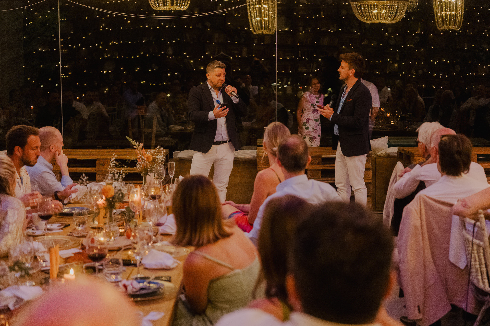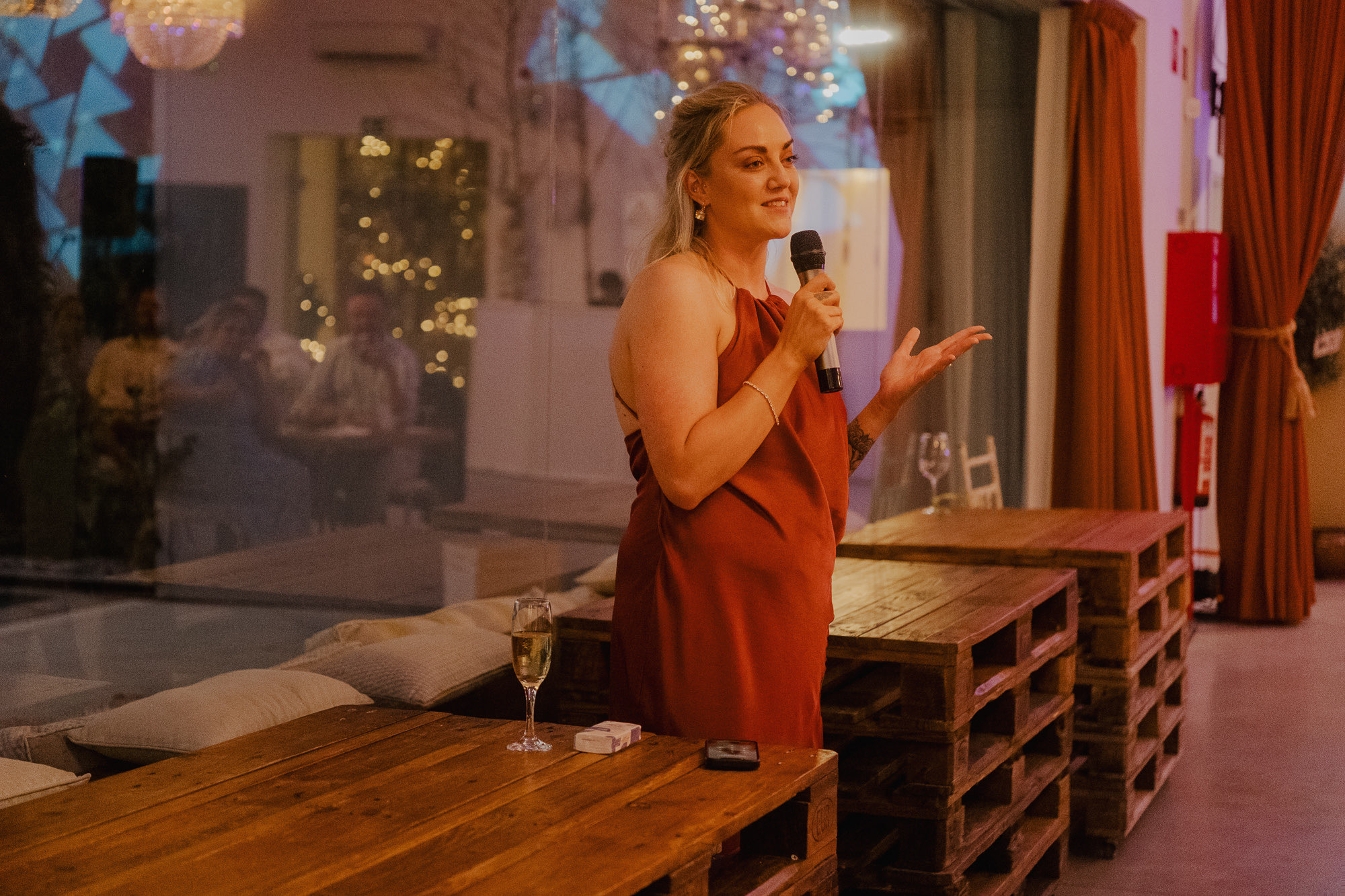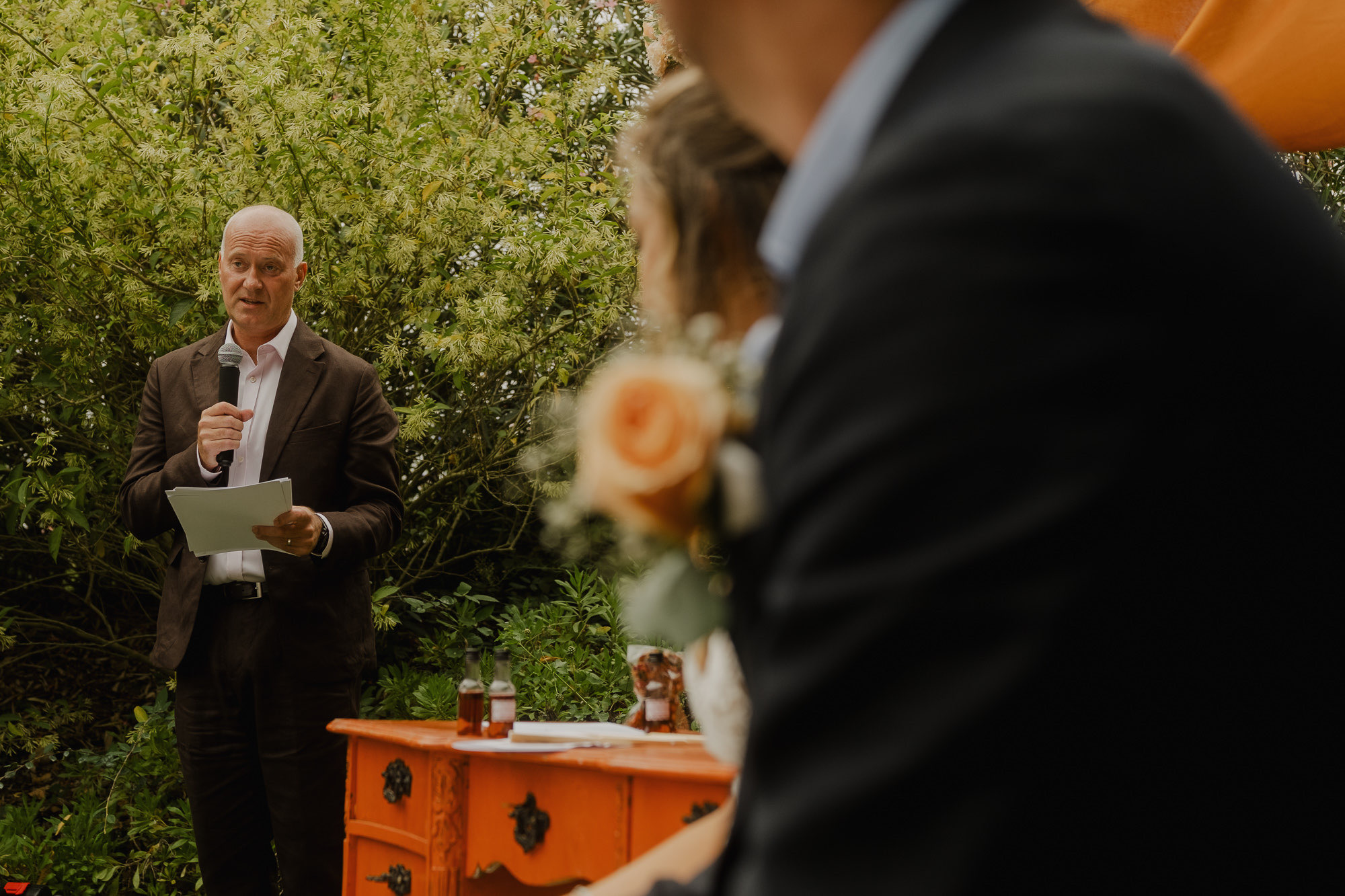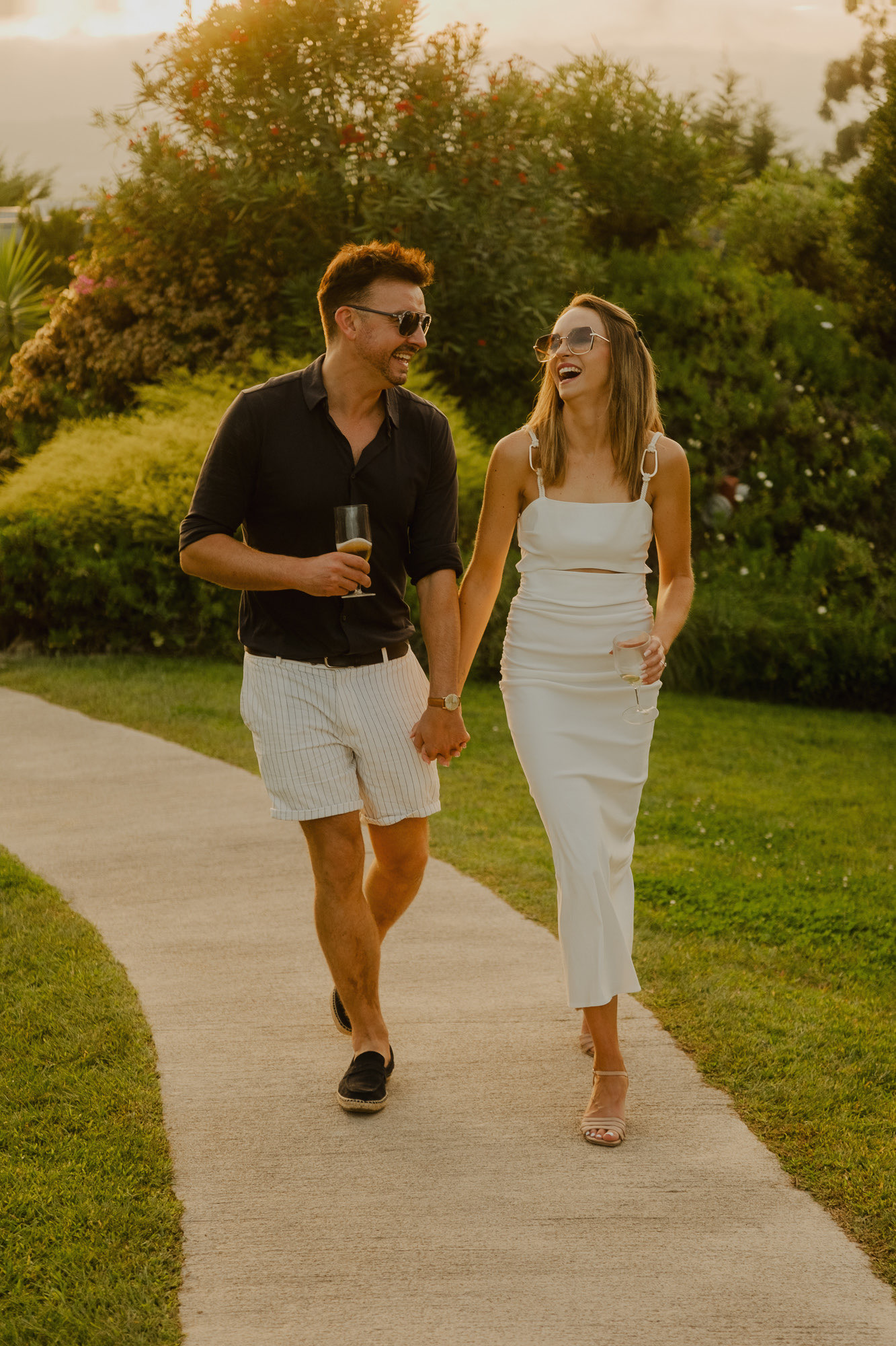 Nothing about this wedding followed a script — and that was the point. Preparations were unhurried, portraits happened quickly and naturally, and the ceremony embraced humour and surprise. Sunglasses, drinks in hand, songs sung by everyone present — moments were lived fully instead of being managed.