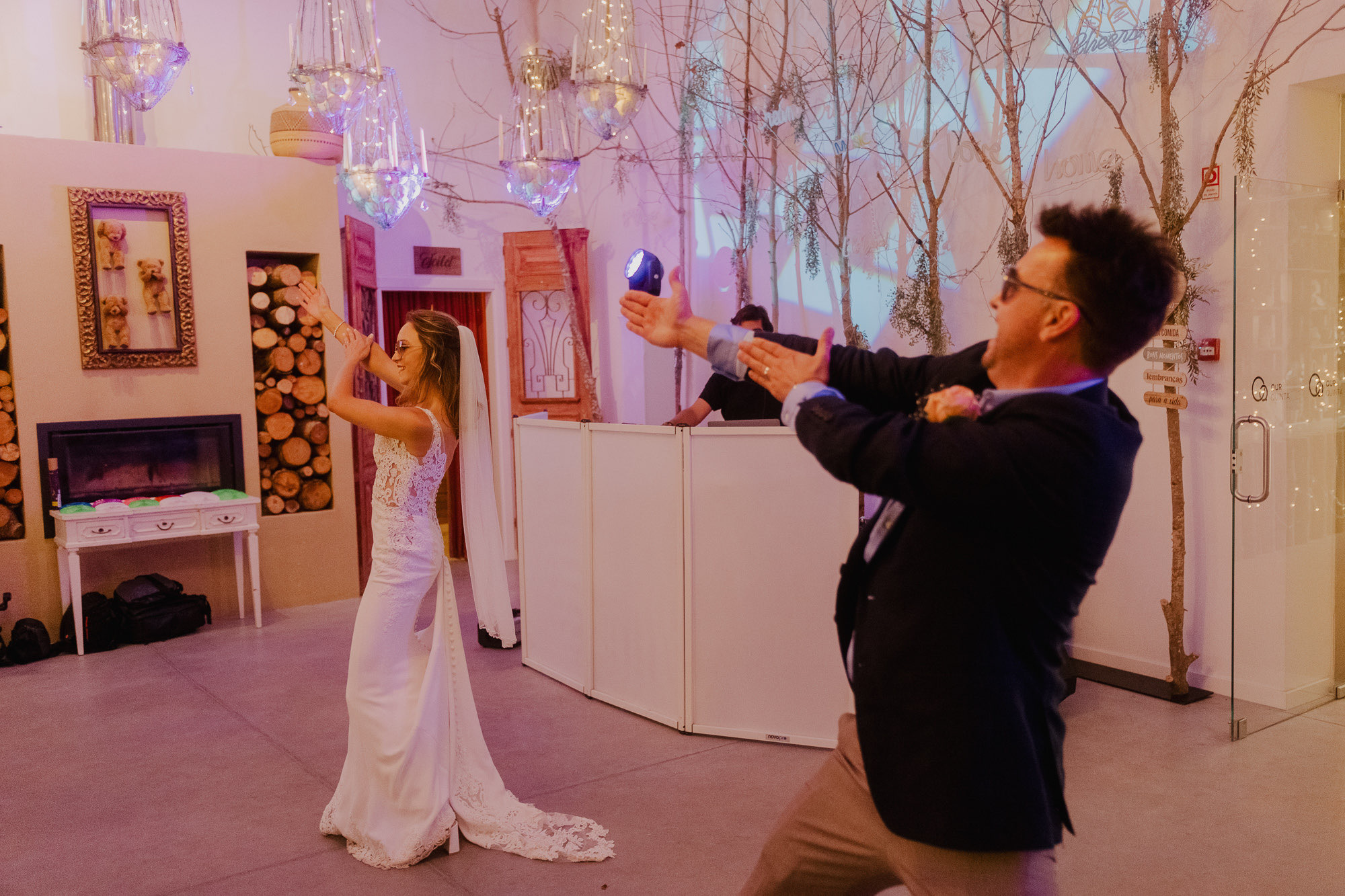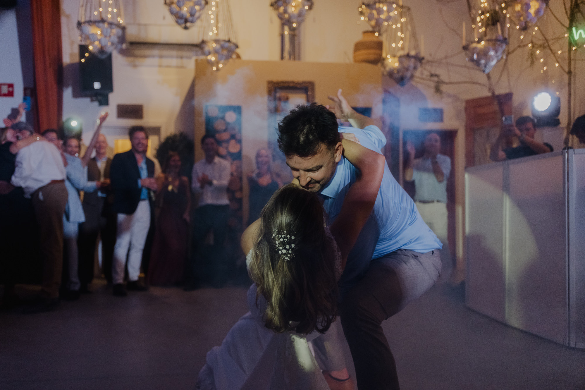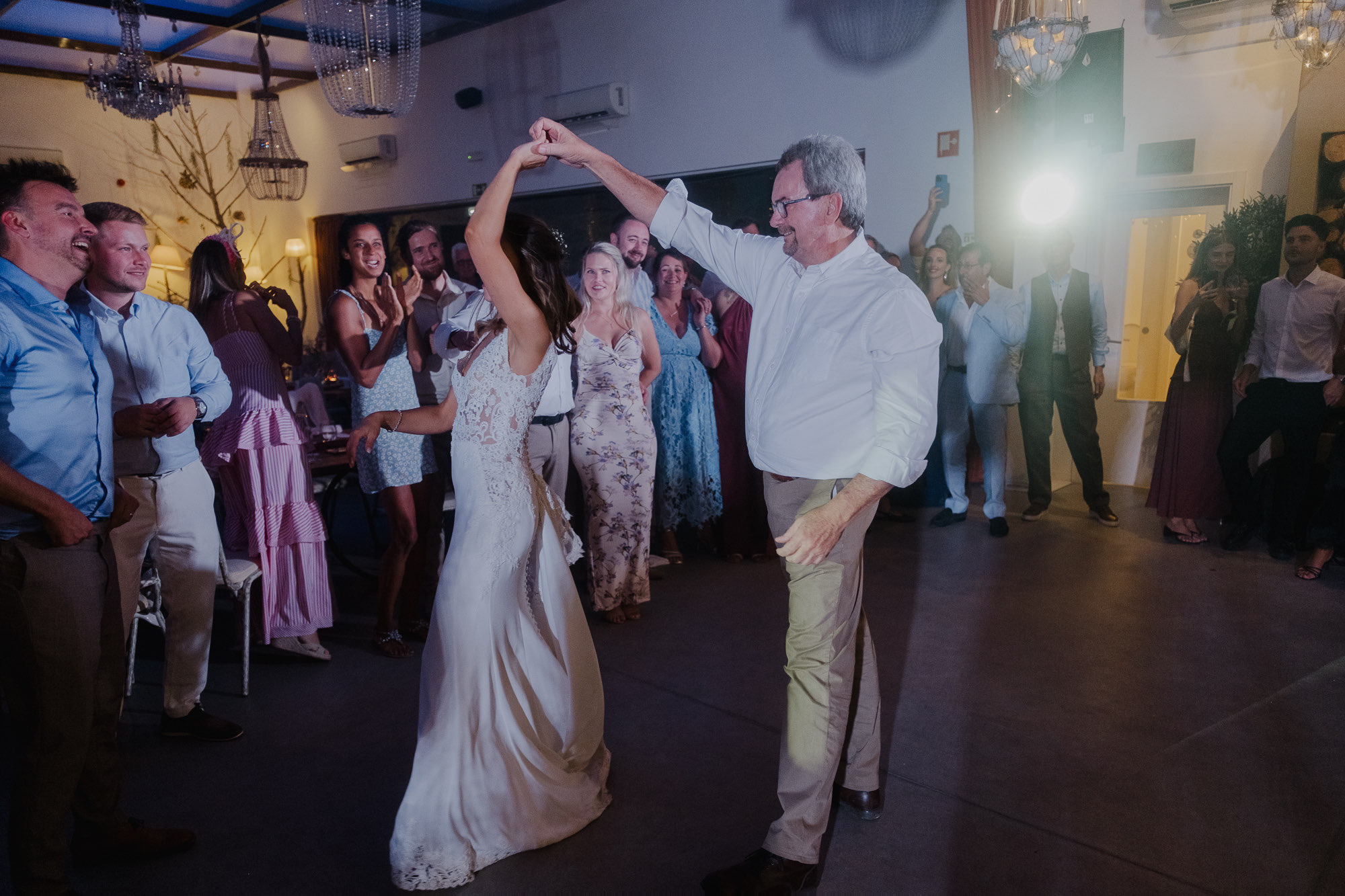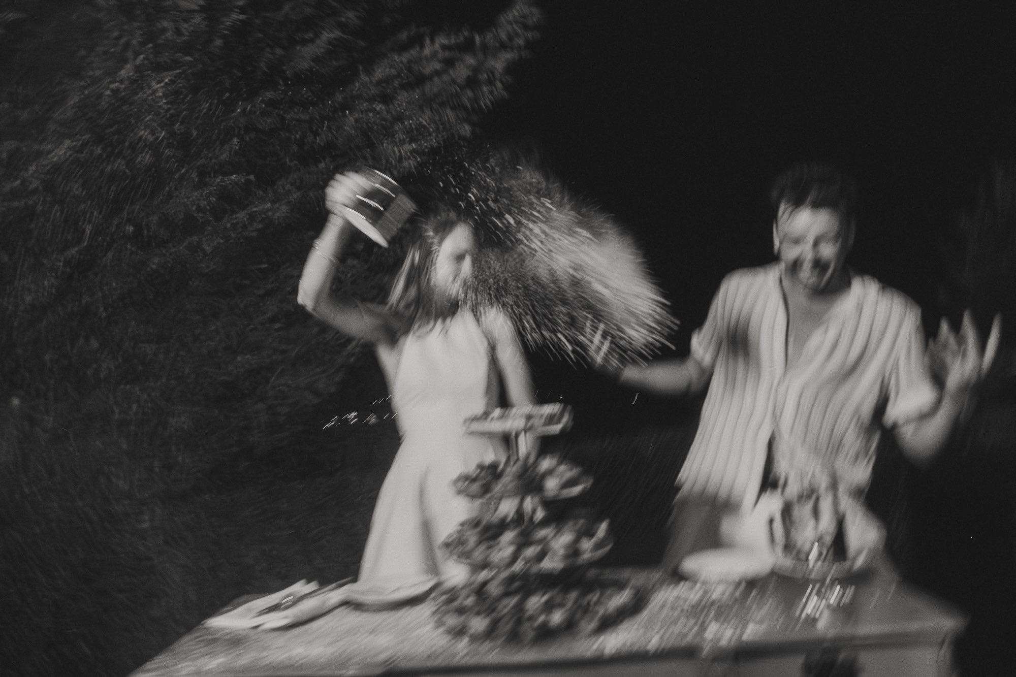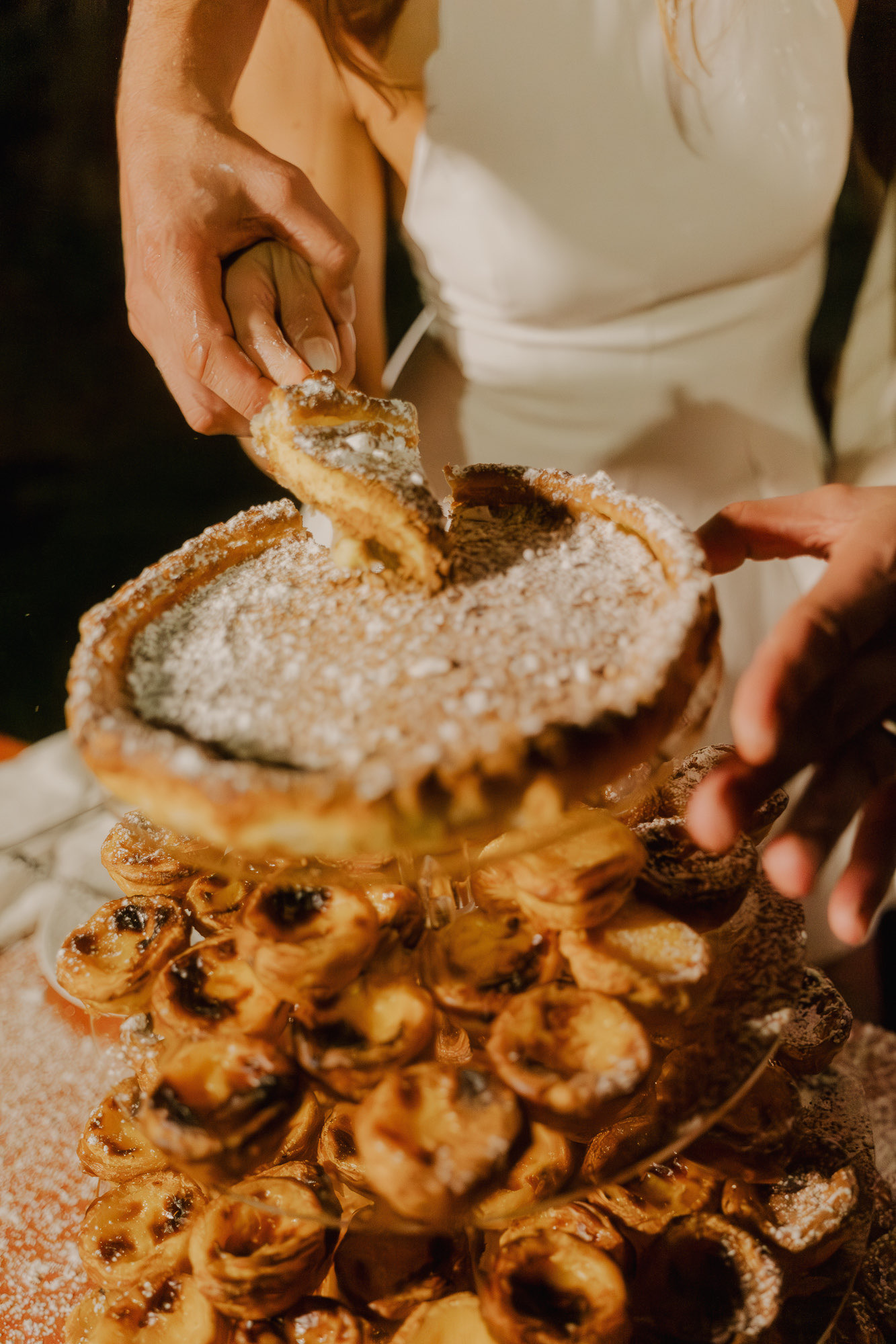 As the evening arrived, the celebration shifted into pure movement and release. The cake — made of traditional pastéis de nata — became part of the dance floor rather than a formality. Sugar icing flew, bodies moved, and joy took over. These are the moments documentary coverage exists for: real, imperfect, and impossible to recreate.