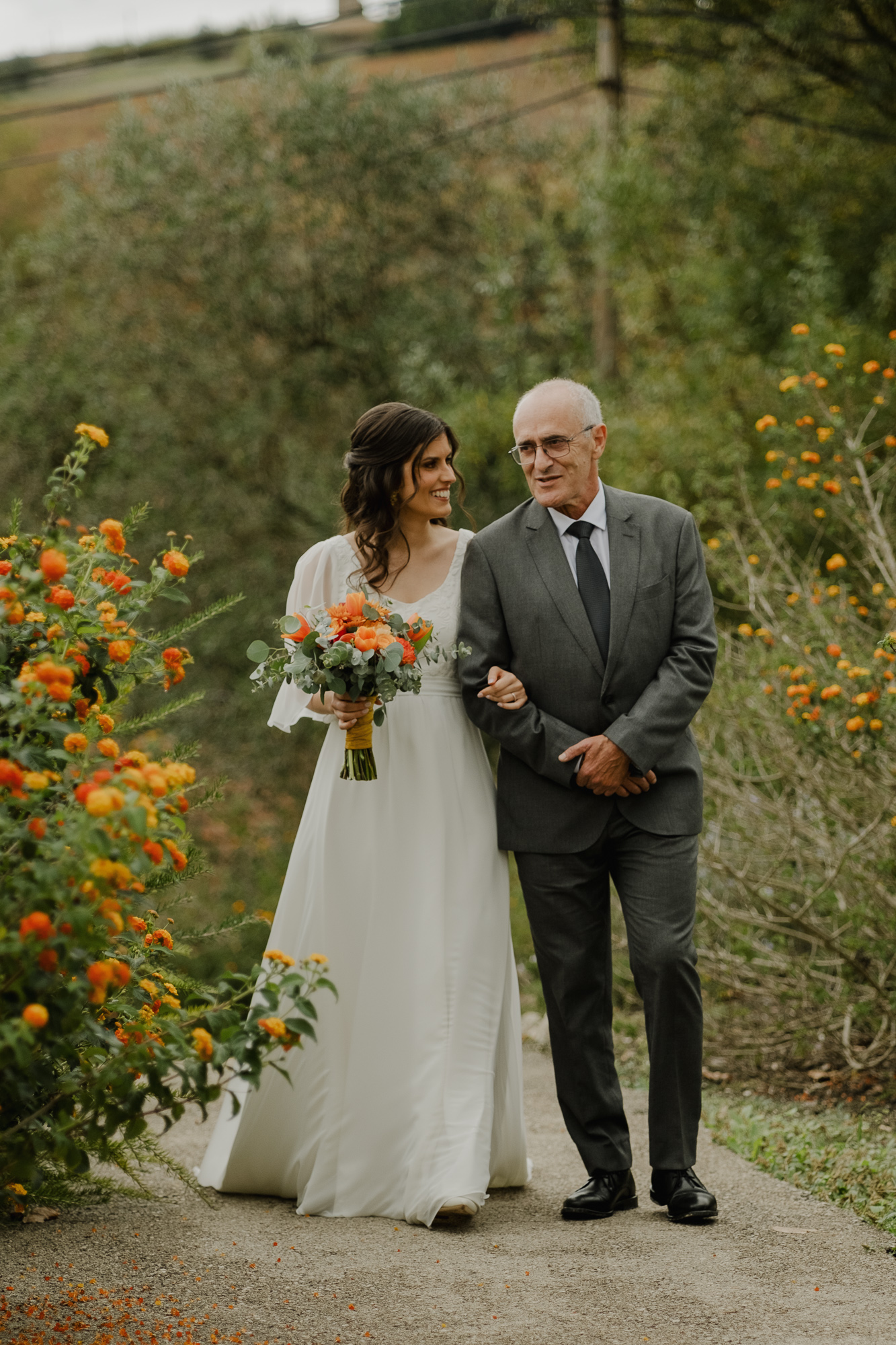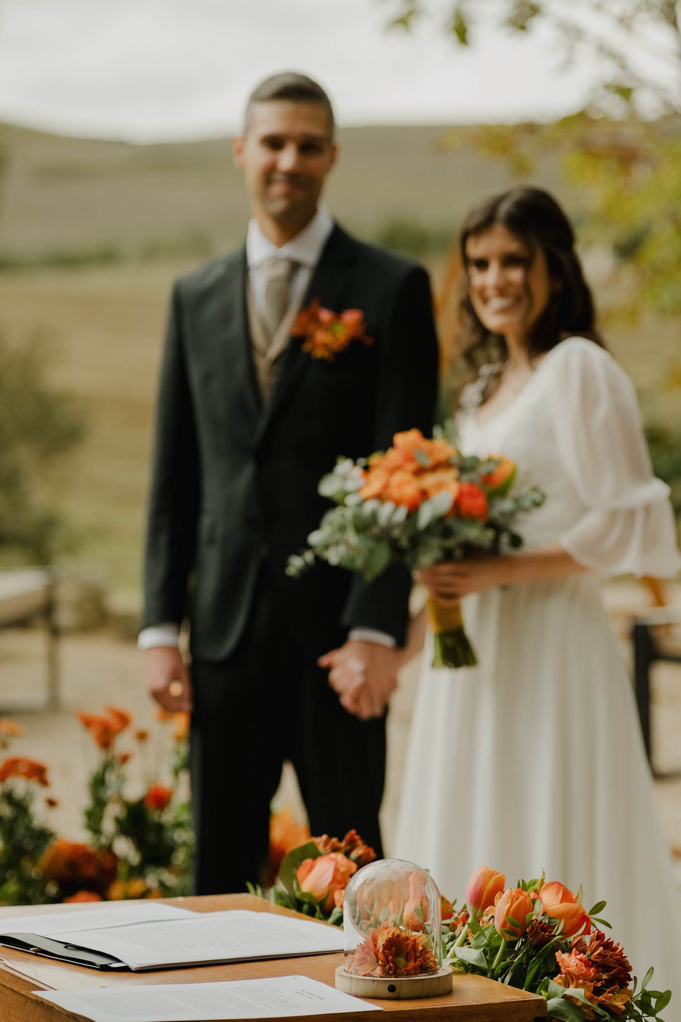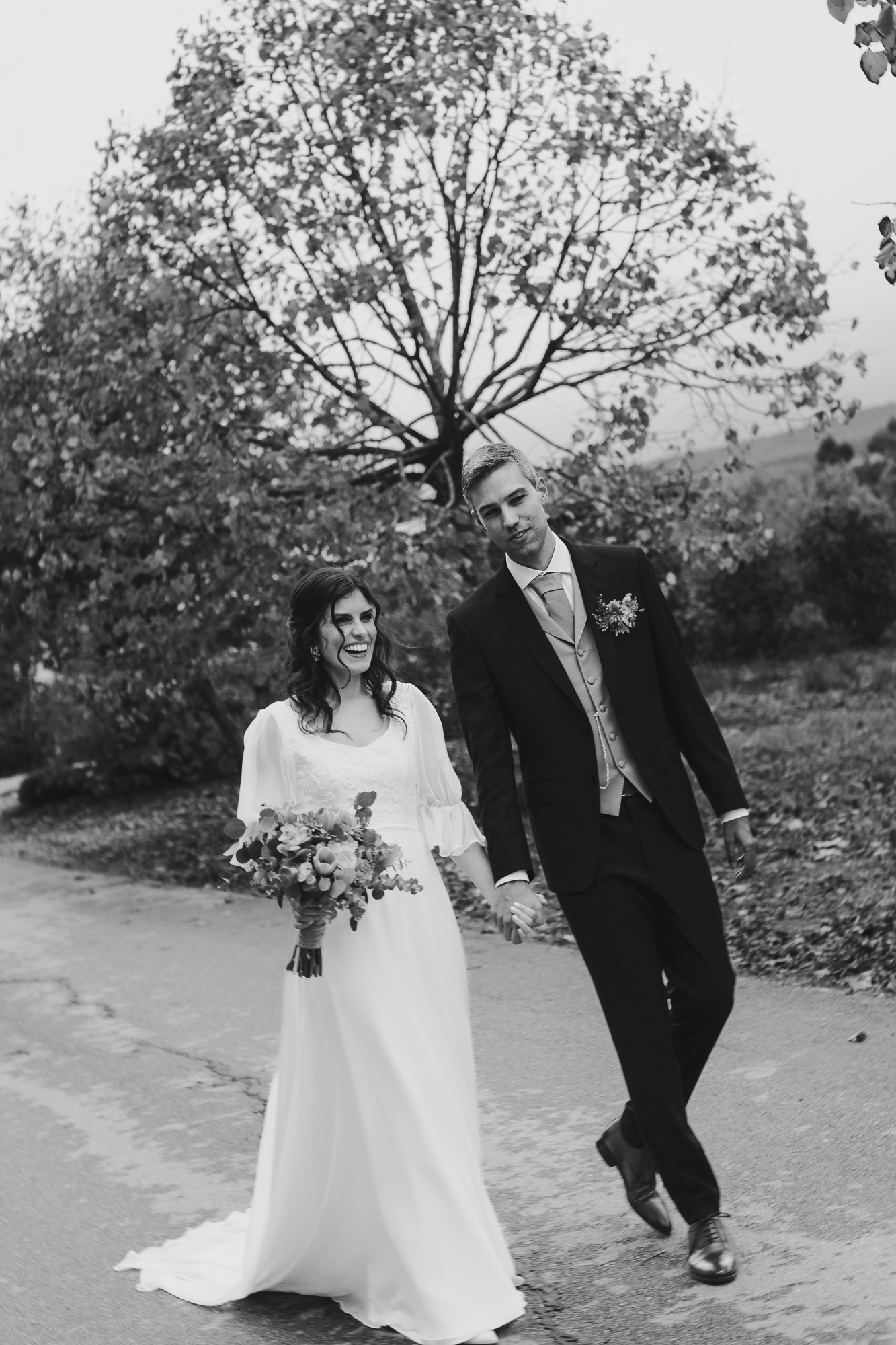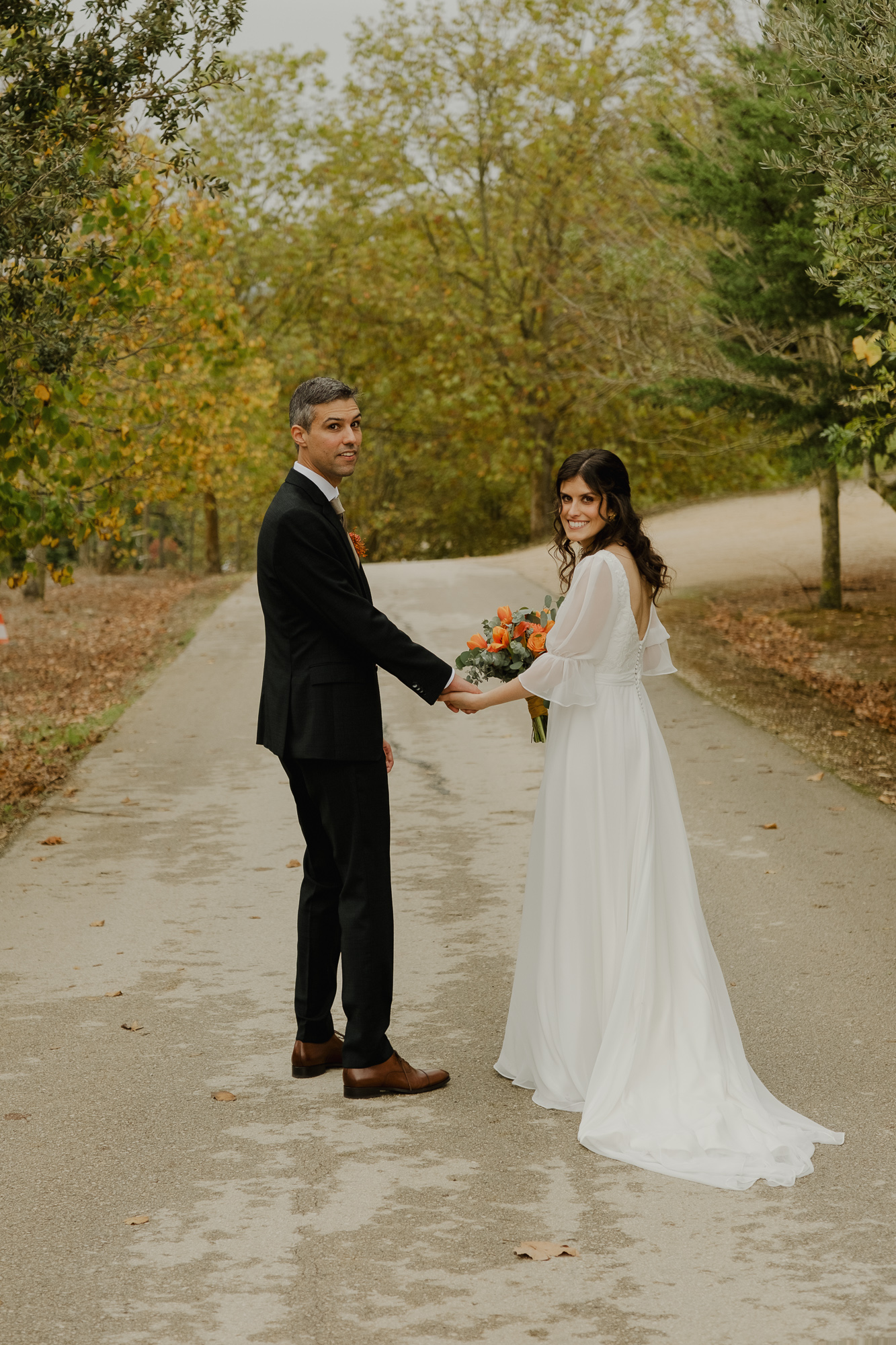 This October wedding at Quinta da Bichinha in Portugal unfolded under changing skies, where rain and soft overcast light shaped the rhythm of the day rather than stopping it.