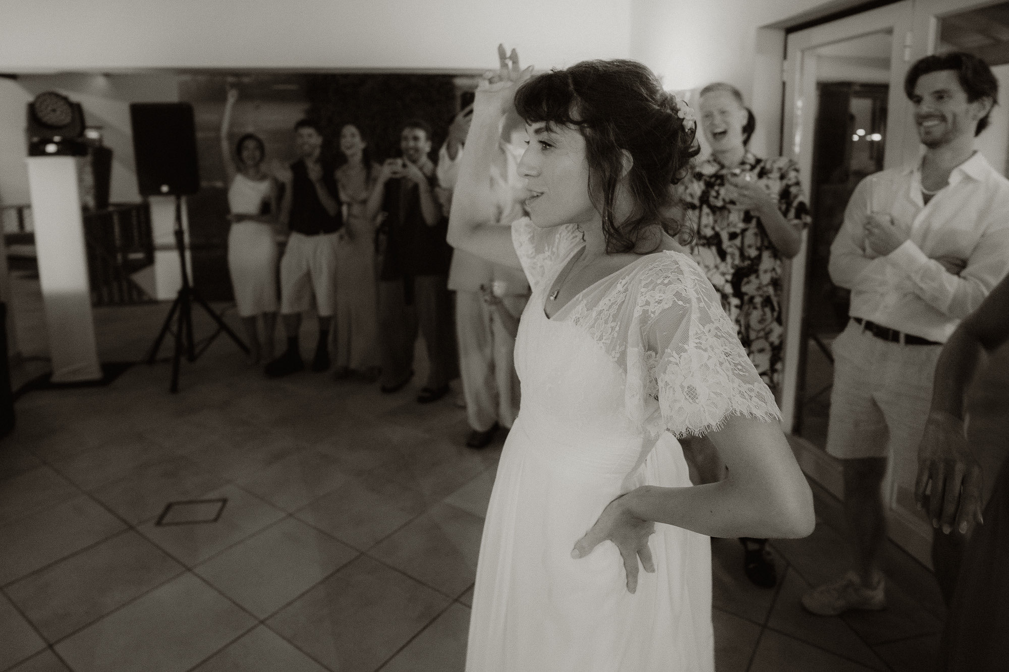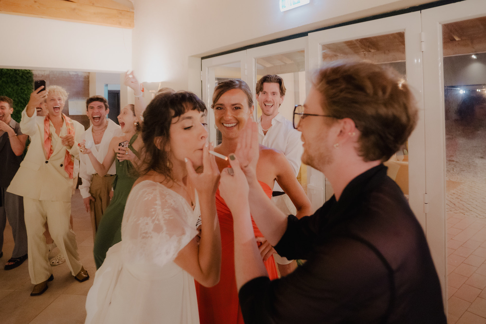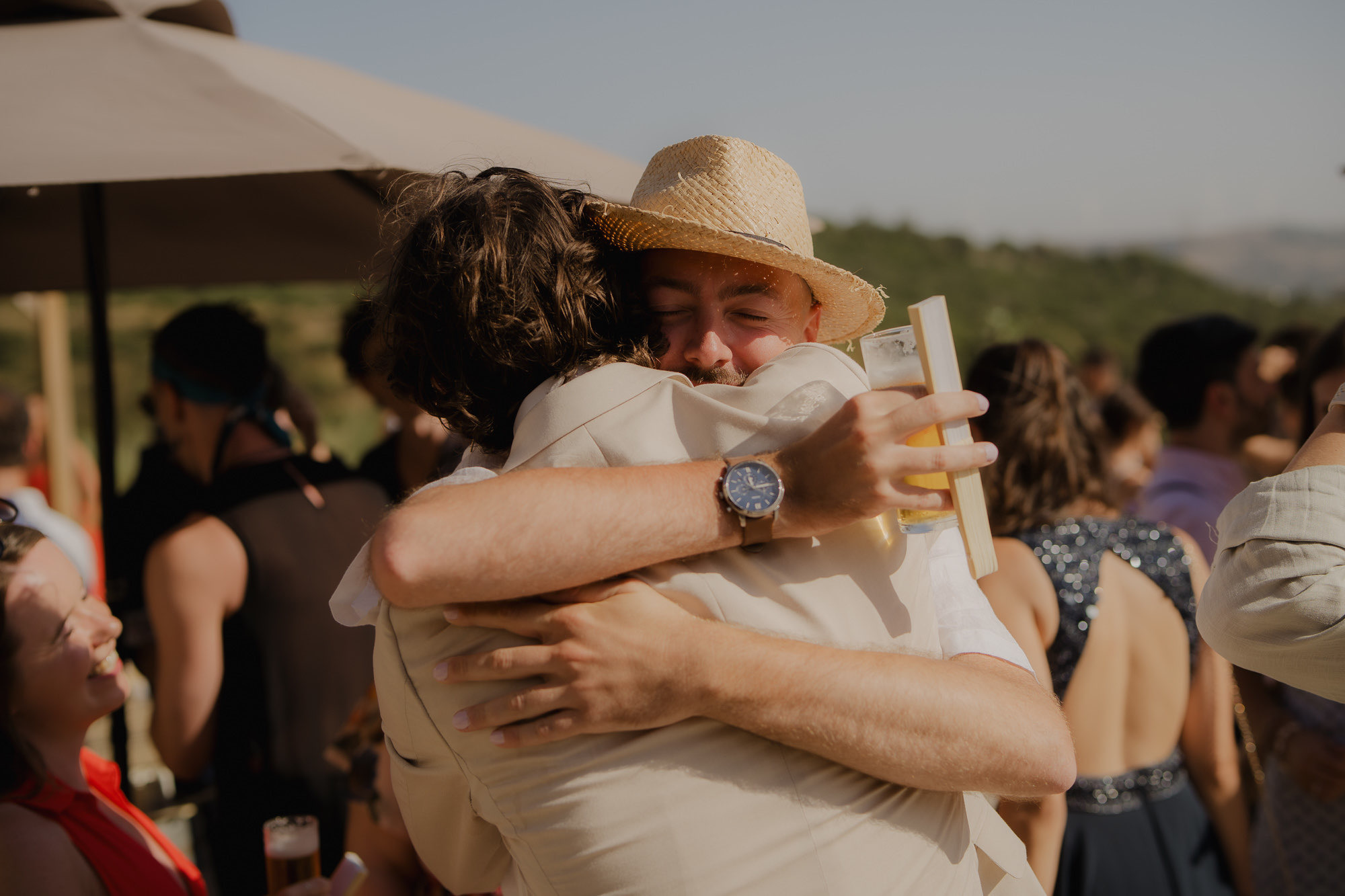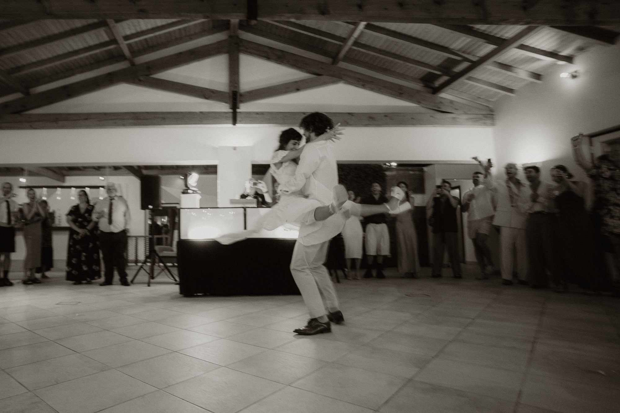 Set among rolling vineyards in Bucelas, this wedding at Quinta da Murta was defined by connection, movement, and trust. Lívia and Joshua — both classical dancers — brought an intuitive sense of rhythm to the day, allowing moments to breathe and emotions to surface naturally. From the first interactions with guests, the atmosphere felt open and deeply welcoming, creating space for creativity and spontaneity. The ceremony stood out for its emotional depth, followed by a couple session shaped by silhouette, form, and quiet gestures. As night arrived, the celebration shifted effortlessly into a high-energy party — dancers filling the floor, movement everywhere, and a feeling that the day never once needed to be rushed.