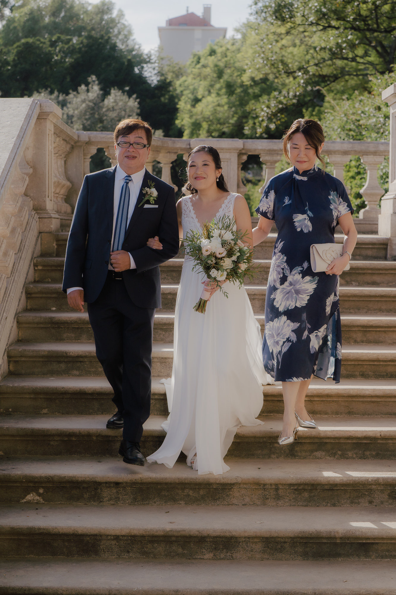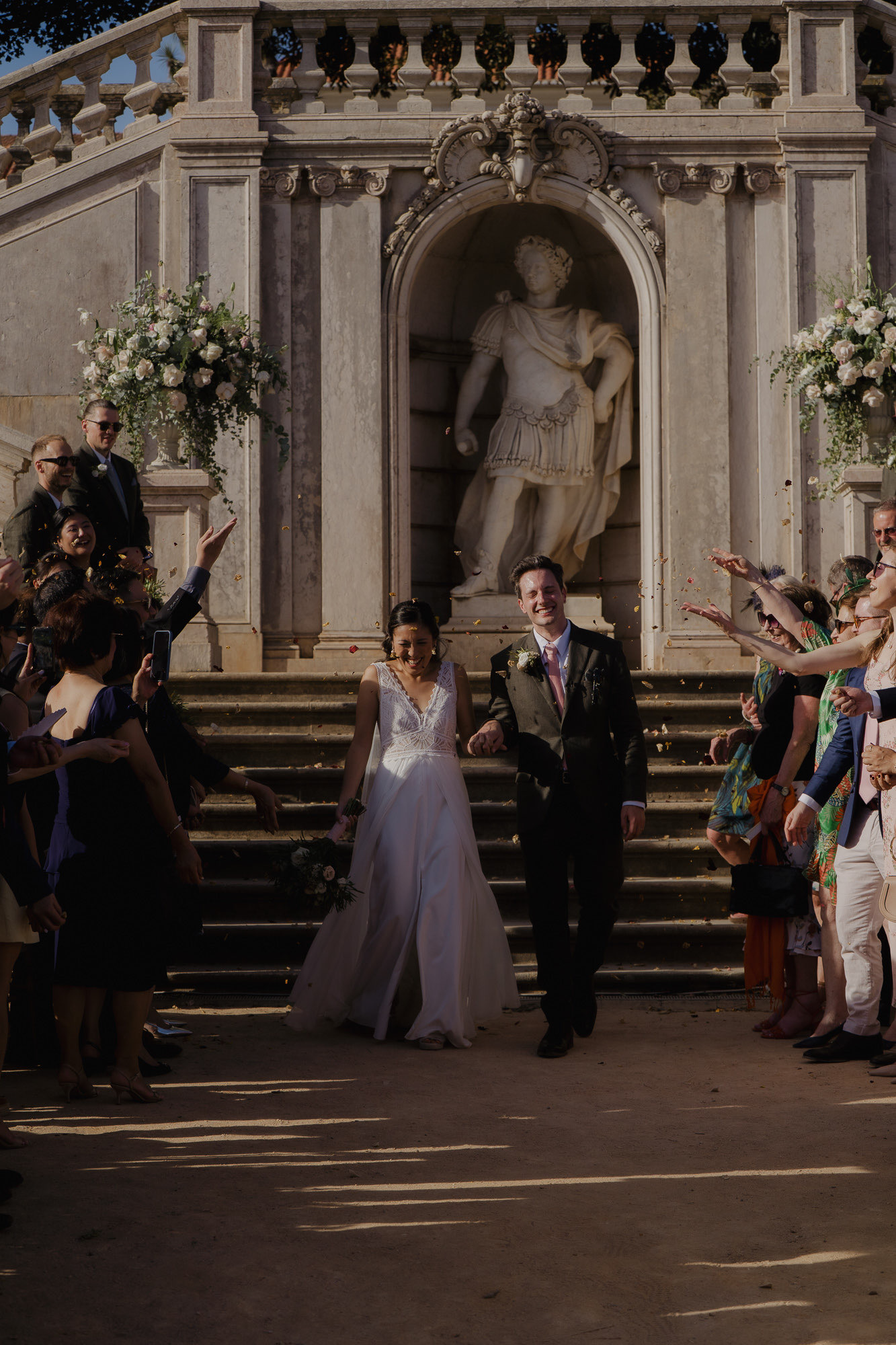 This wedding at Vandelli Gardens in Lisbon felt timeless, intimate, and deeply connected to the city itself. From quiet preparations in central Lisbon — surrounded by historic architecture and leafy courtyards — the day unfolded naturally toward one of Lisbon’s most iconic garden venues. The ceremony took place on the grand staircase, a setting that feels cinematic without losing intimacy, followed by a relaxed cocktail hour and a dinner filled with humour and heartfelt speeches. As the sun faded, the celebration moved into the ancient garden terrace, where carefully placed lighting transformed the space into an electric dance floor — the kind of night that ends exactly where words stop and movement takes over.