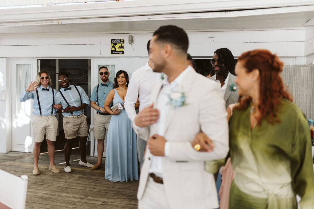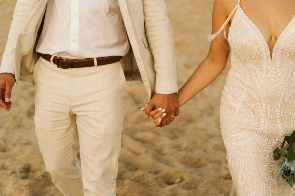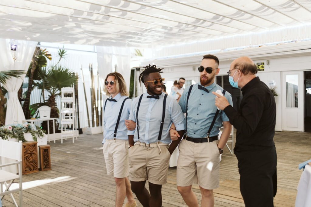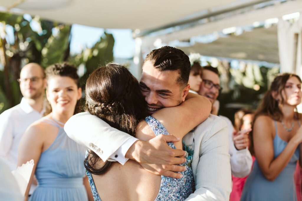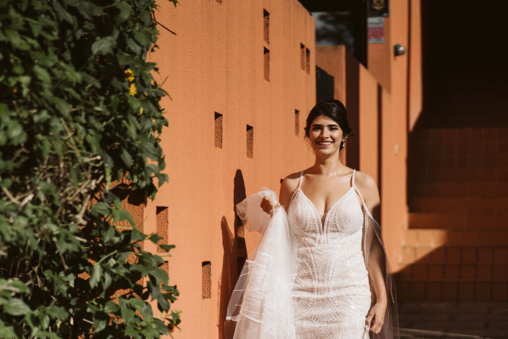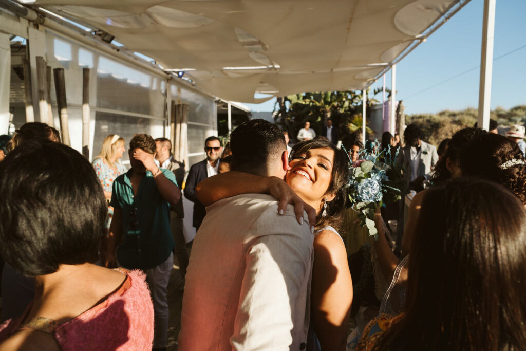 No pitoresco local à beira-mar vi acontecer este casamento no Waikiki, na Costa da Caparica. Os protagonistas desta vez foram a Bruna e Mabyo, um encantador casal do Brasil, para mais um belo destination wedding. O dia começou com um toque único: um primeiro toque em que optaram por não se verem de imediato. Em vez disso, escolheram partilhar um momento de conexão, conversando e tocando as mãos, ficando assim criado o tom emocional para o dia.